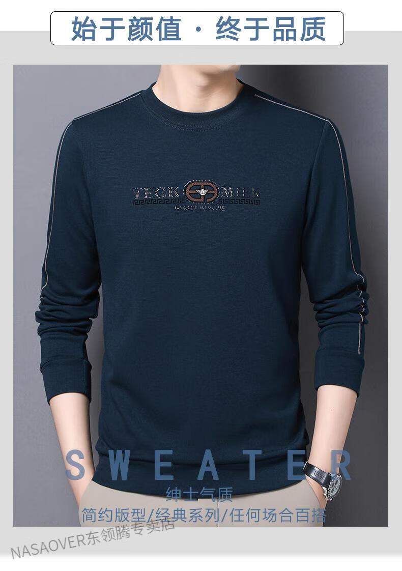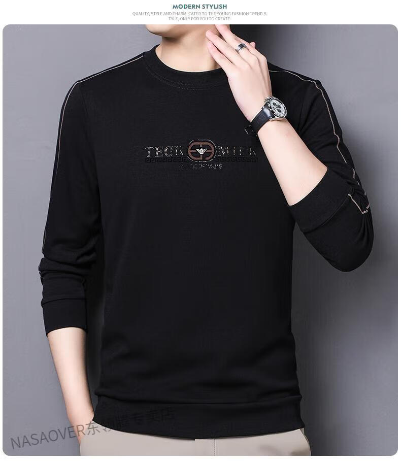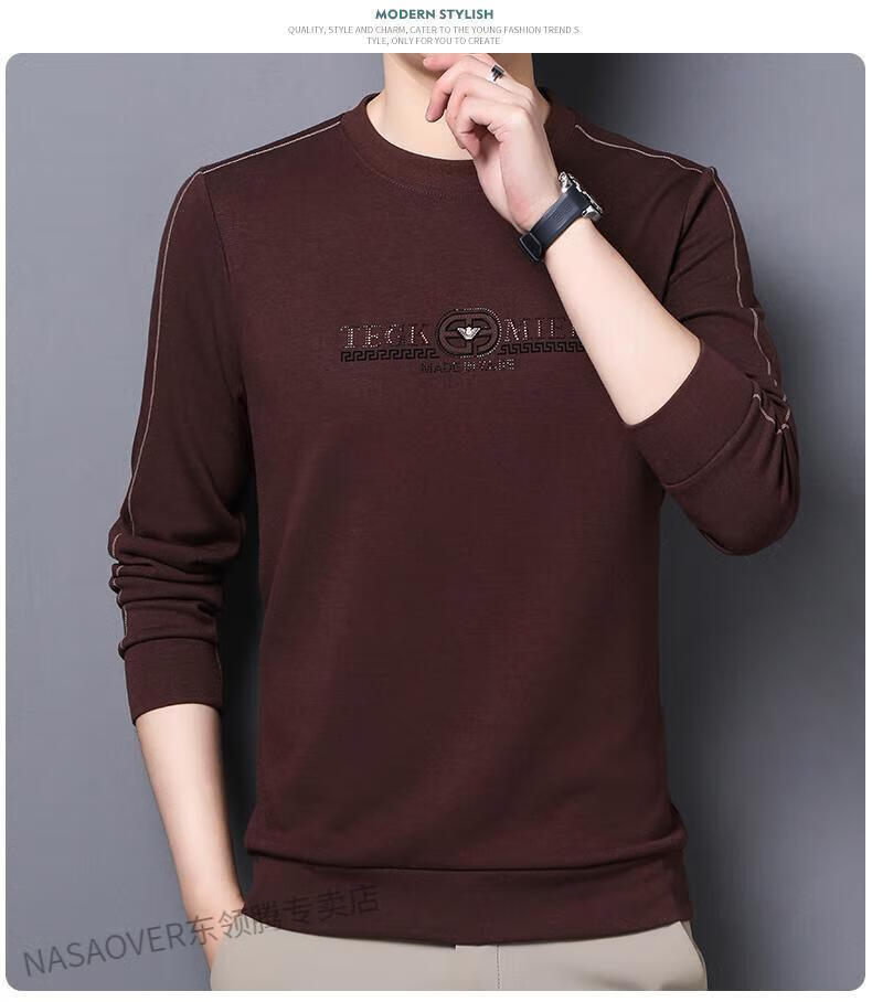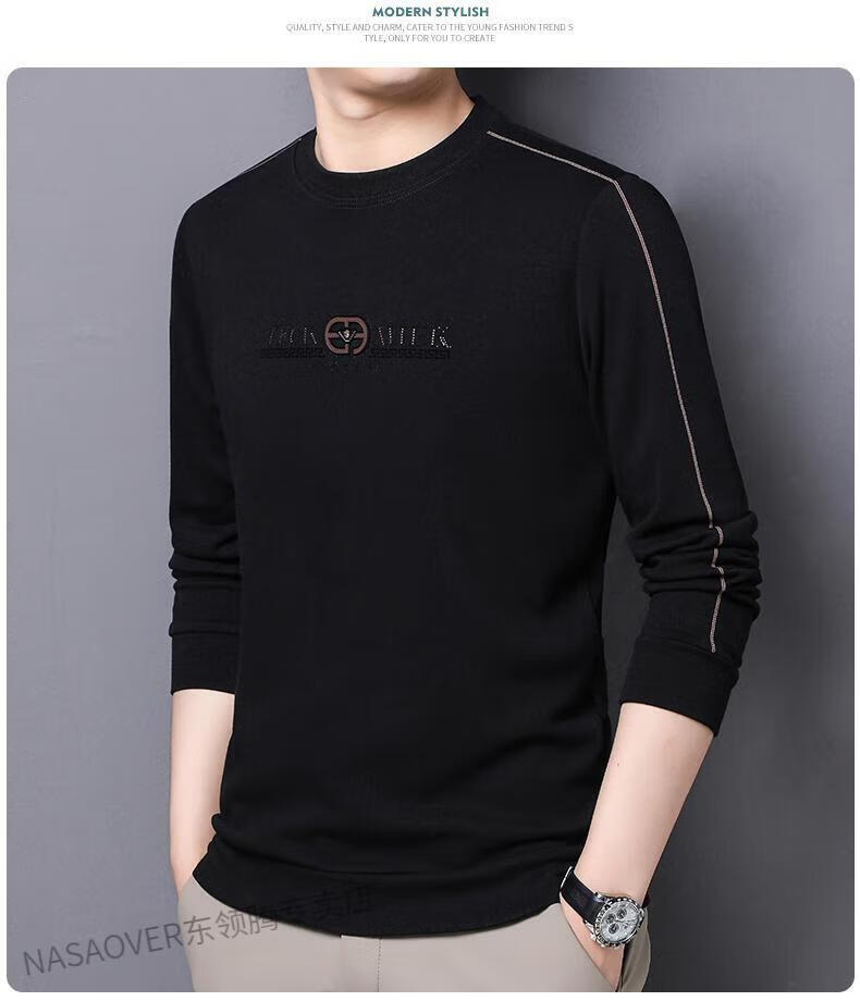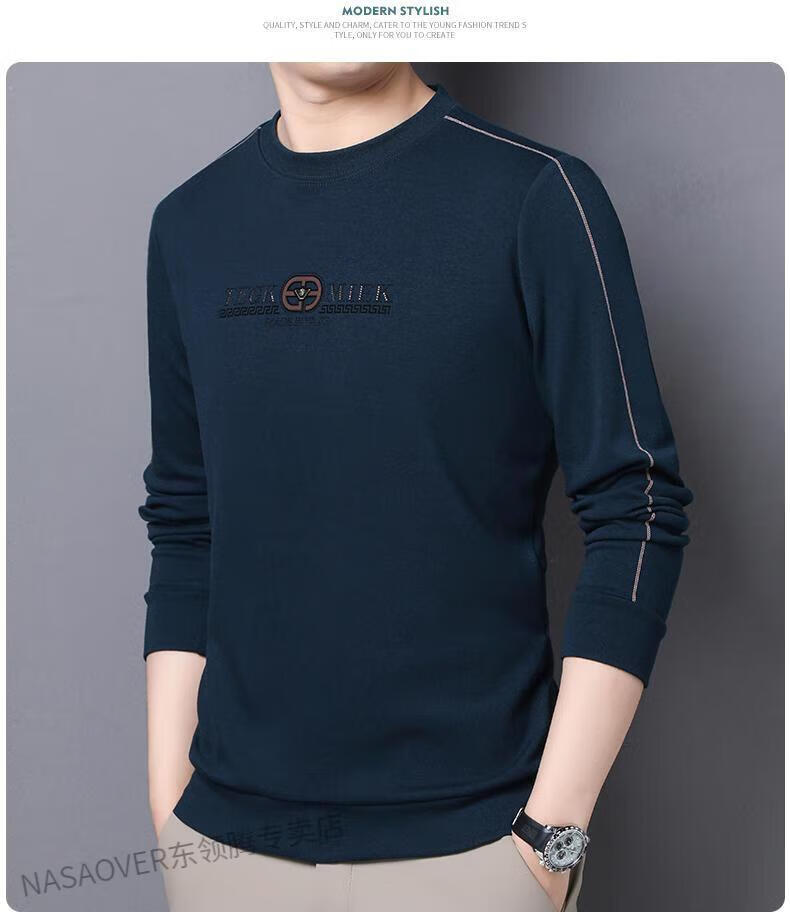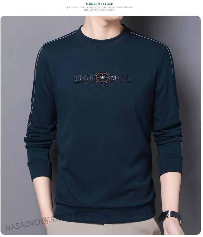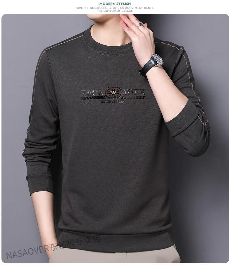 NASAOVER light luxury round neck sweatshirt long-sleeved T-shirt men's spring and autumn business elastic anti-wrinkle breathable pullover top bottoming shirt green winter plus velvet (gift box) XL (recommended 135-150Jin Jin equals 0.5 kg)