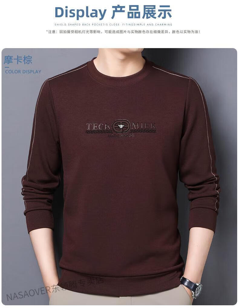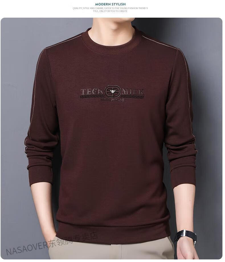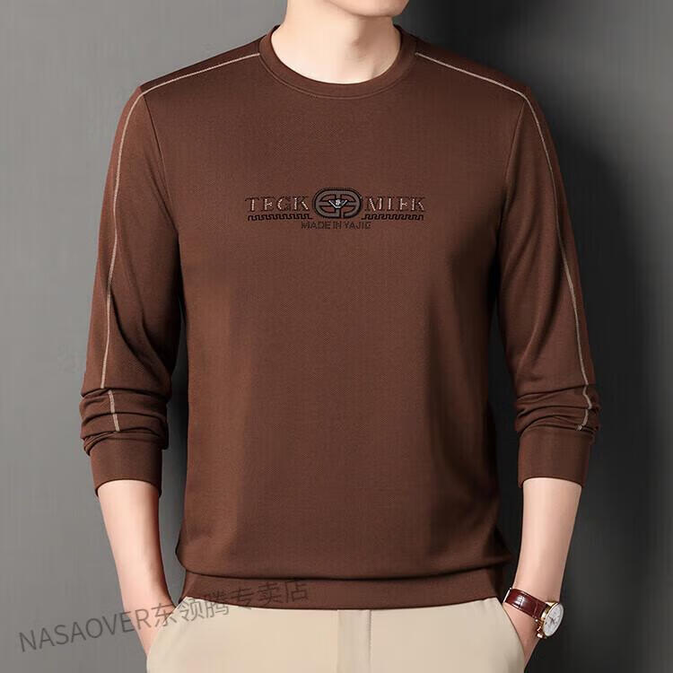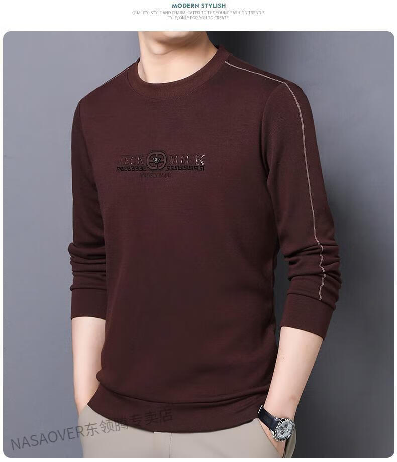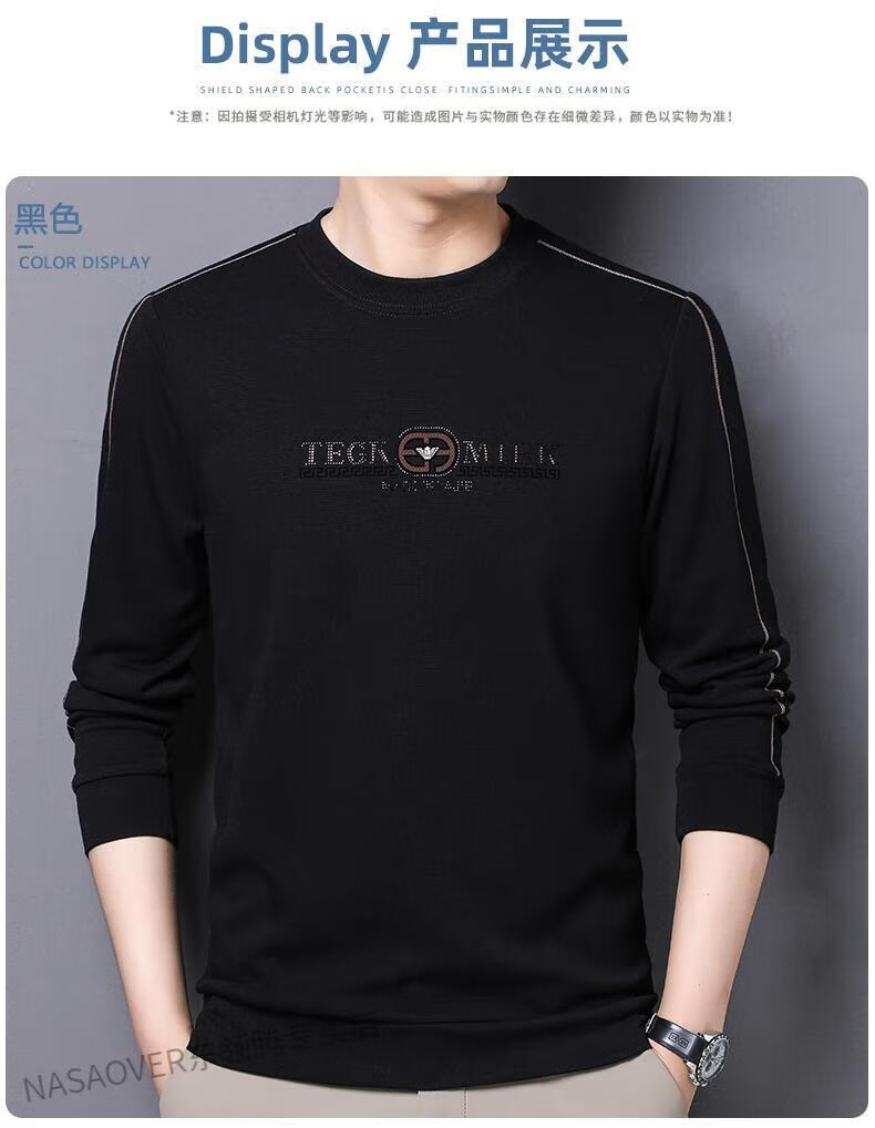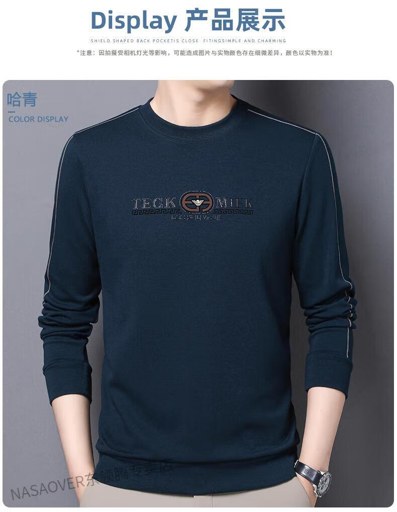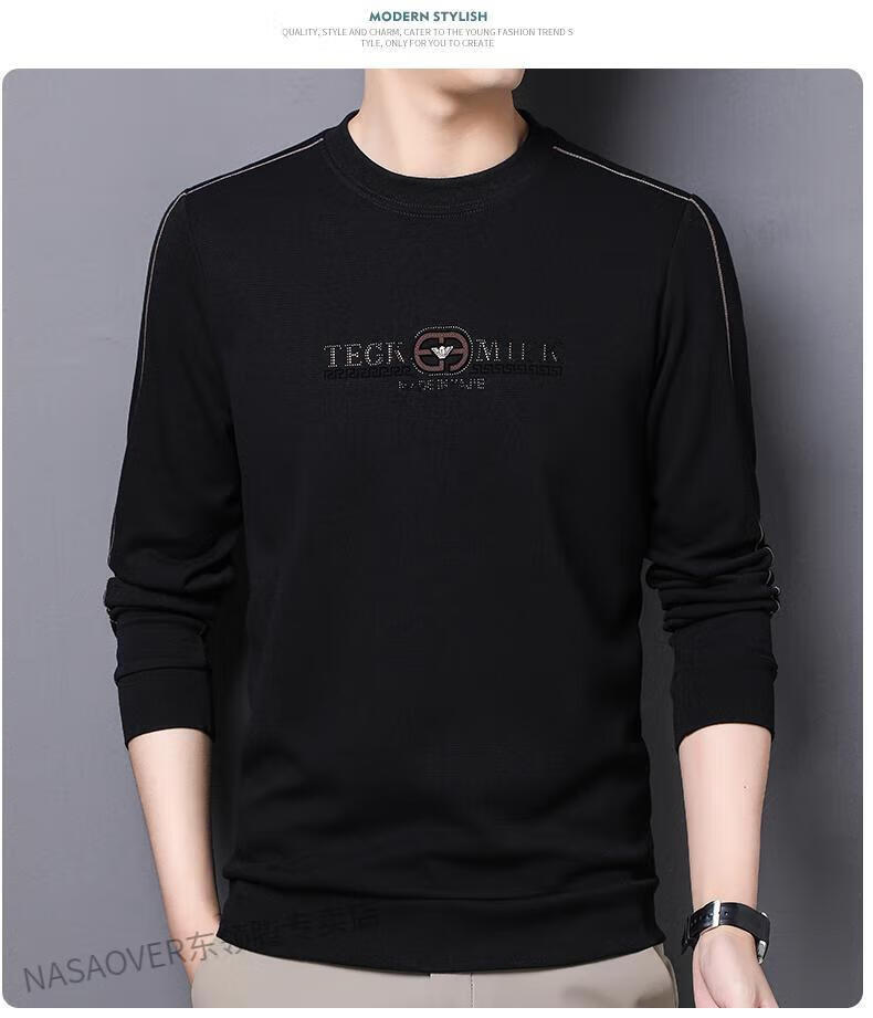 NASAOVER light luxury round neck sweatshirt long-sleeved T-shirt men's spring and autumn business elastic anti-wrinkle breathable pullover top bottoming shirt green winter plus velvet (gift box) XL (recommended 135-150Jin Jin equals 0.5 kg)