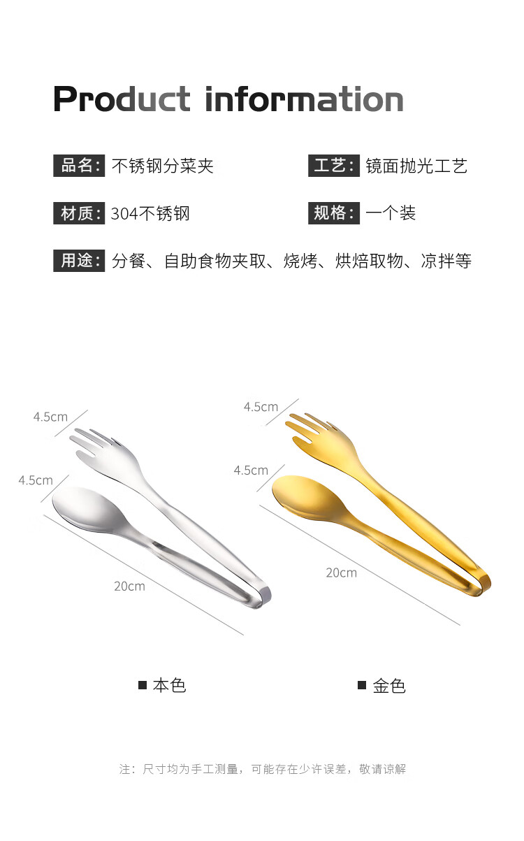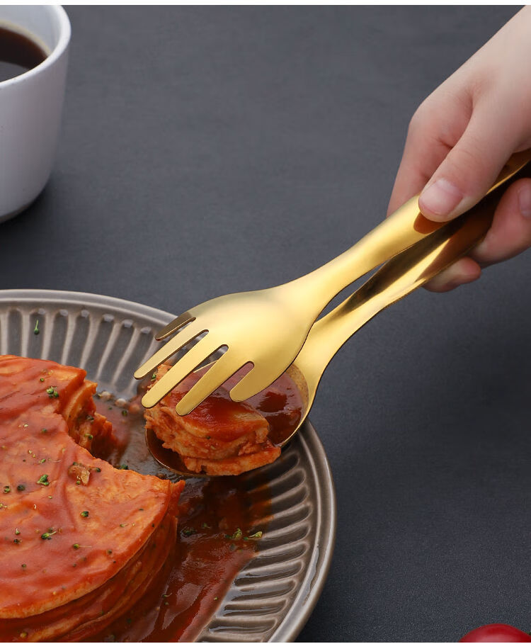 Piaoao stainless steel food tongs, bread tongs, thickened buffet public tongs, barbecue steak tongs, vegetable tongs, cooking tongs, 304 stainless steel serving spoons-natural color