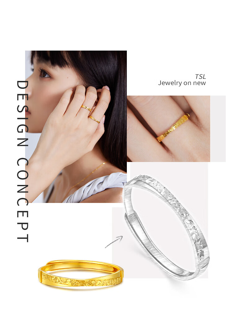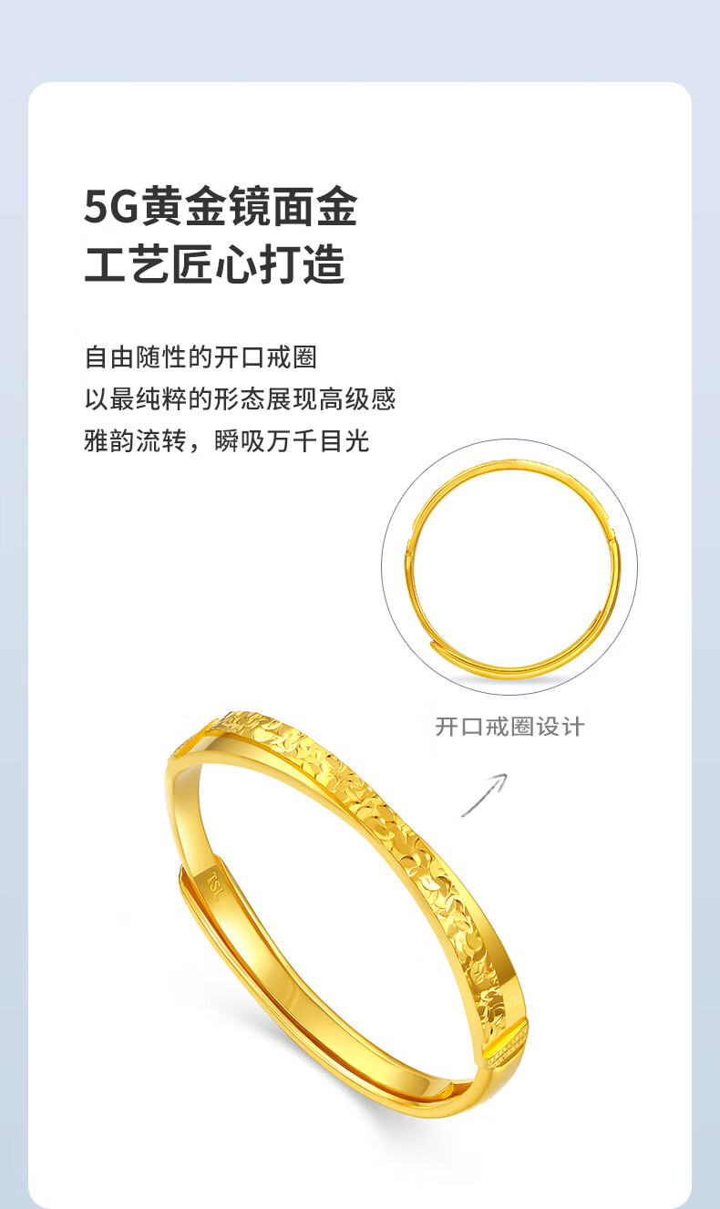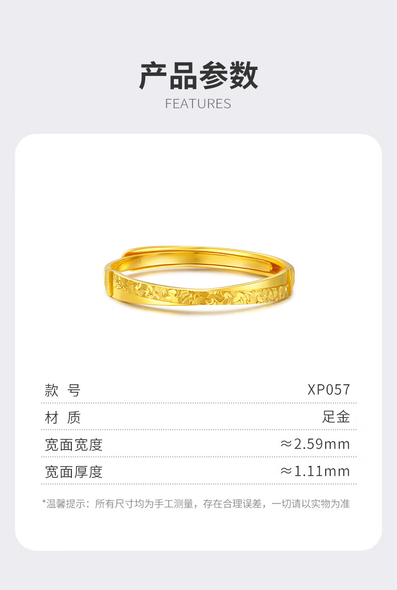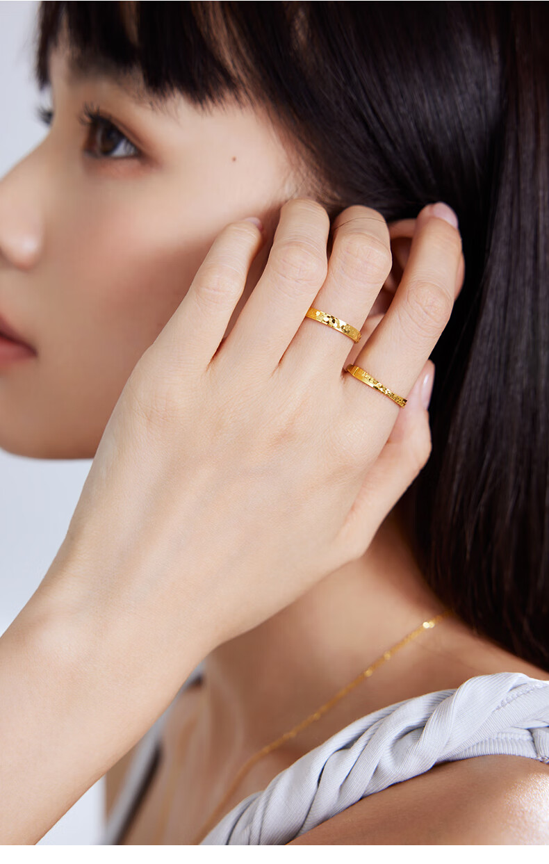 Xie Ruilin (TSL) Gold Ring Women's Crushed Ice Series 5G Pure Gold Live Ring XP057 2.30g Priced (labor cost is about 650 yuan)