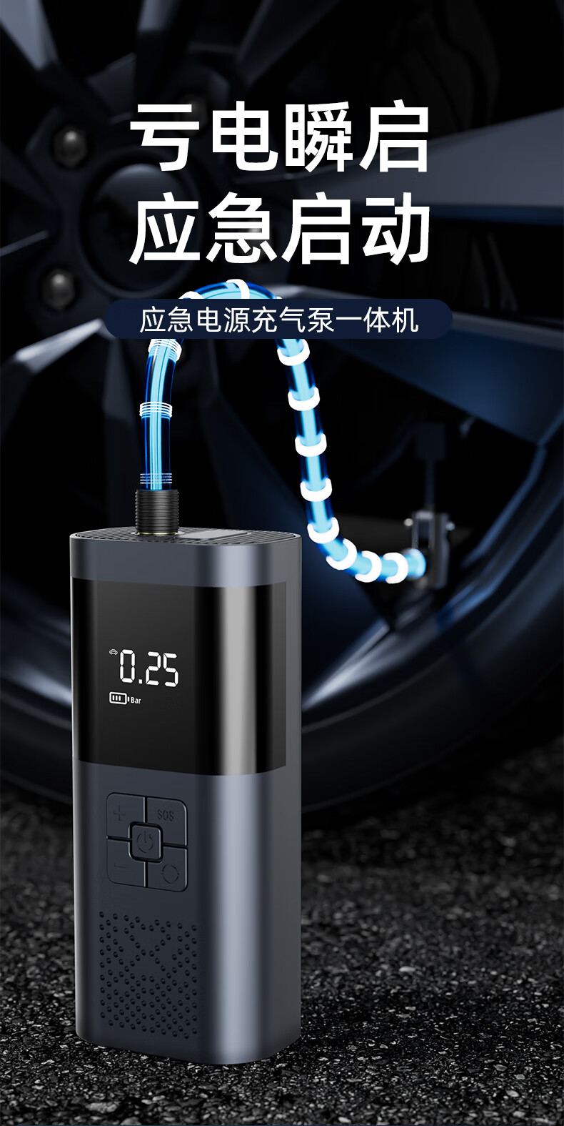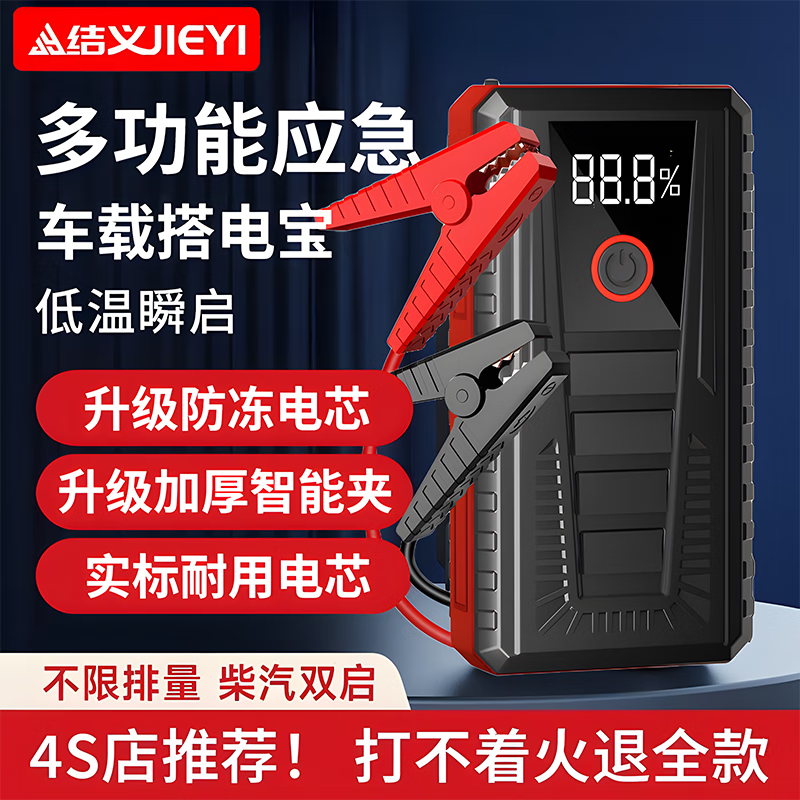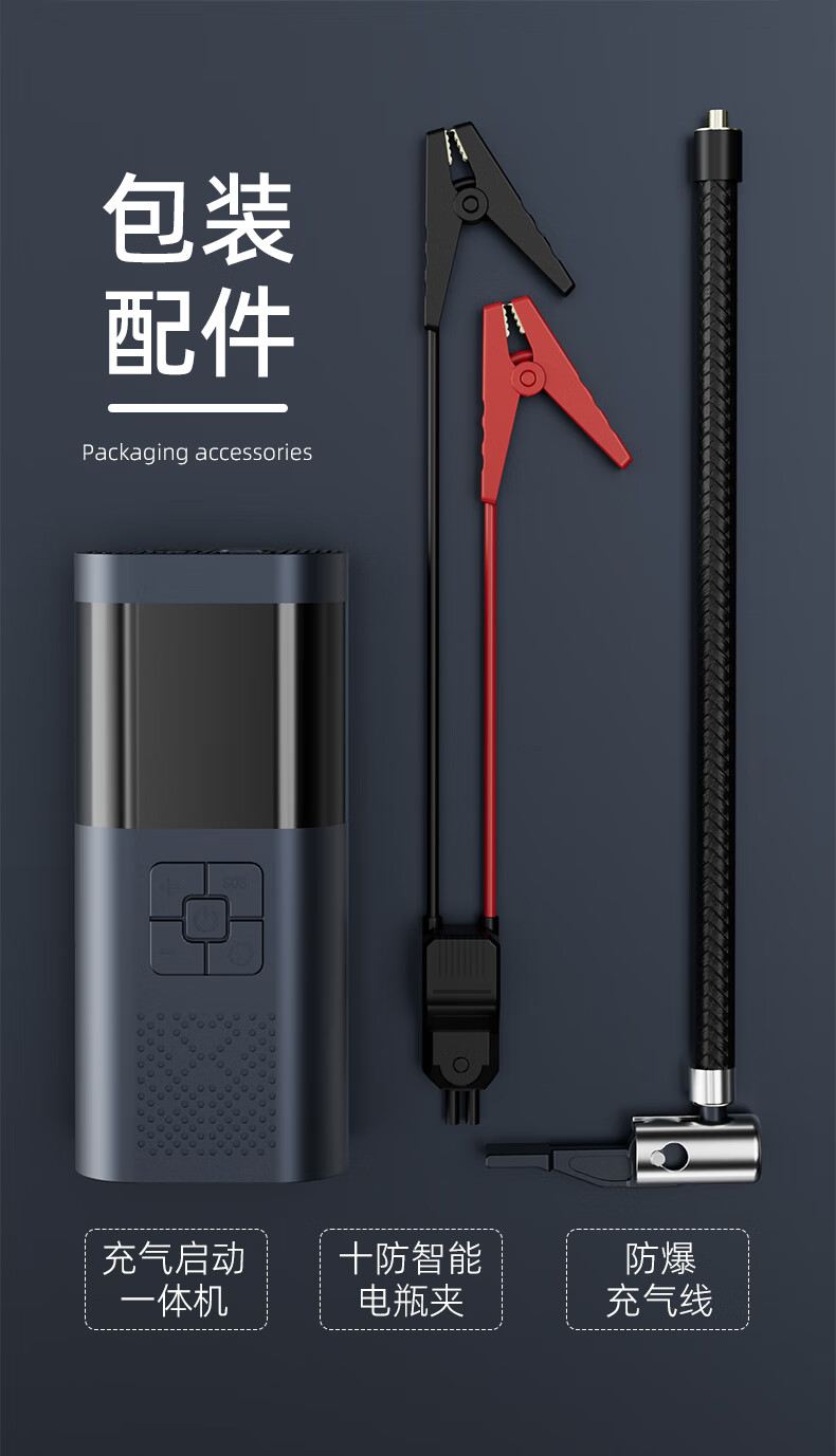 Jieyi car emergency starting power supply, multi-functional vehicle-mounted portable motorcycle power bank, emergency power supply + air pump, zero-power instant start + bold battery clip