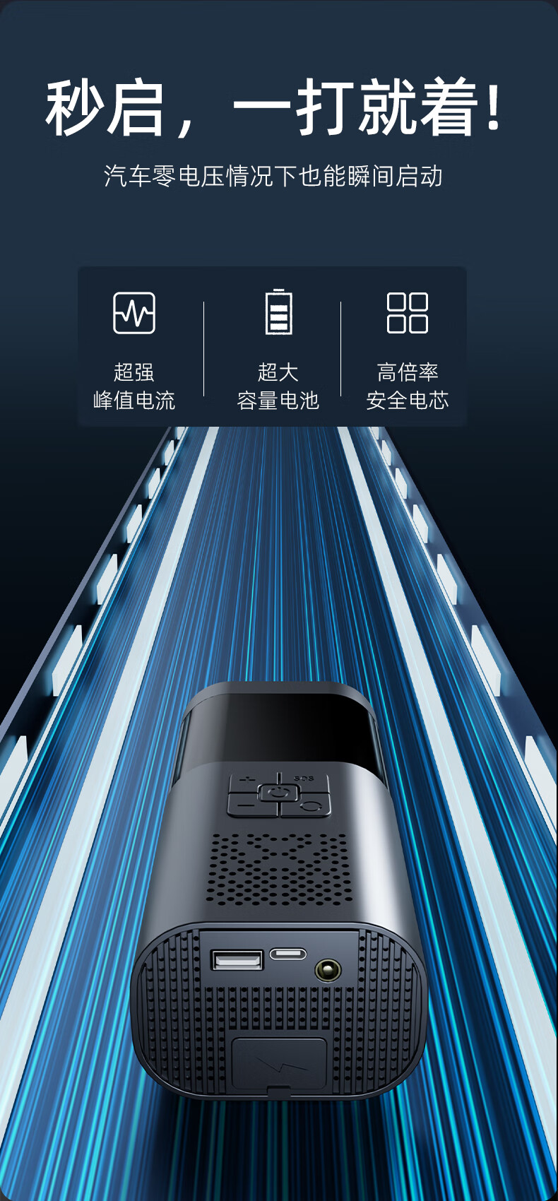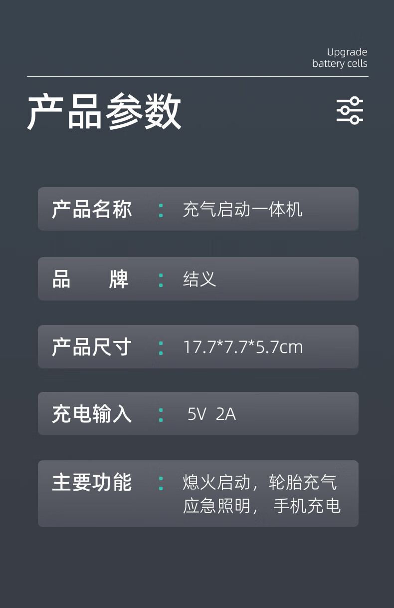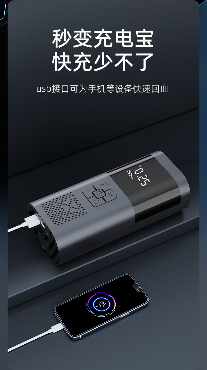 Jieyi car emergency starting power supply, multi-functional vehicle-mounted portable motorcycle power bank, emergency power supply + air pump, zero-power instant start + bold battery clip