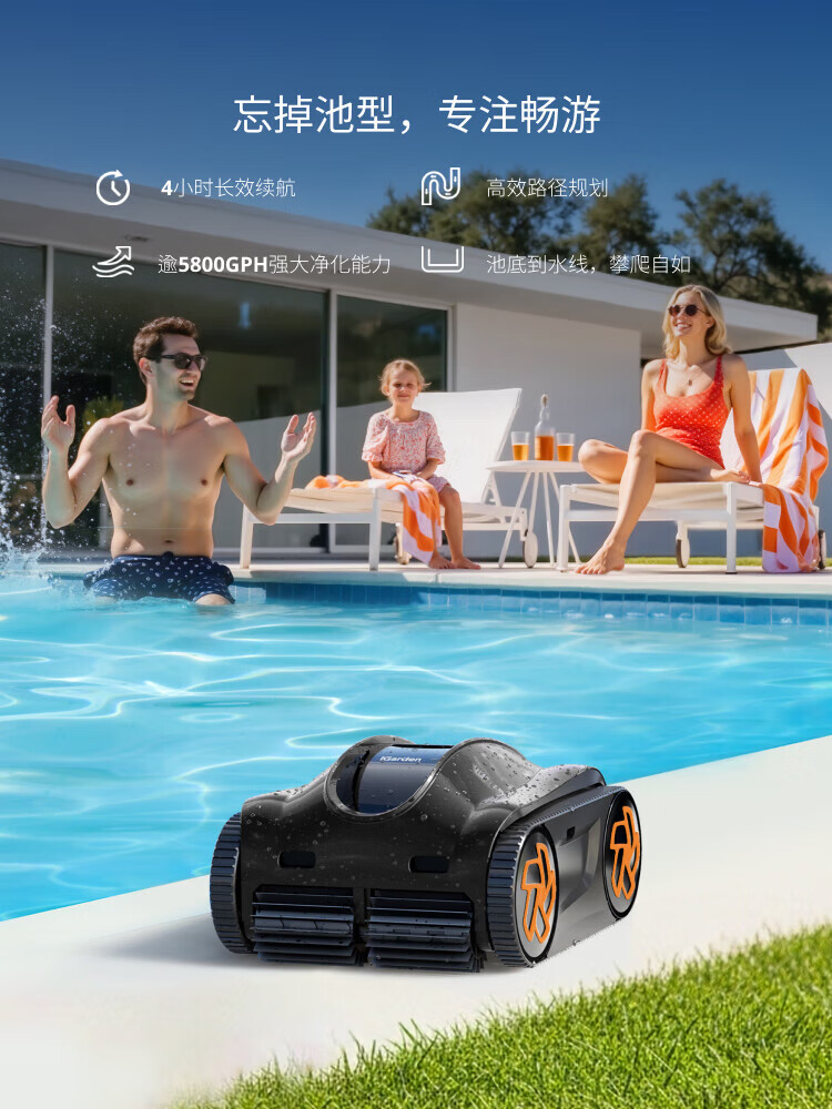 INVERX swimming pool sewage suction machine fully automatic cleaning robot wireless filtration equipment pool suction sewage vacuum turtle K40 (4 hours)
