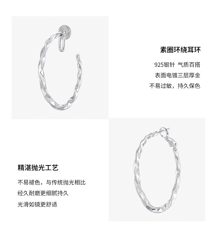 Lnieer Xu Wo Dazzling Zhao Lusi Xu Yan's same style plain hoop earrings for women without pierced ear clips high-end earrings earrings earrings plain hoop earrings 925 silver needle