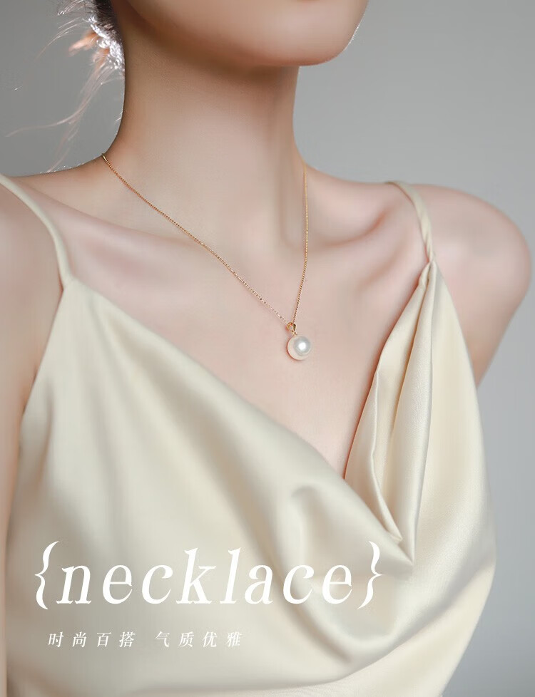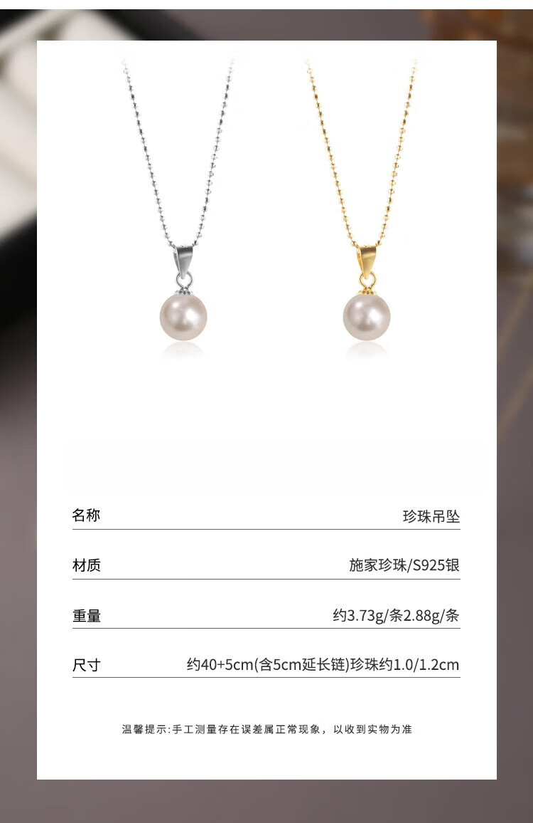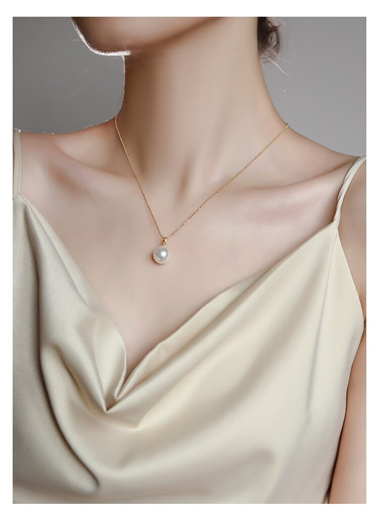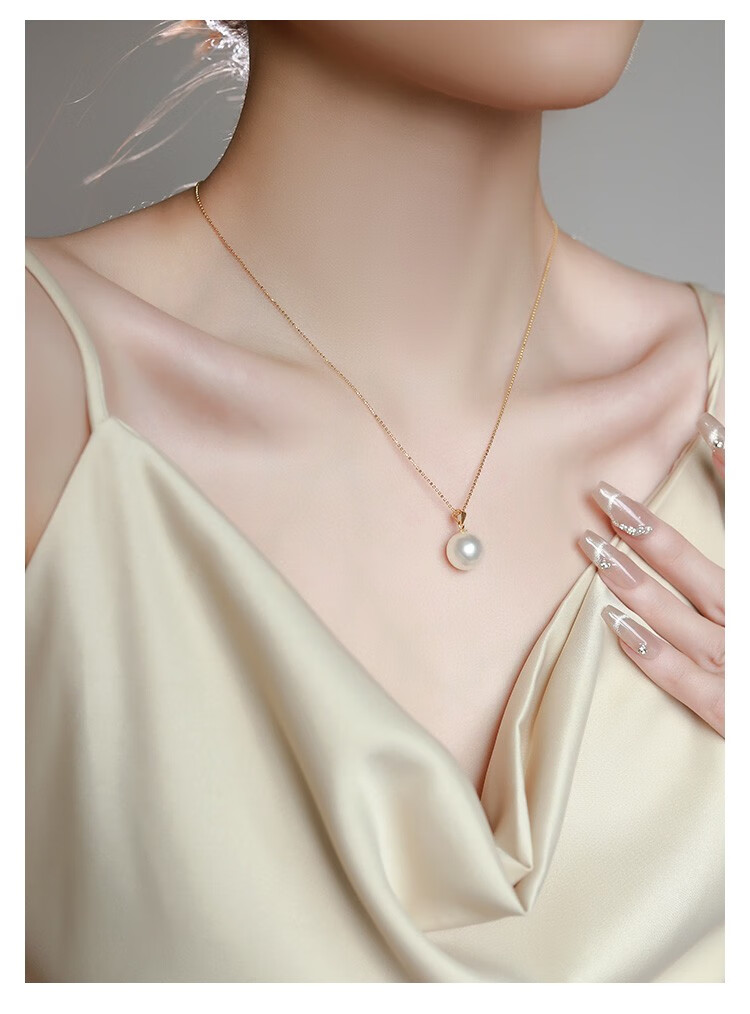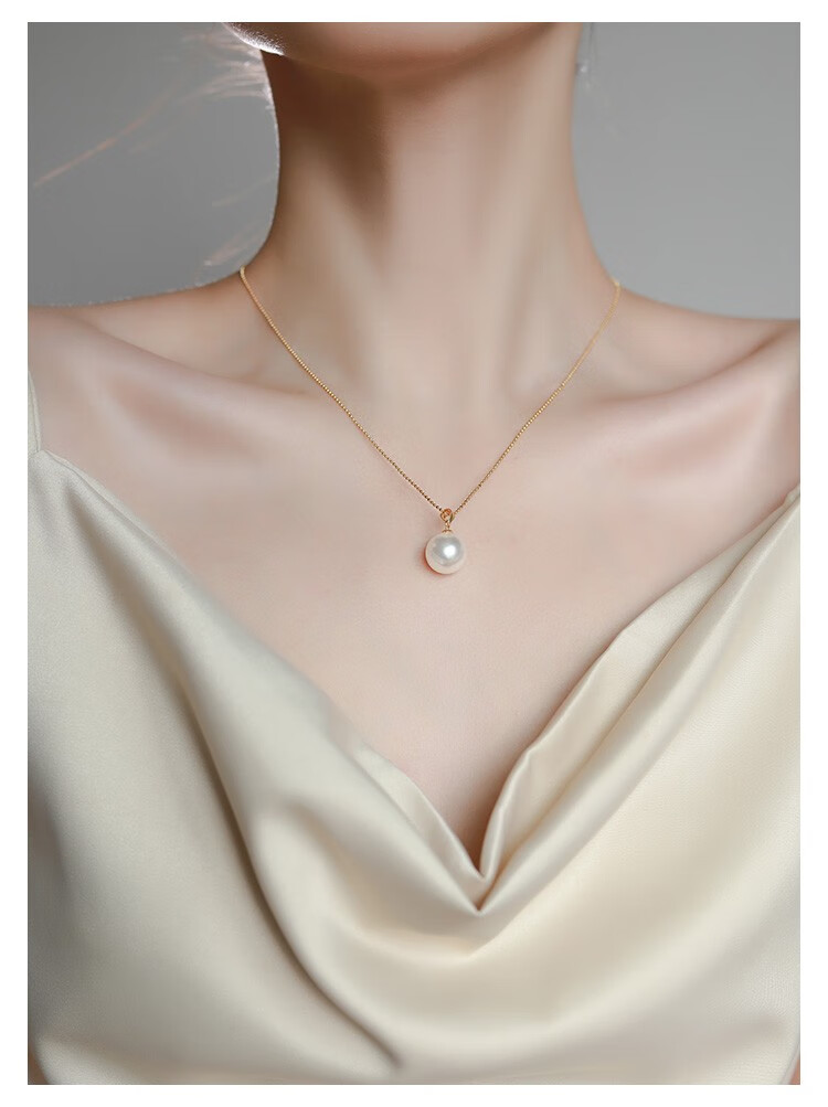 Century-old Feixiang Pearl Necklace Women's 2025 New Single Necklace Pendant Light Luxury Niche Clavicle Chain S925 10mm Single Pearl Pendant--Golden Chain