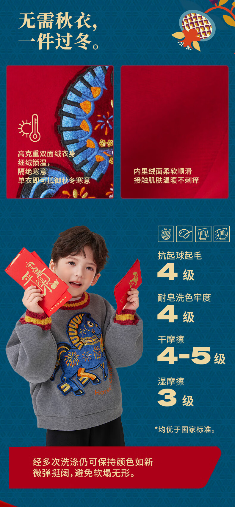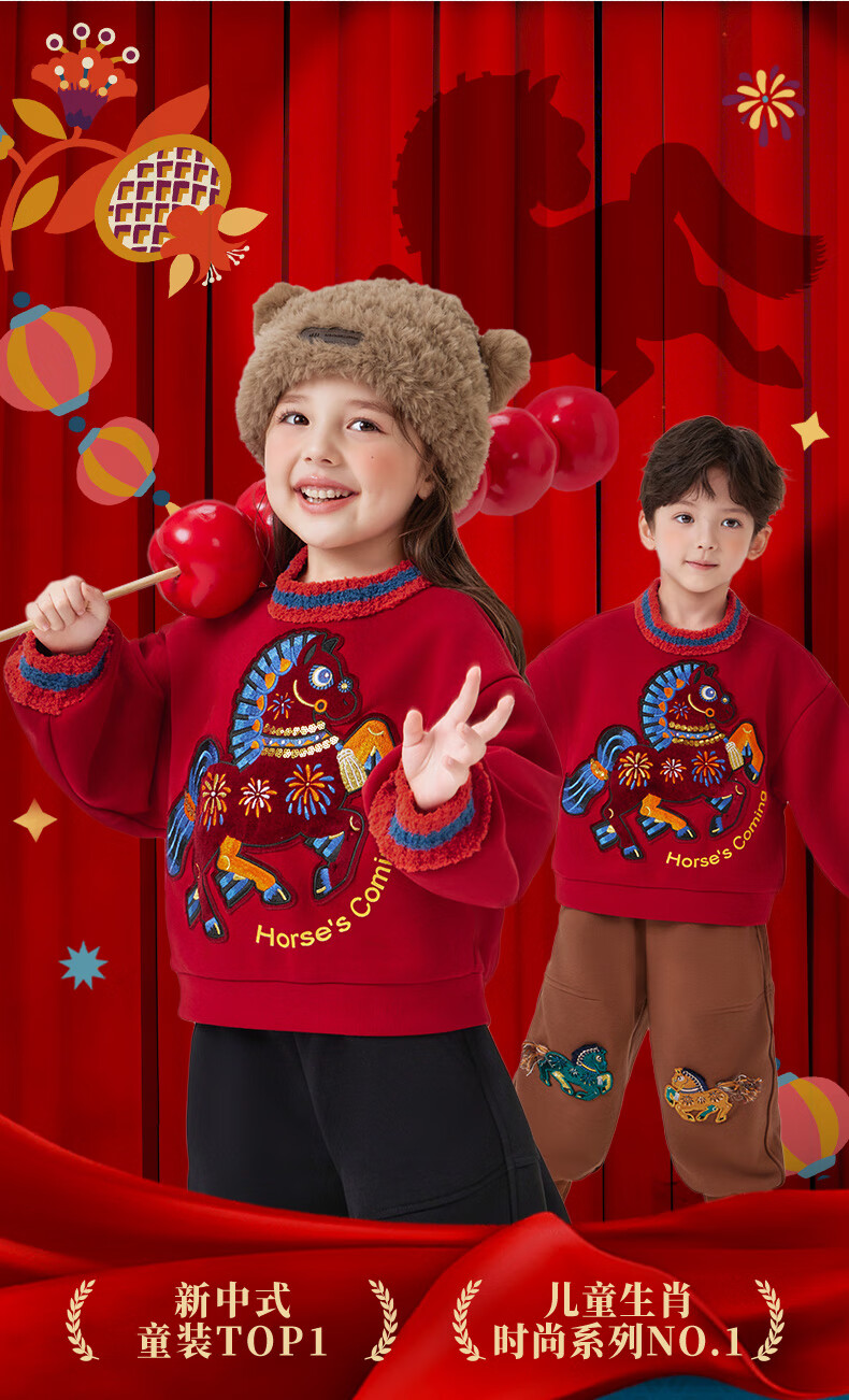 New Year's clothing Dong Xuan's same style joint children's sweatshirt for boys and girls autumn and winter new children's long-sleeved Chinese New Year's clothing New Year's clothing red-velvet version 160 (S) adult style 150-160cm, 90-120Jin Jin equals 0.5 kg