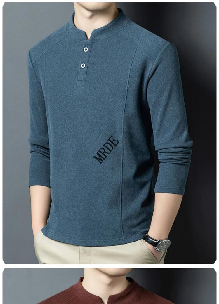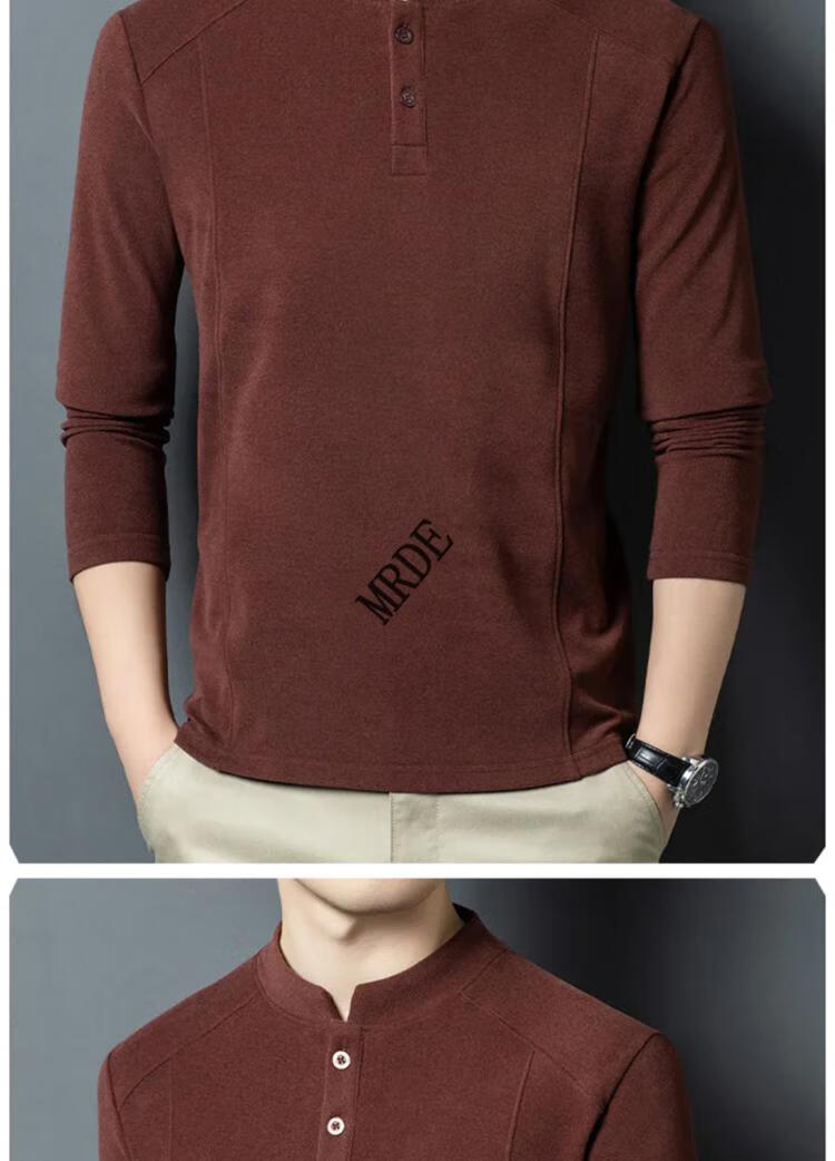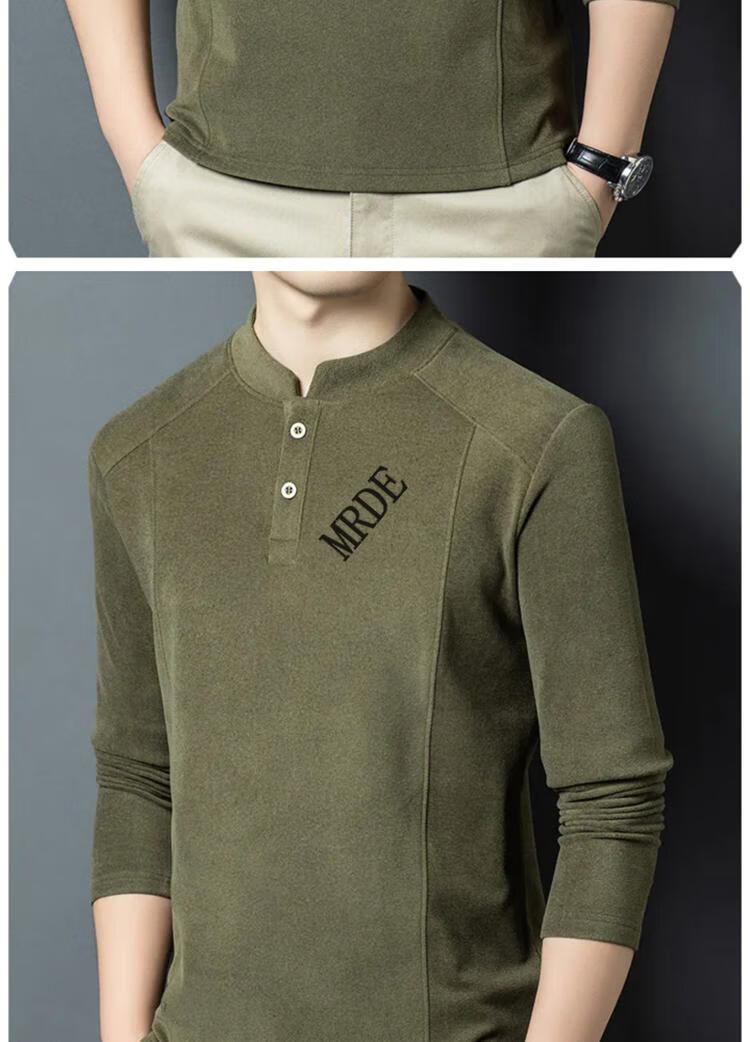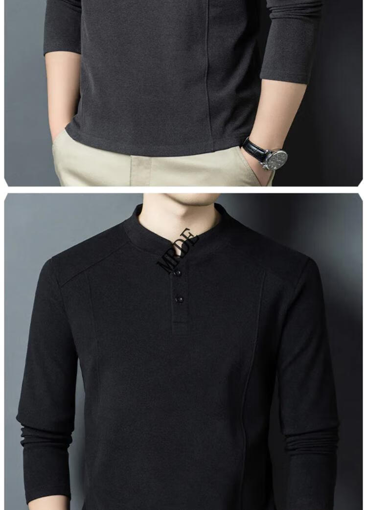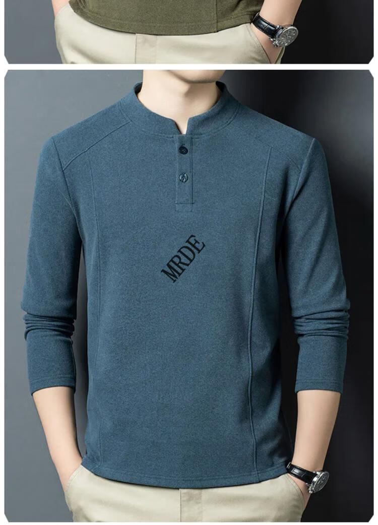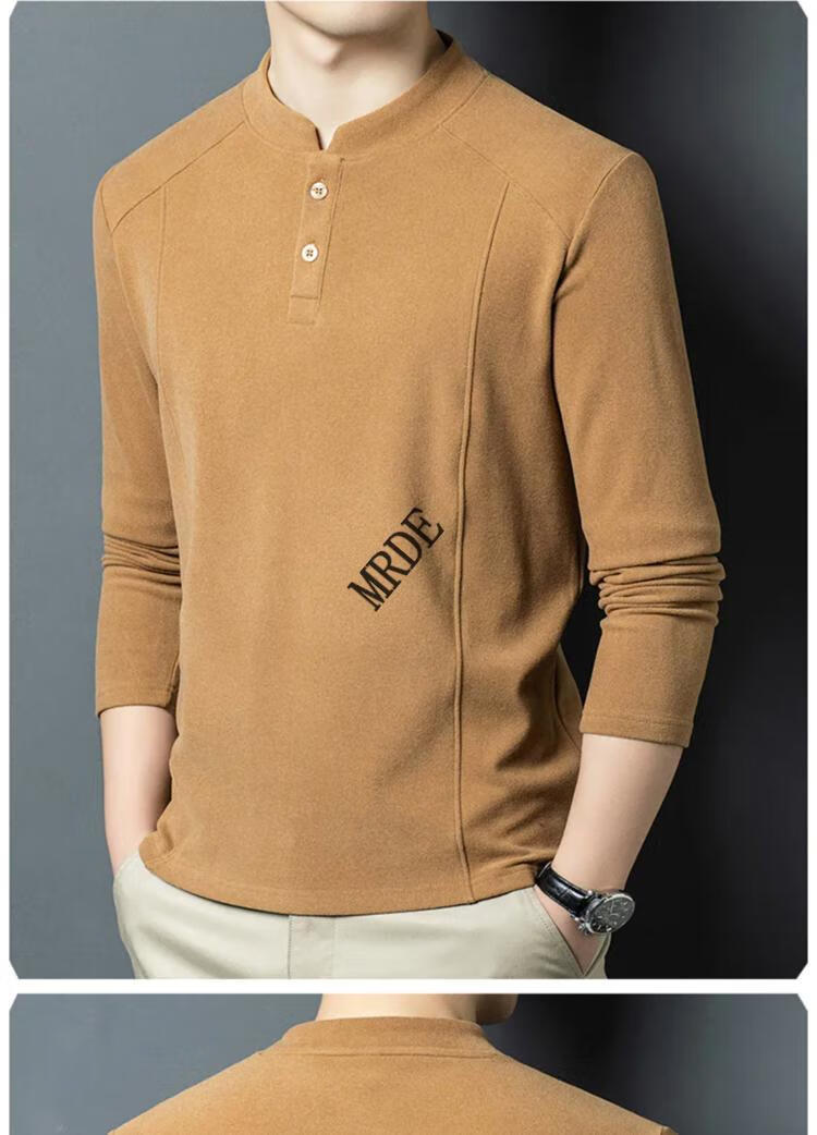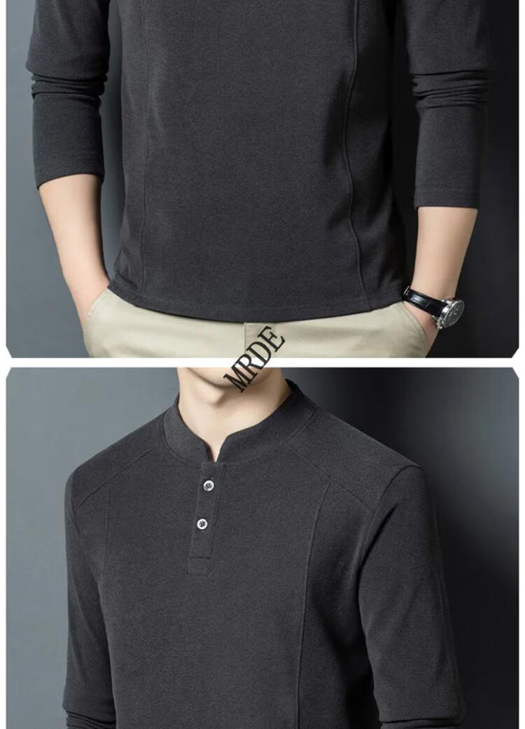 MR.DE Xialuo light luxury brand men's clothing 2025 autumn and winter double-sided German velvet bottoming shirt men's Henry collar versatile long-sleeved sweatshirt gray M 165 suitable for 90-115 Jin Jin equals 0.5 kg