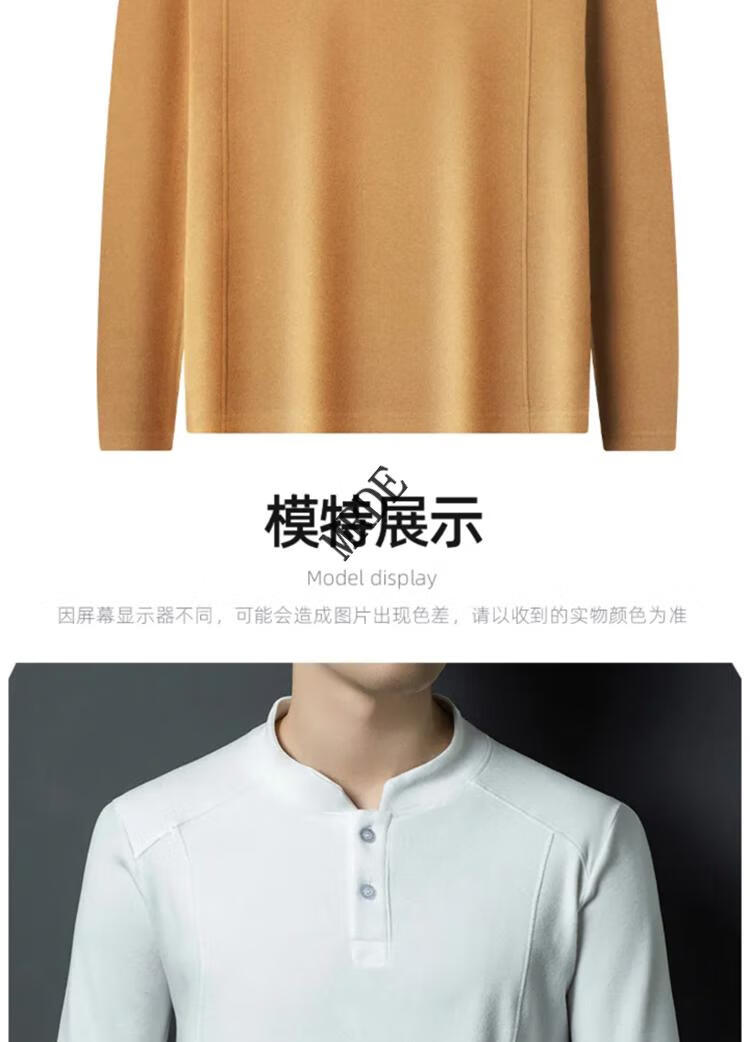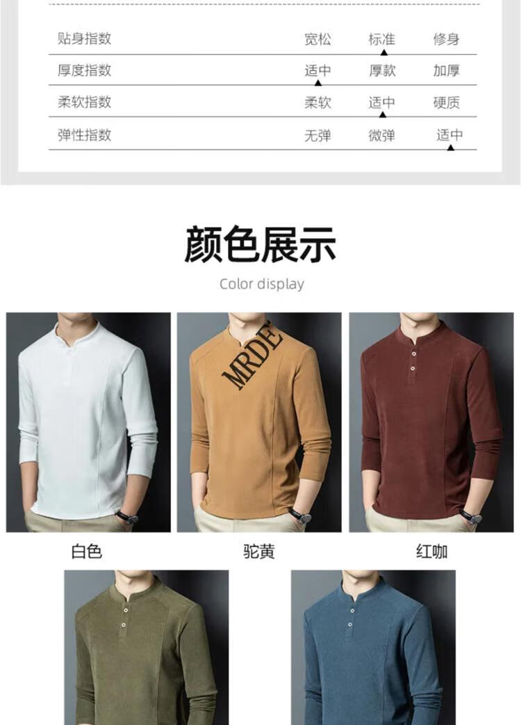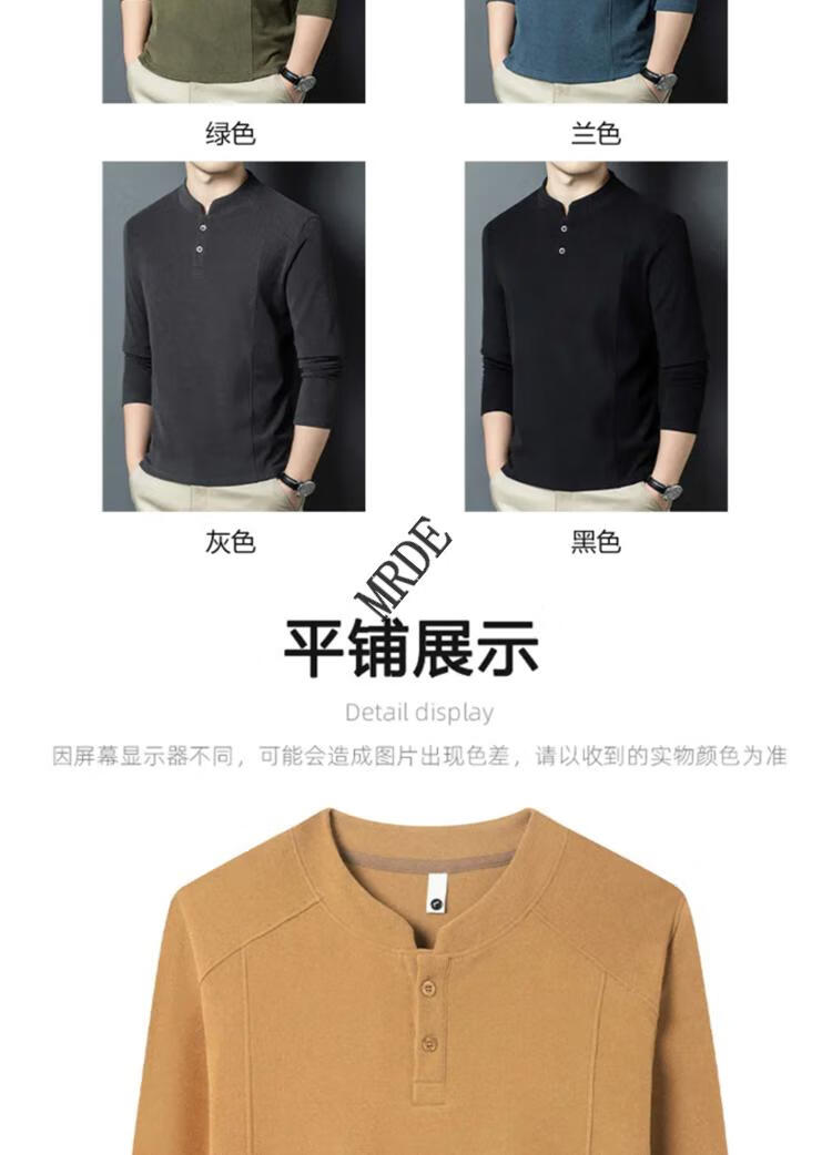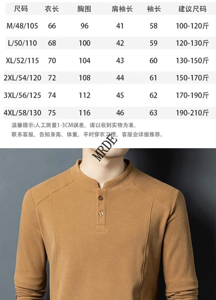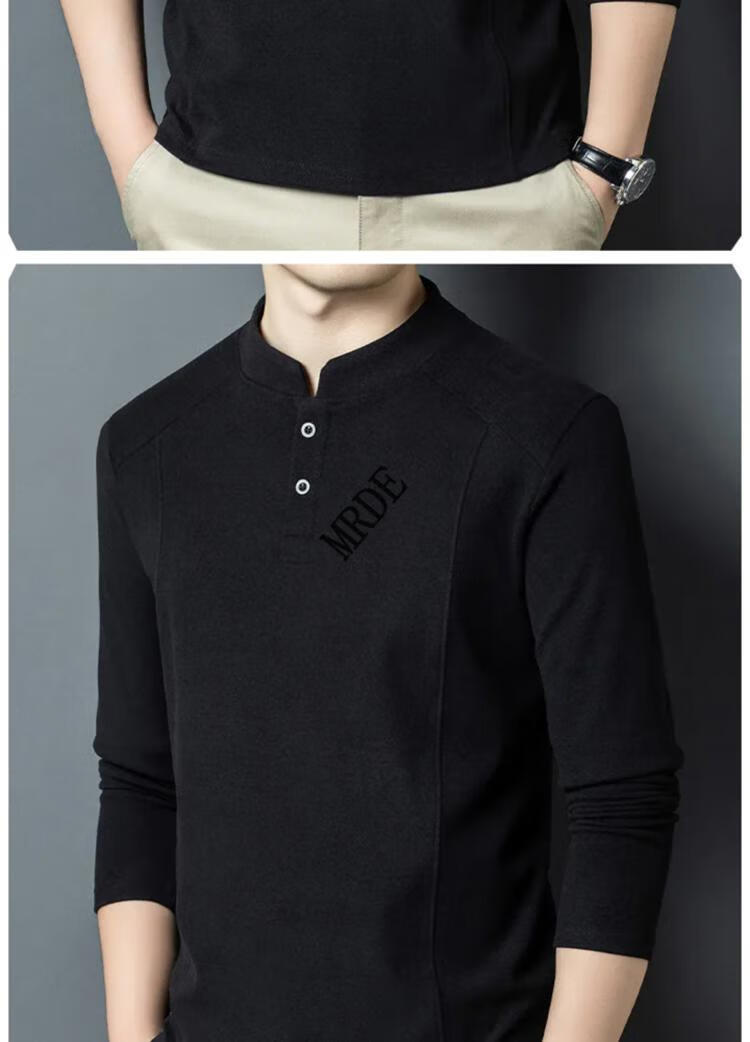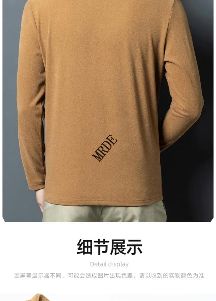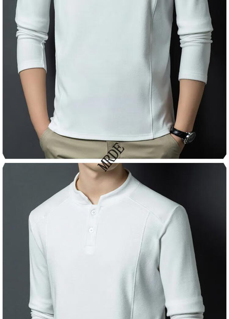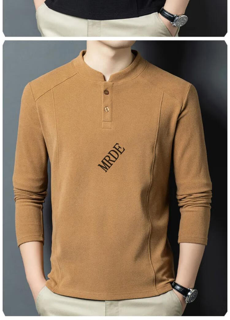 MR.DE Xialuo light luxury brand men's clothing 2025 autumn and winter double-sided German velvet bottoming shirt men's Henry collar versatile long-sleeved sweatshirt gray M 165 suitable for 90-115 Jin Jin equals 0.5 kg