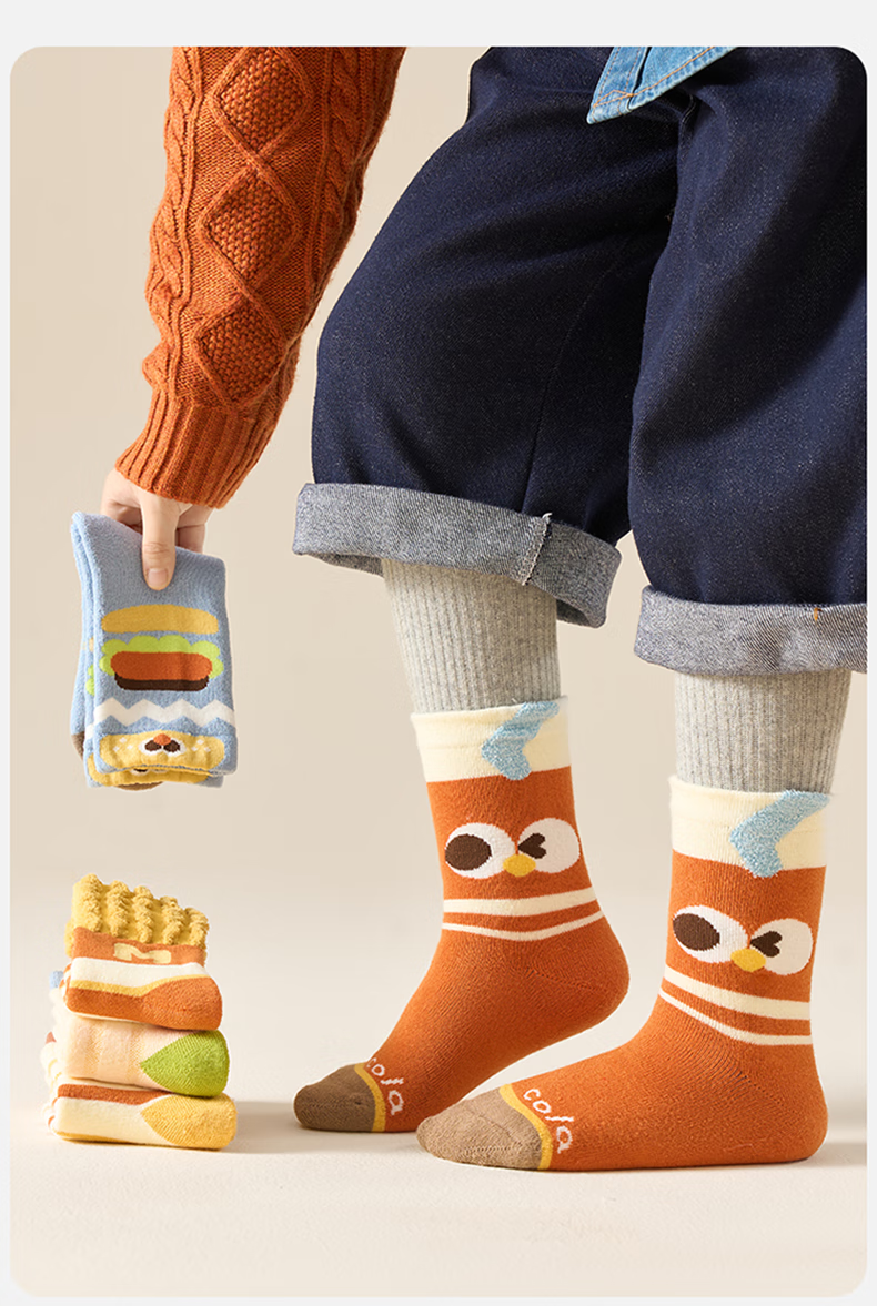 Mianqi Xiong boys' socks, winter plus velvet and thickened terry socks, autumn and winter long-staple cotton mid-calf socks, boys' warm children's socks, 5 pairs in winter, H104-5 pairs, cold-resistant, temperature-locking, wear-resistant and anti-pilling, 3-5 years old - recommended foot length 14-16CM, shoe size 20-27