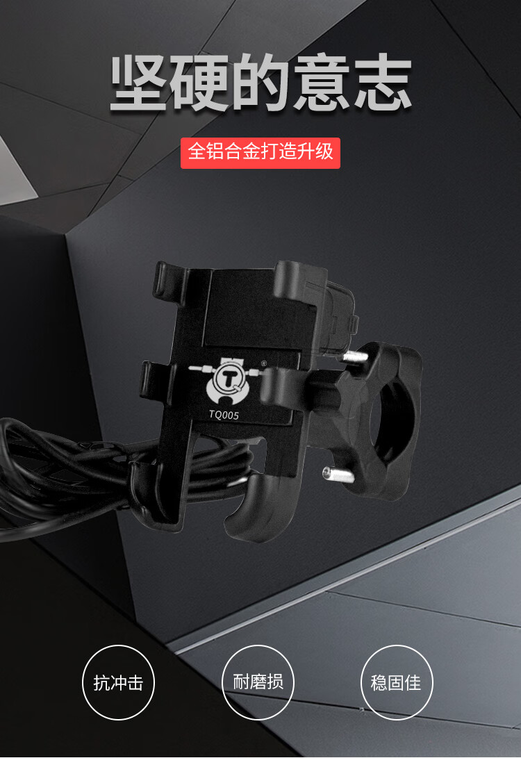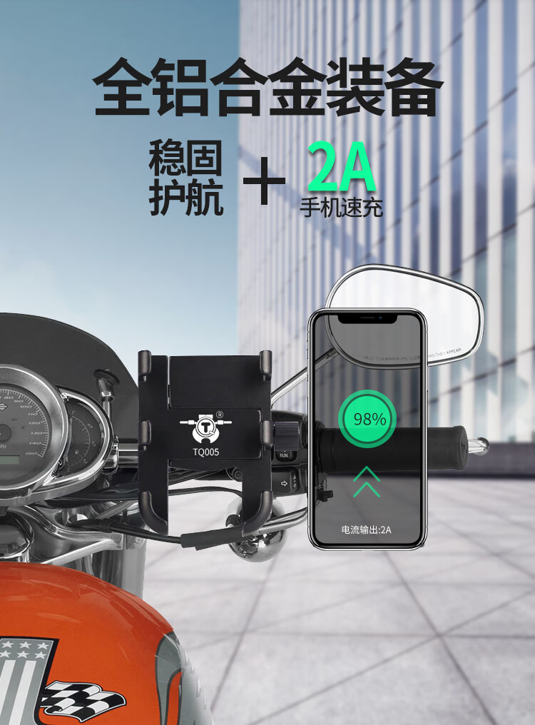 ZKHE aluminum alloy motorcycle mobile phone holder electric bicycle takeout navigation stand fixed clip riding with USB charging black lock handlebar model with charging motorcycle