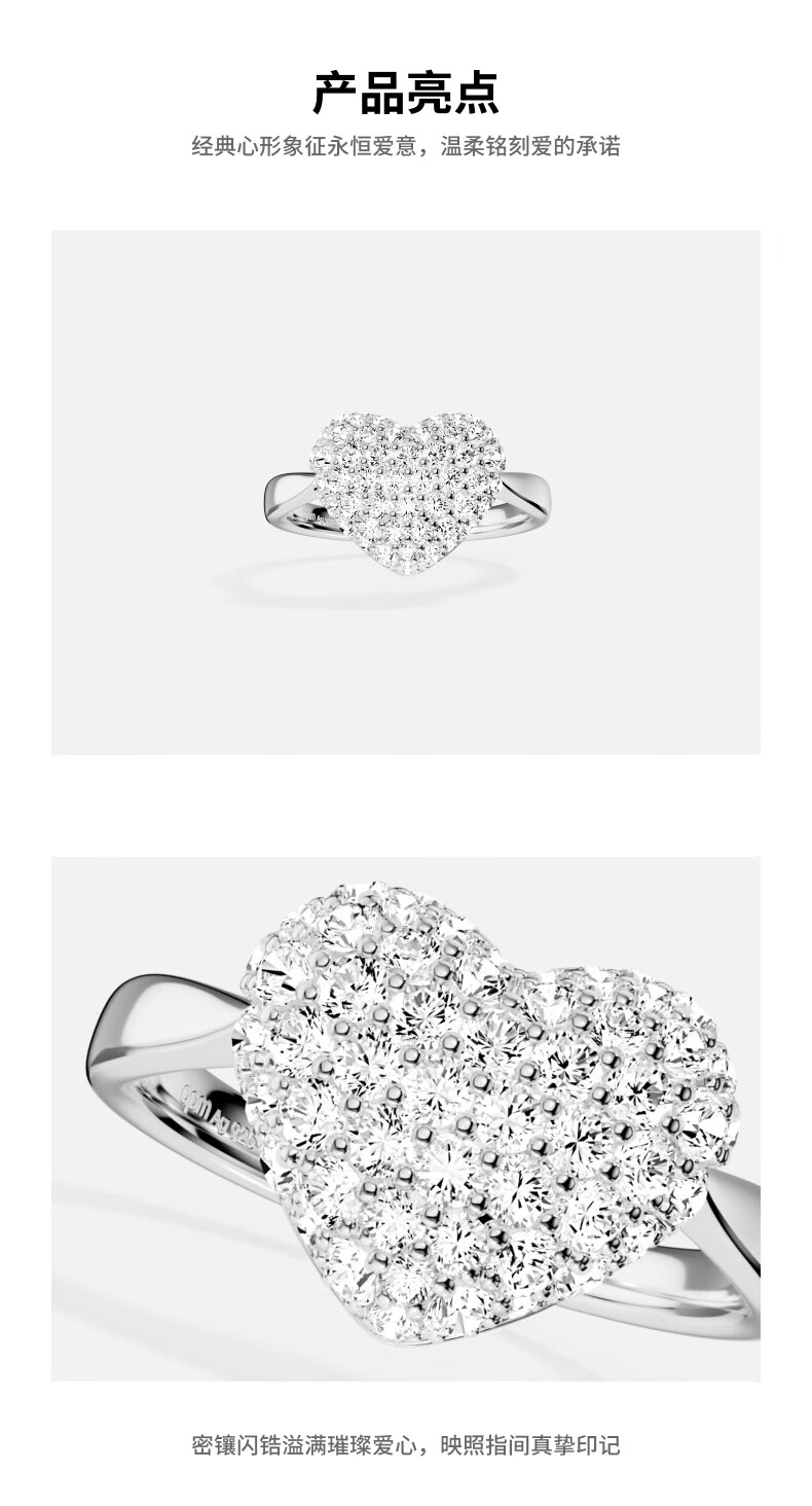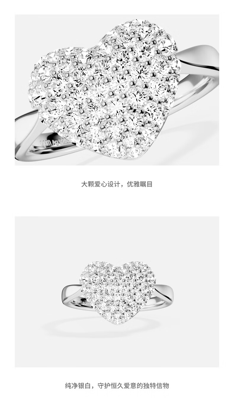 APM Monaco new product love ring silver white pavé large heart-shaped design simple hand jewelry gift silver size 60