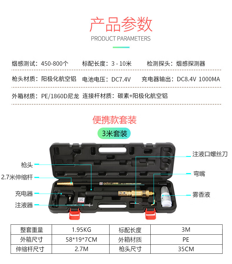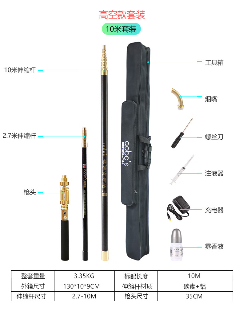 Orbos 10-meter freely retractable fire smoke gun ABS-smoke detector smoke alarm ABS-Y20 telescopic pole (2.7 meters)