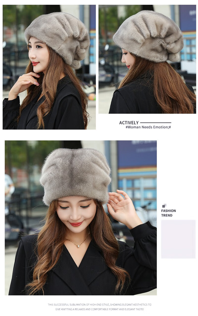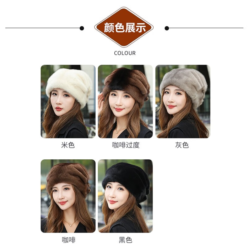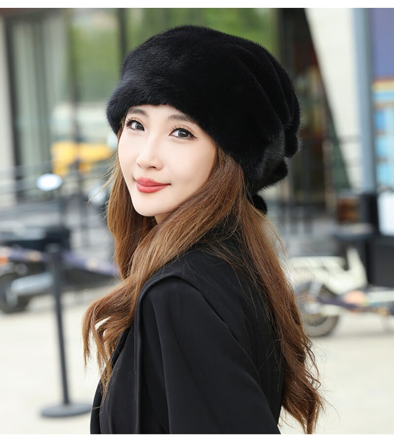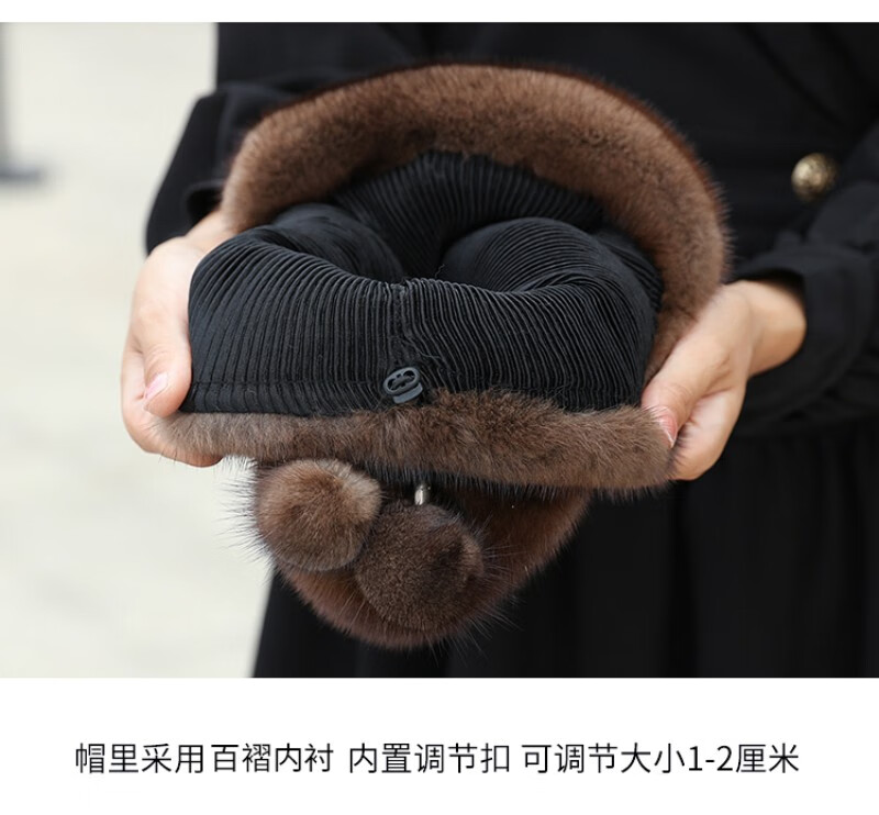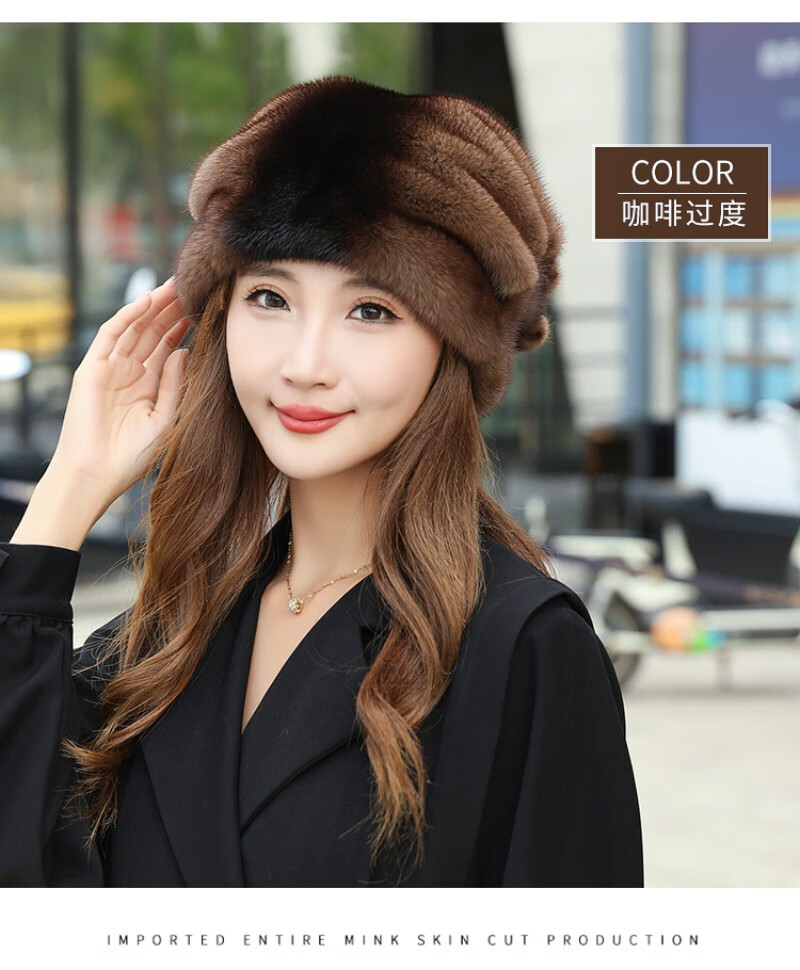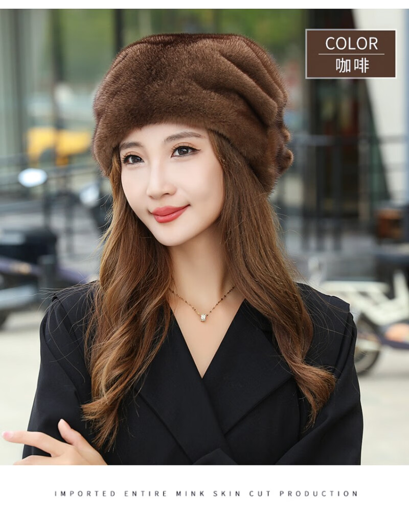 Princess Mink Fur Hat Women's Whole Mink Middle-aged and Old Mink Fur Straw Hat Women's Winter Mink Hat Pile Hat Mink Velvet Mink Fur Winter Brown S(54-56cm)