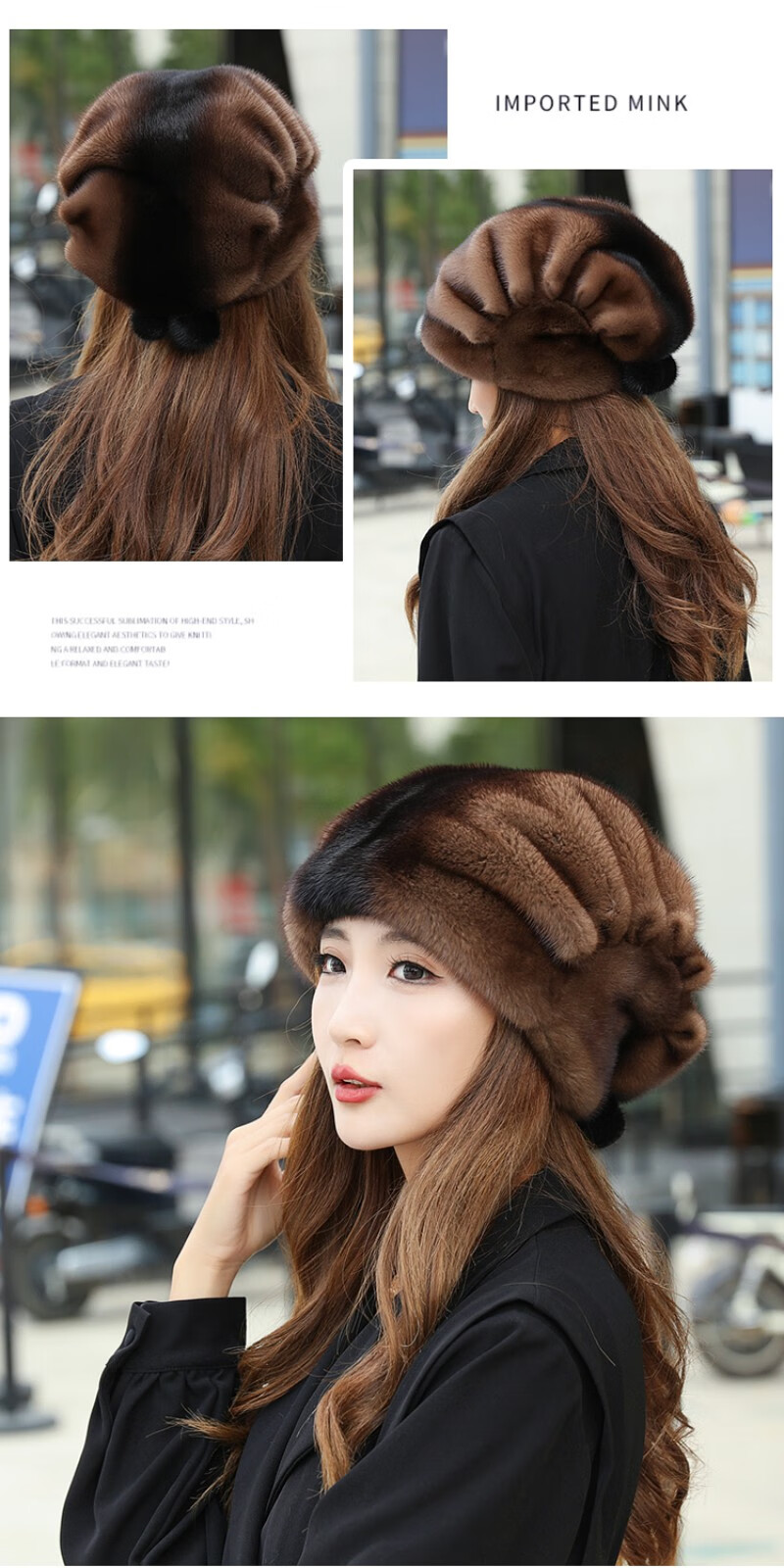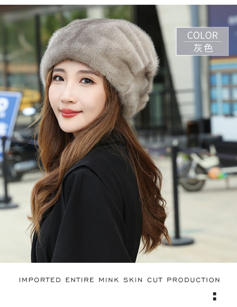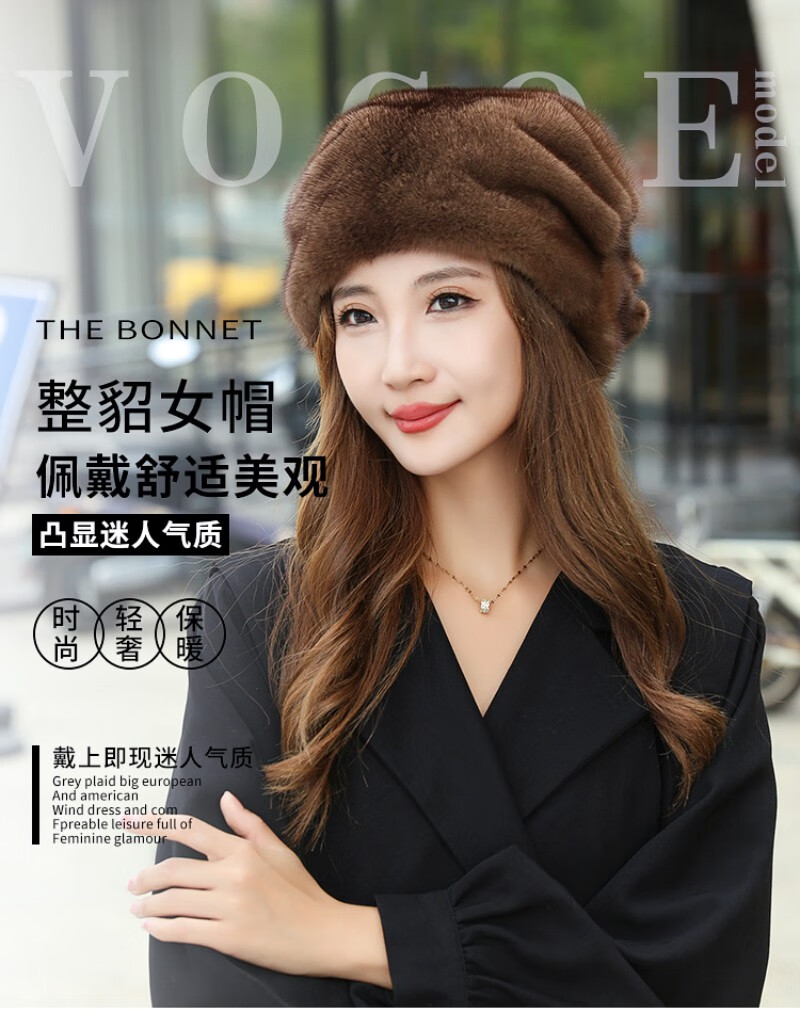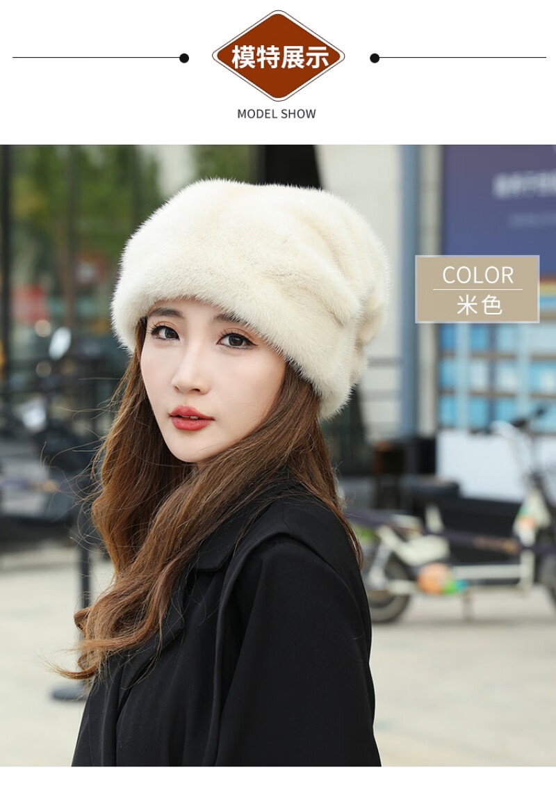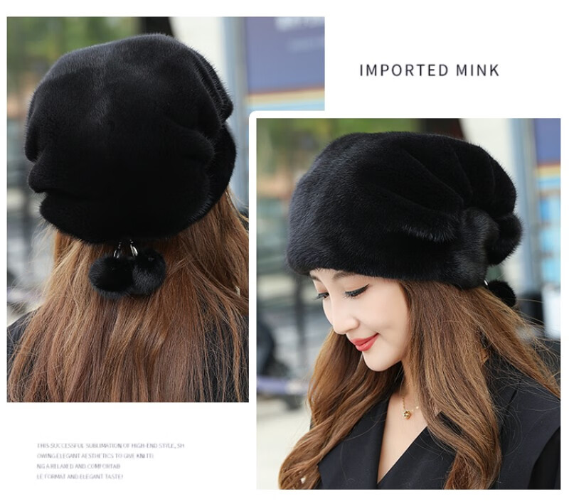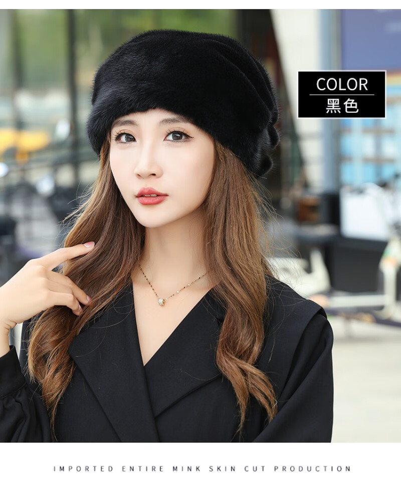 Princess Mink Fur Hat Women's Whole Mink Middle-aged and Old Mink Fur Straw Hat Women's Winter Mink Hat Pile Hat Mink Velvet Mink Fur Winter Brown S(54-56cm)