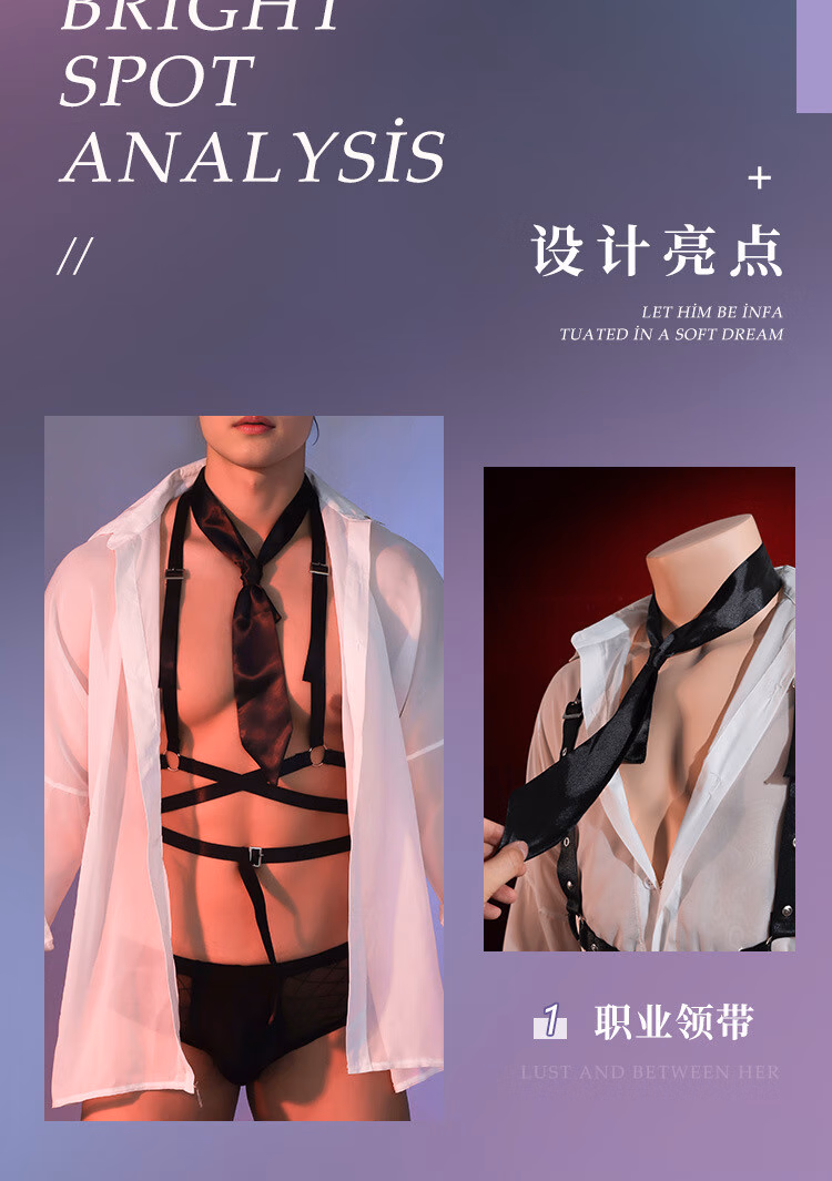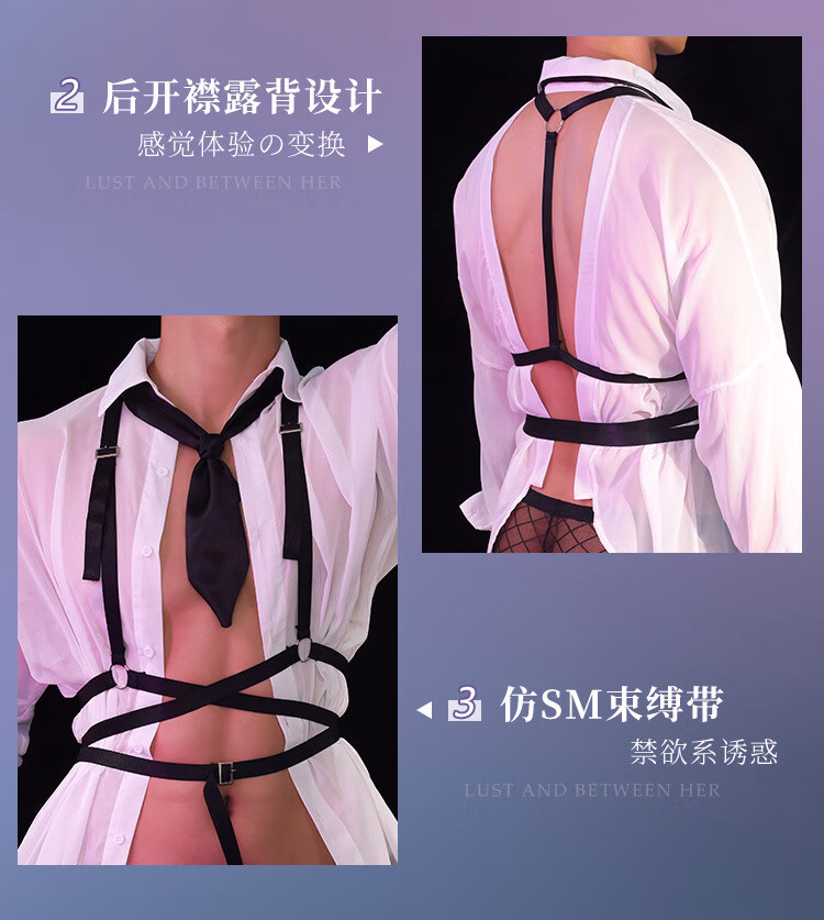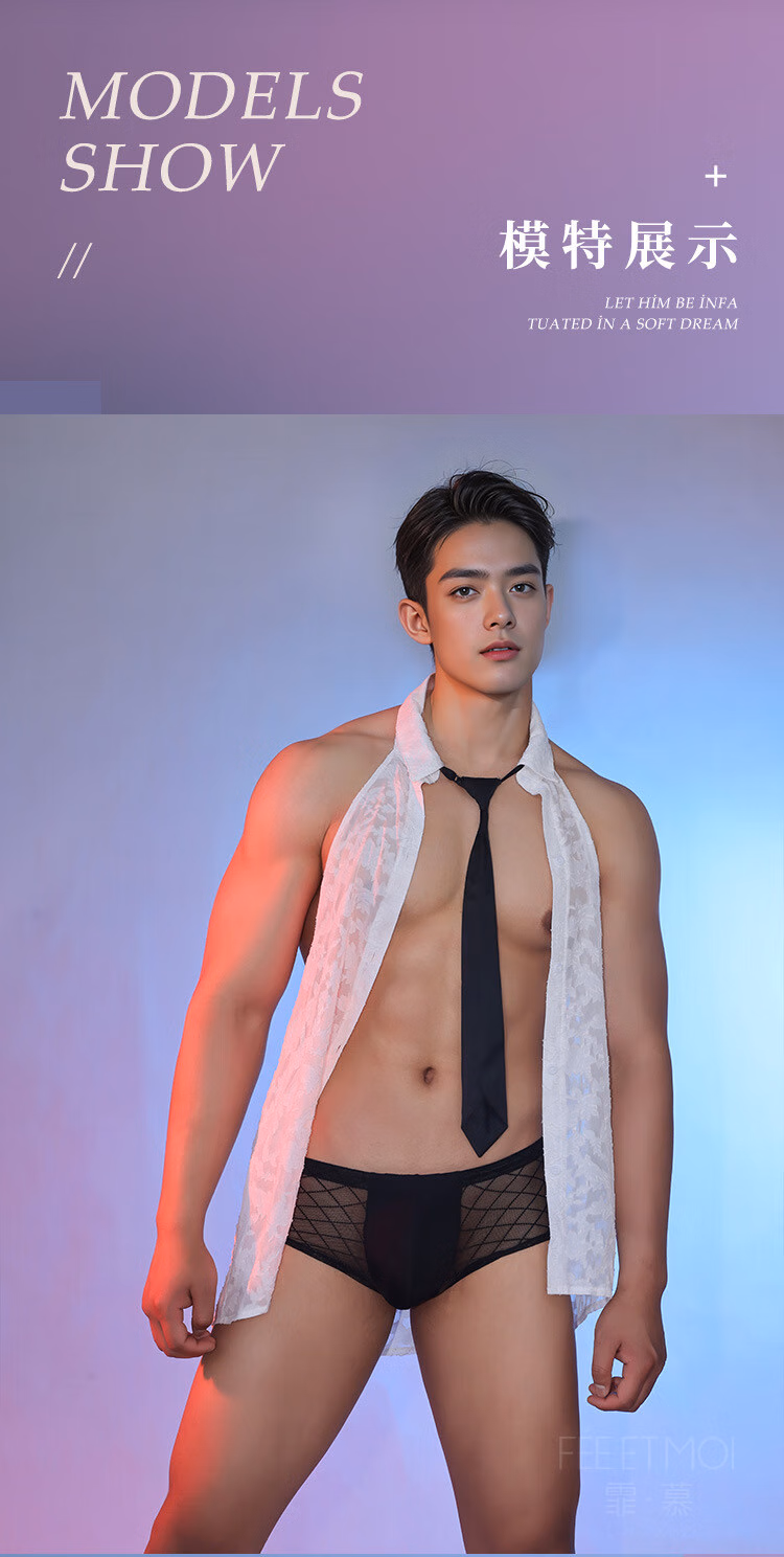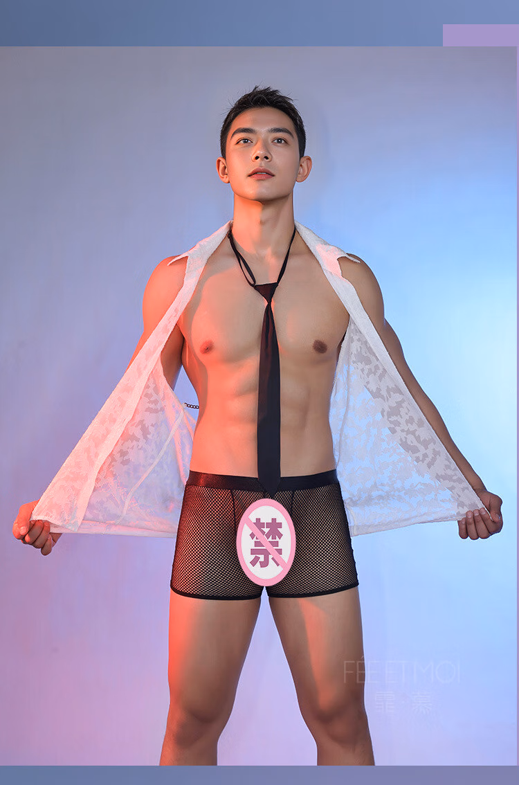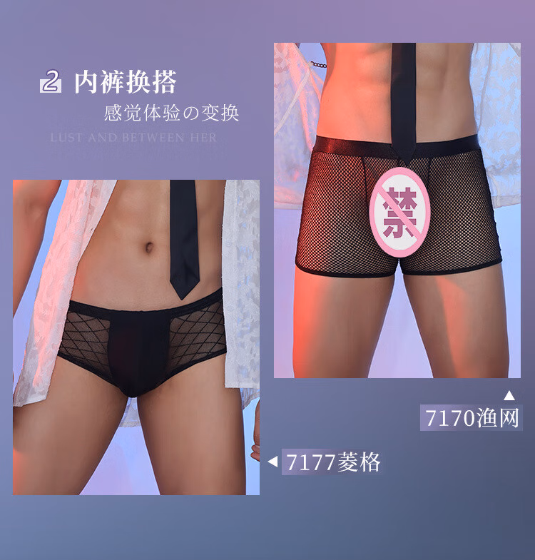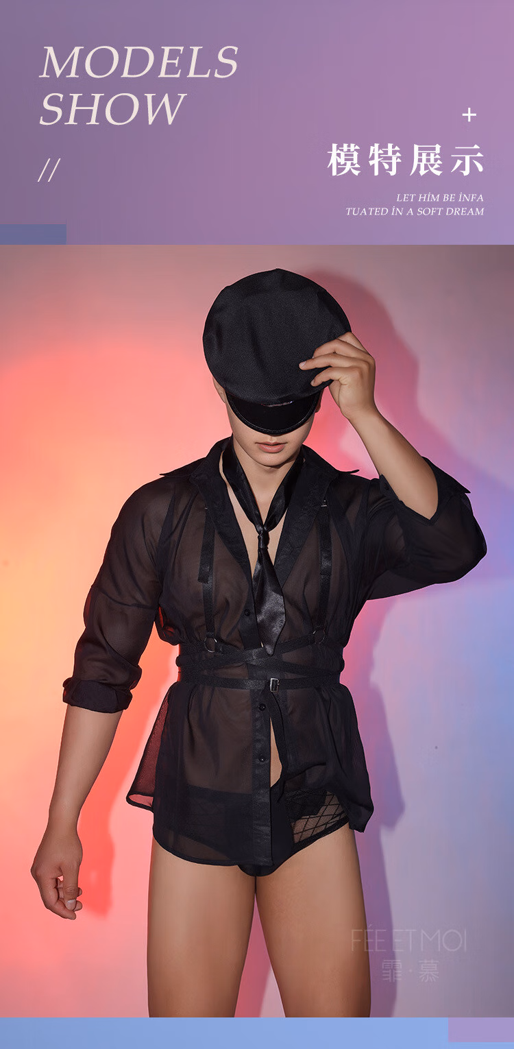 Feimu role-playing sexy pajamas for men, exclusive couples stimulation uniform, temptation thong, three-point sexy pajamas, men's uniform + black plaid underwear