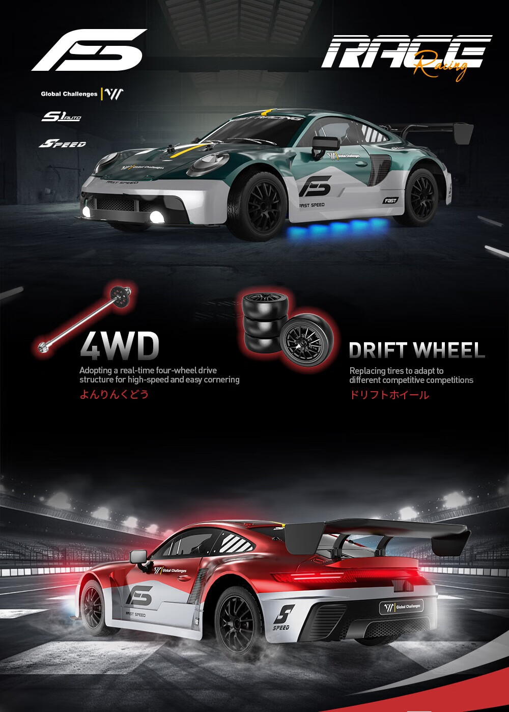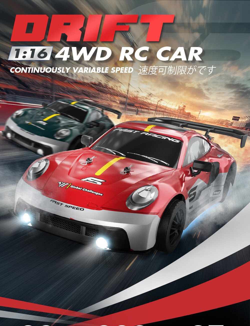 Children's RC four-wheel drive remote control car high-speed drift car 1 16 full scale competitive racing model toy boy 1 16 half scale drift car black 1 set of body battery + remote control battery