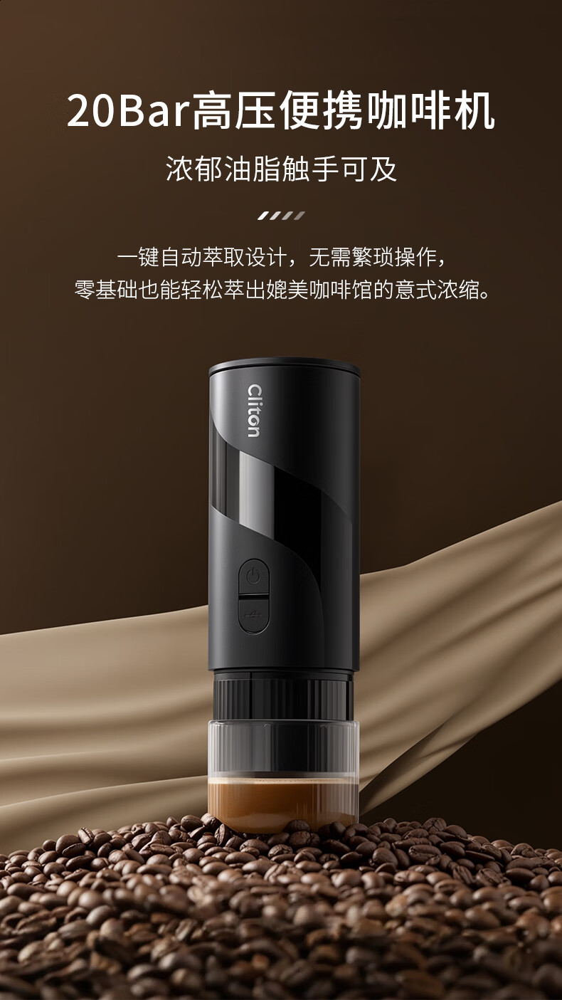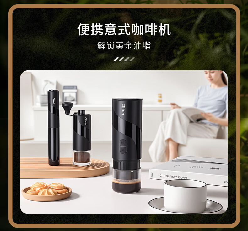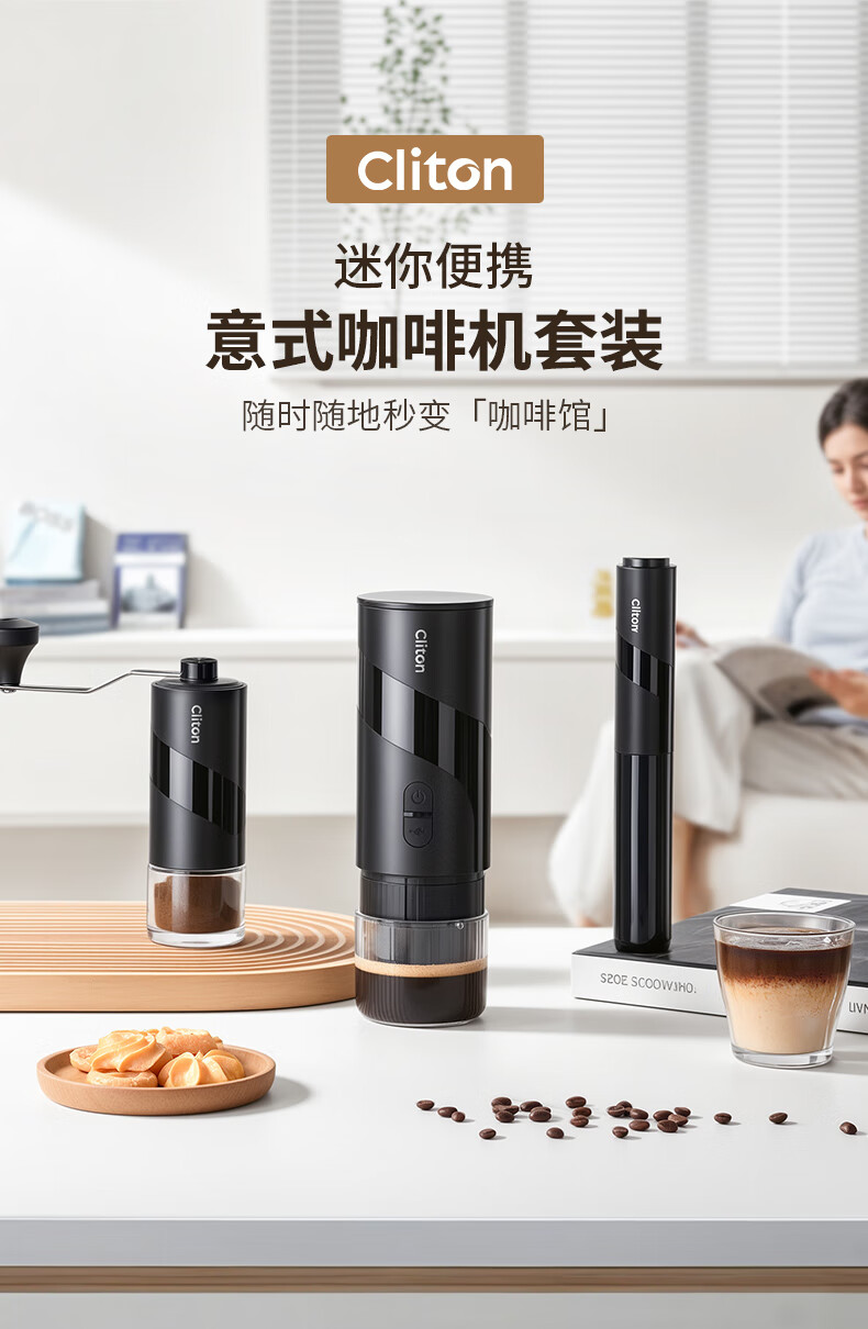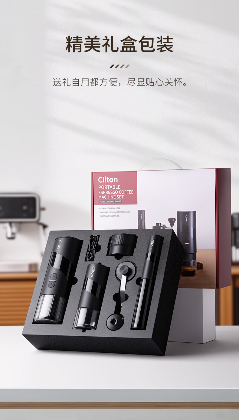 CLITON portable espresso machine set electric espresso machine capsule extraction small home outdoor office S2 metal water tank dual-use version + gift set