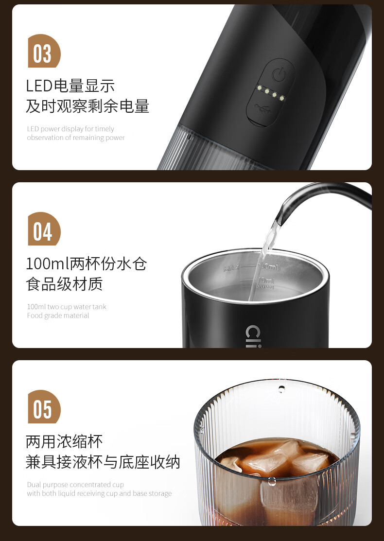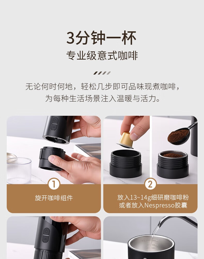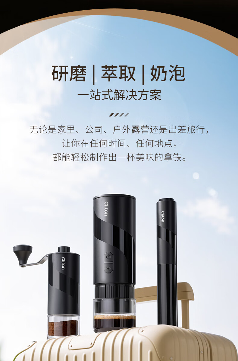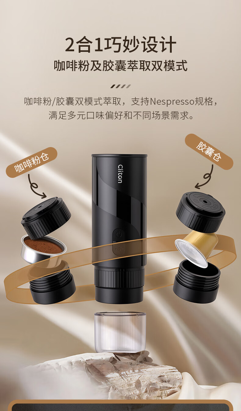 CLITON portable espresso machine set electric espresso machine capsule extraction small home outdoor office S2 metal water tank dual-use version + gift set