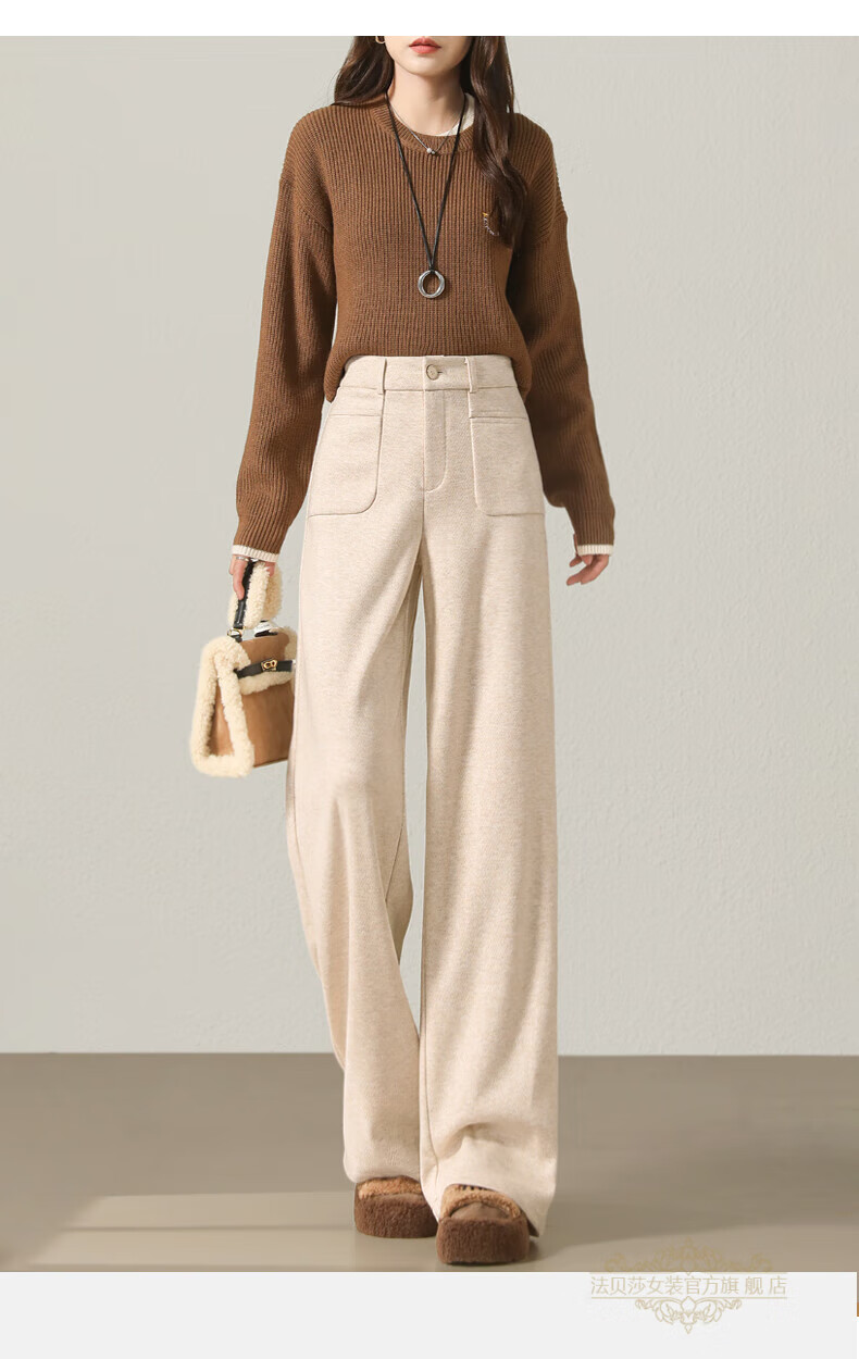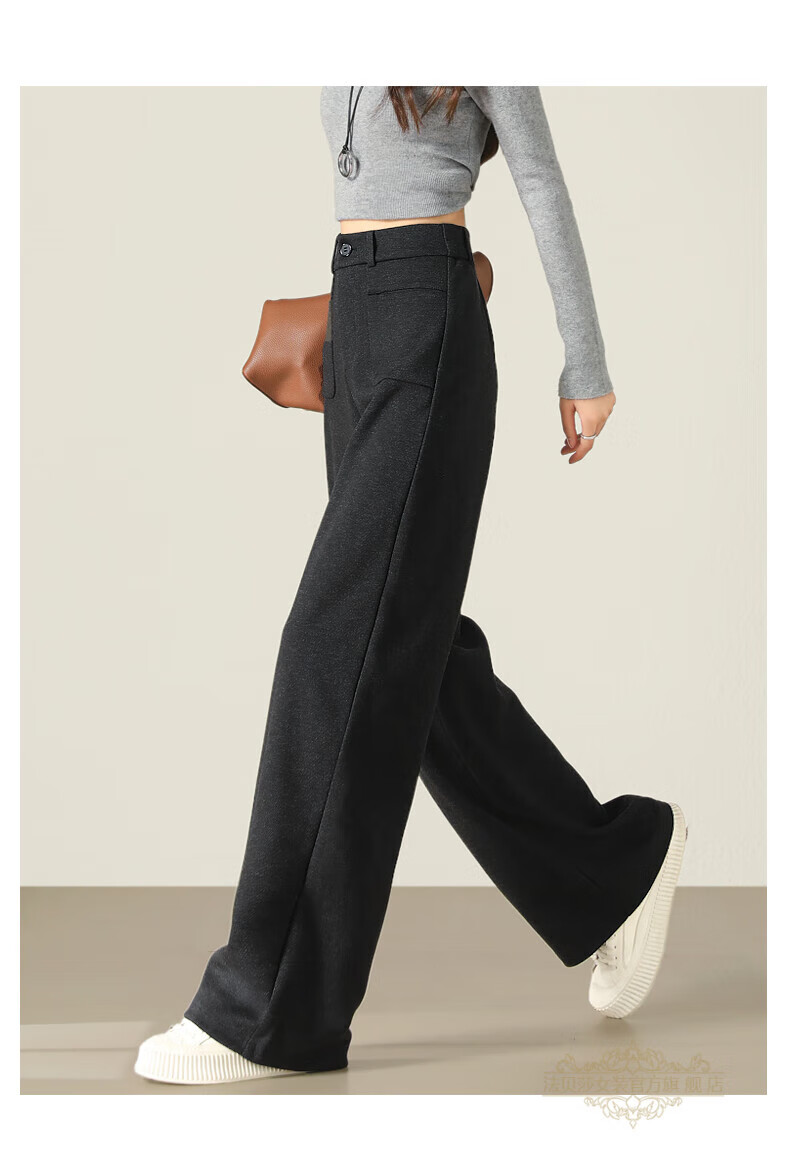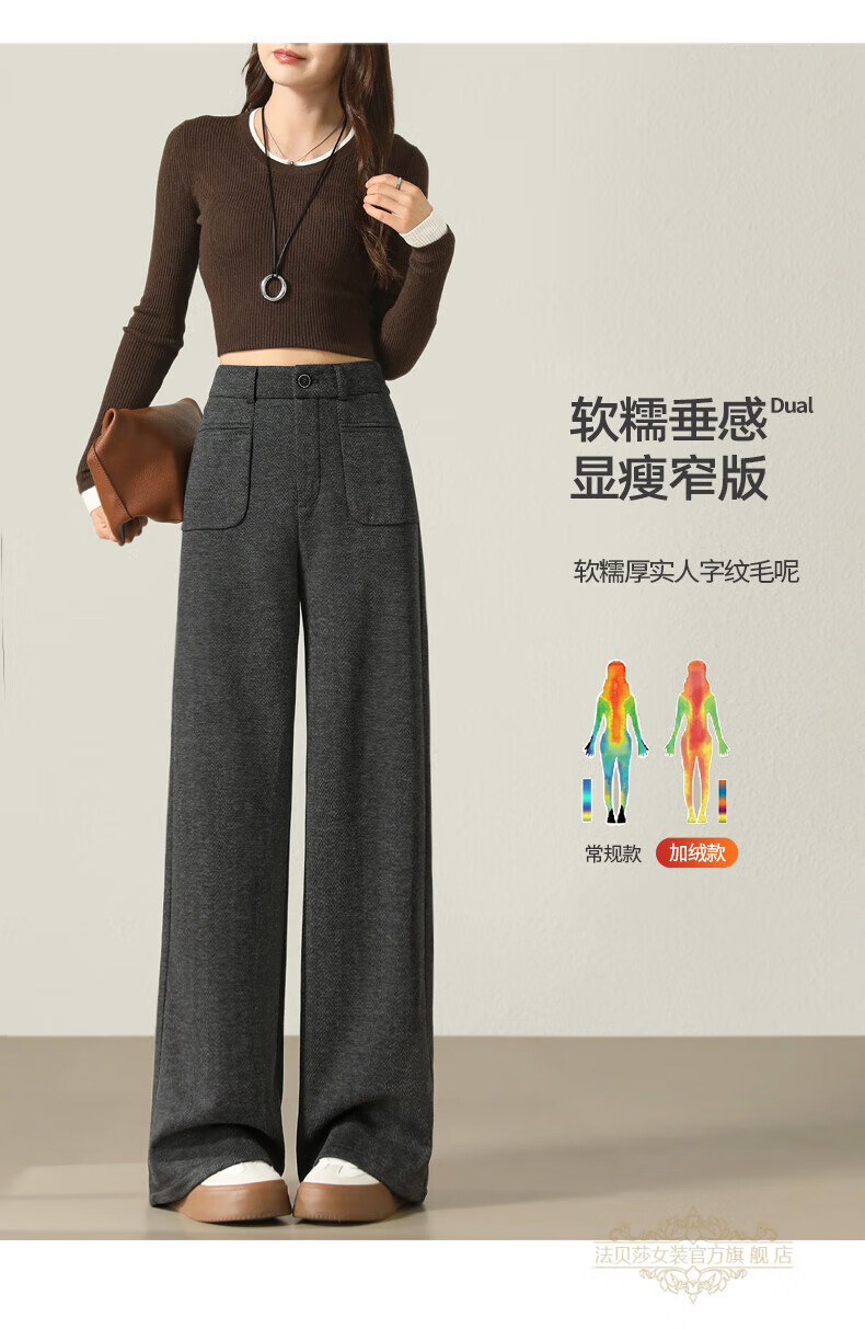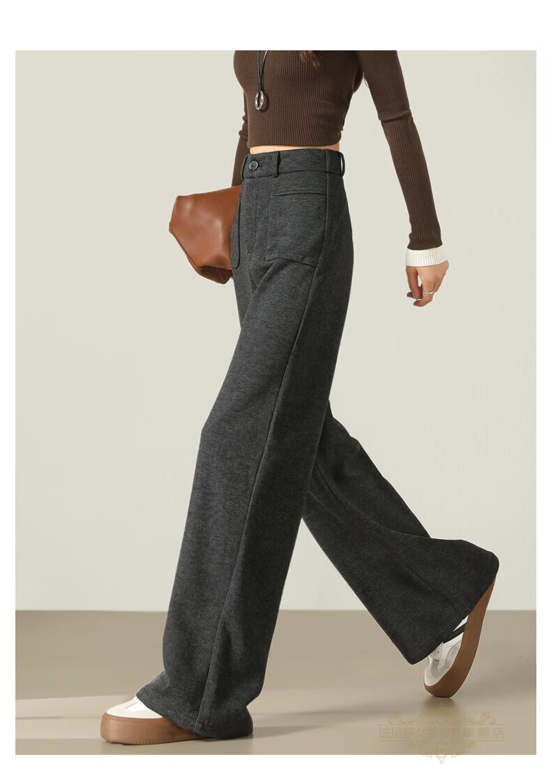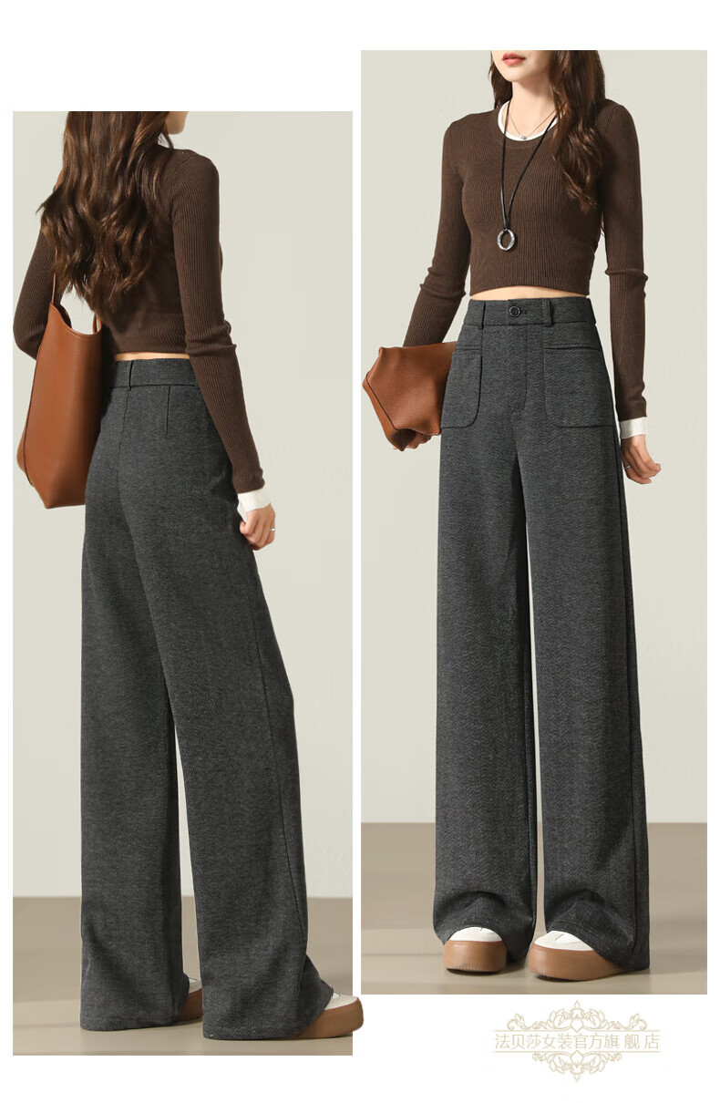 Faberza brand herringbone wool wide-leg pants for women in autumn and winter high-waisted loose gray suit plus velvet straight pants oatmeal color plus velvet 2XL 126-135Jin Jin is equal to 0.5 kg