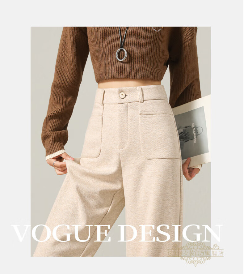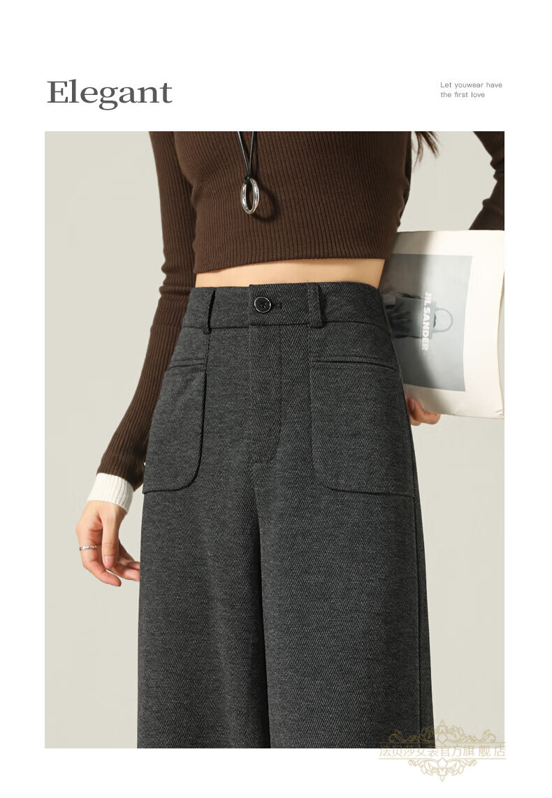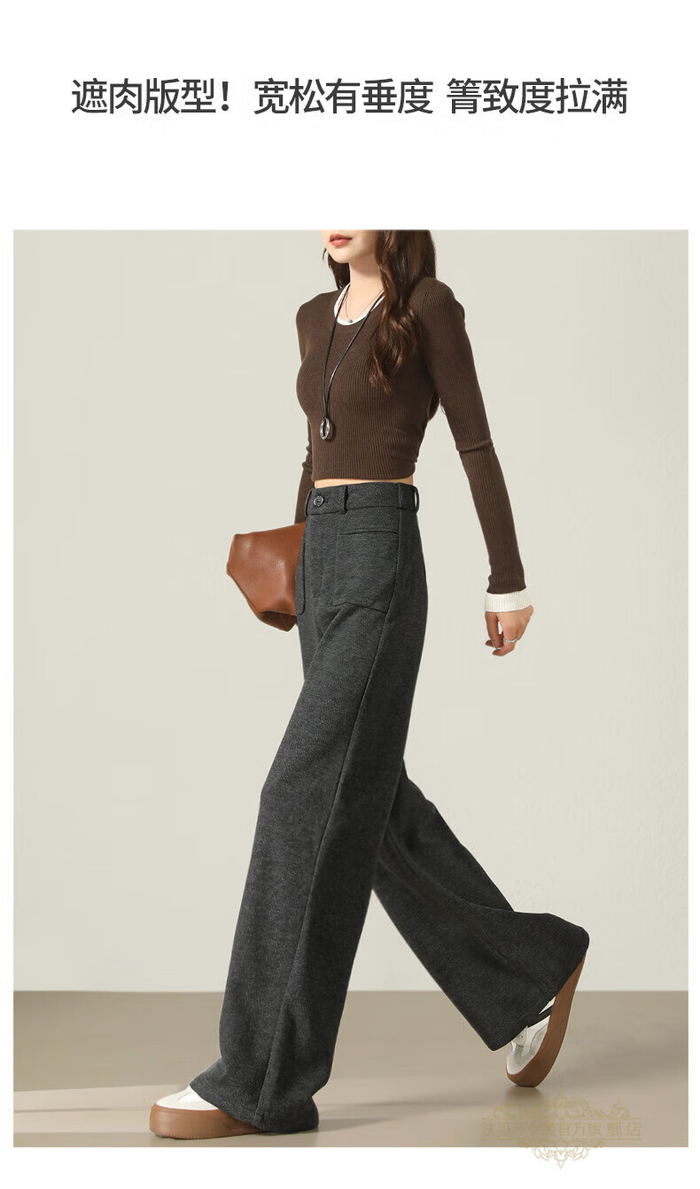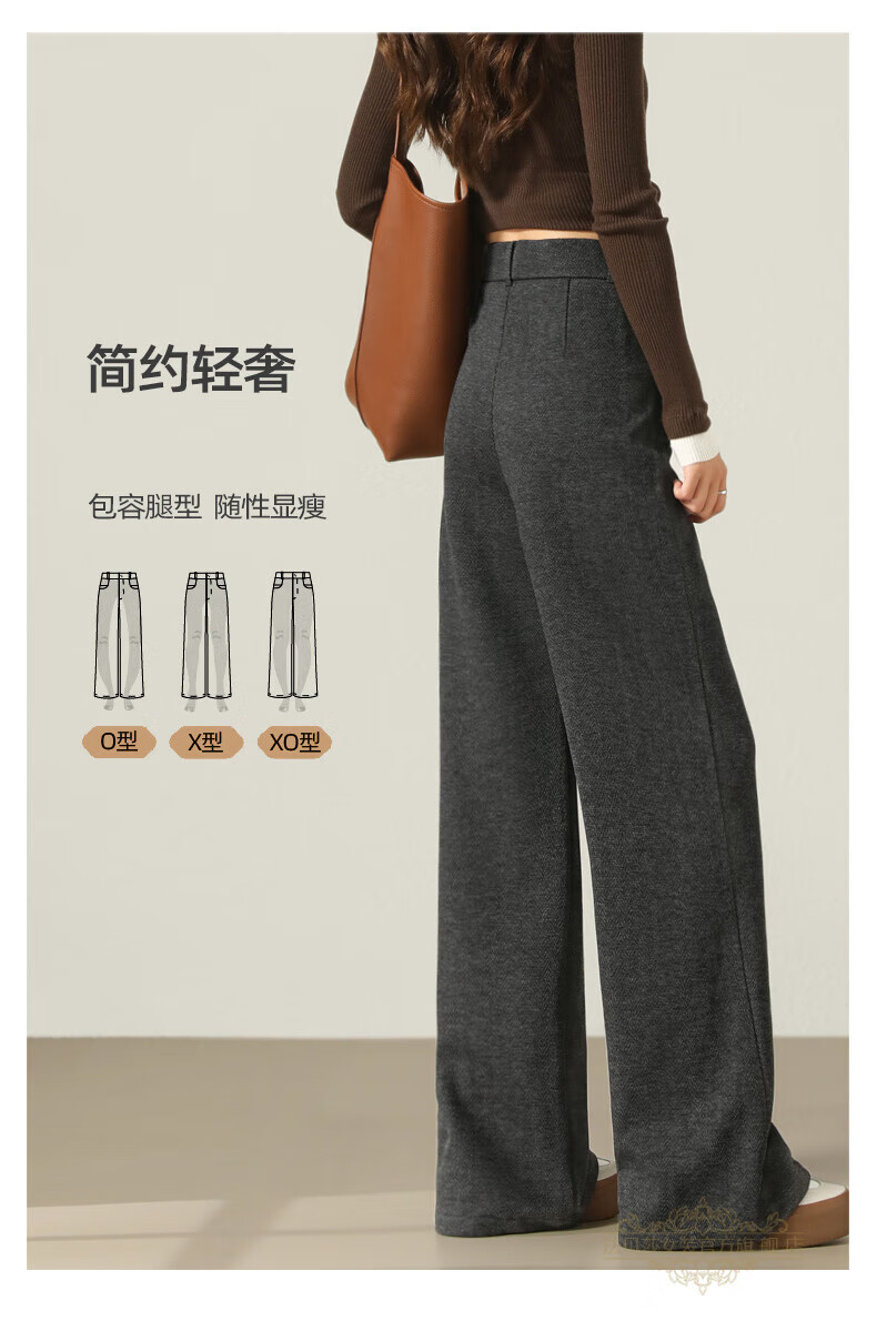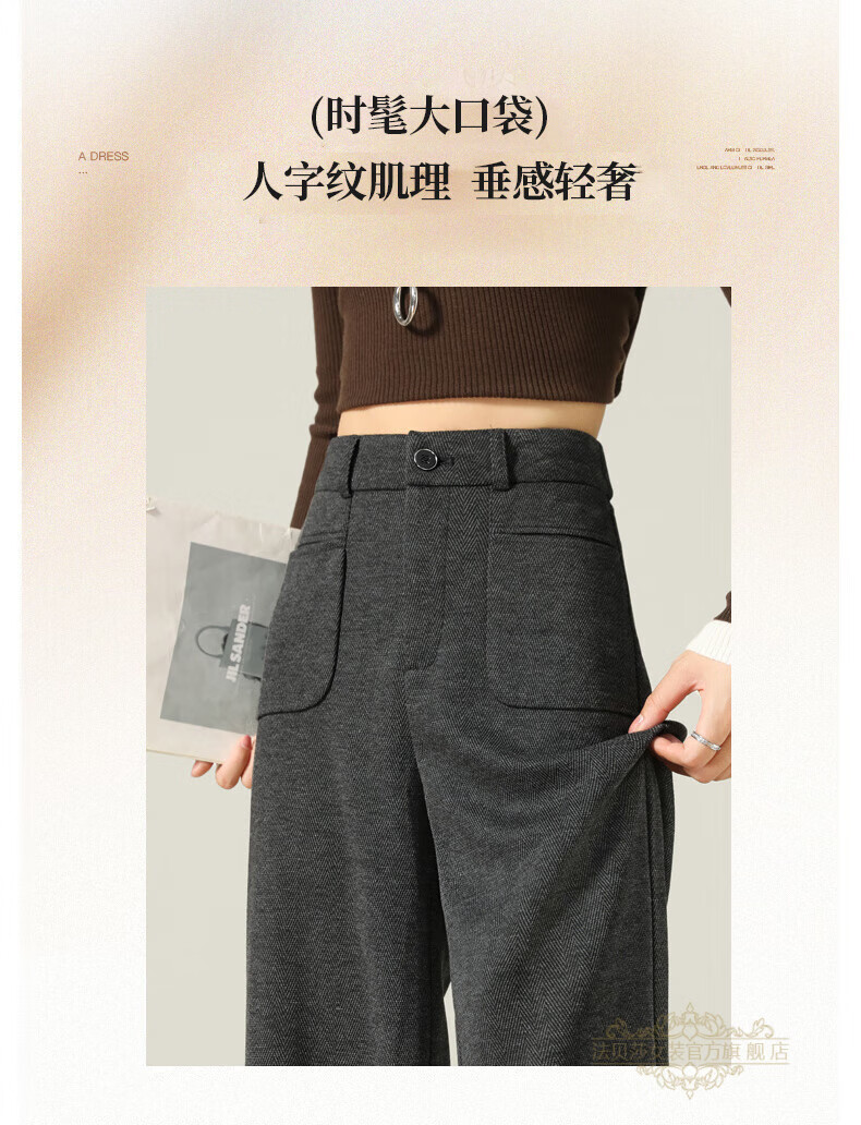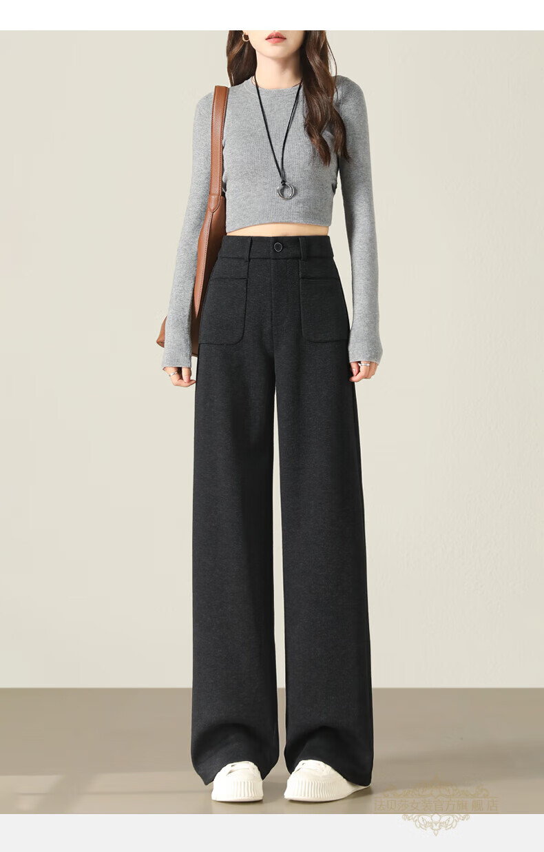 Faberza brand herringbone wool wide-leg pants for women in autumn and winter high-waisted loose gray suit plus velvet straight pants oatmeal color plus velvet 2XL 126-135Jin Jin is equal to 0.5 kg