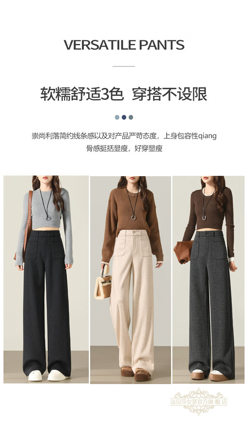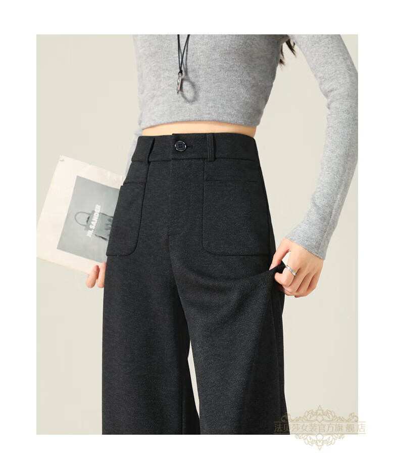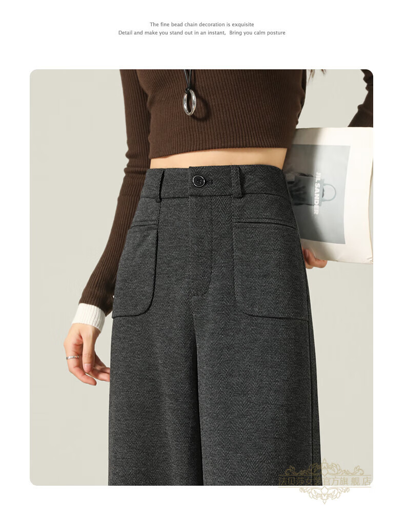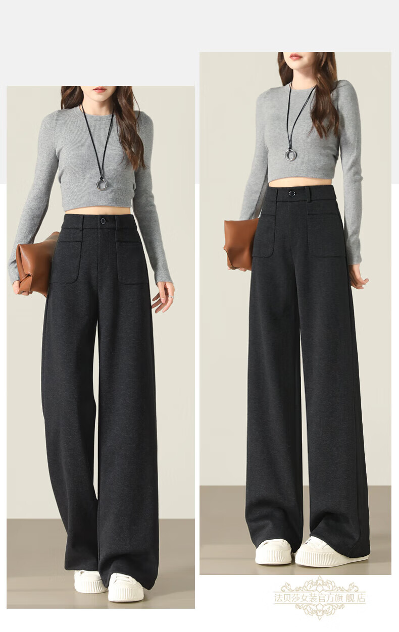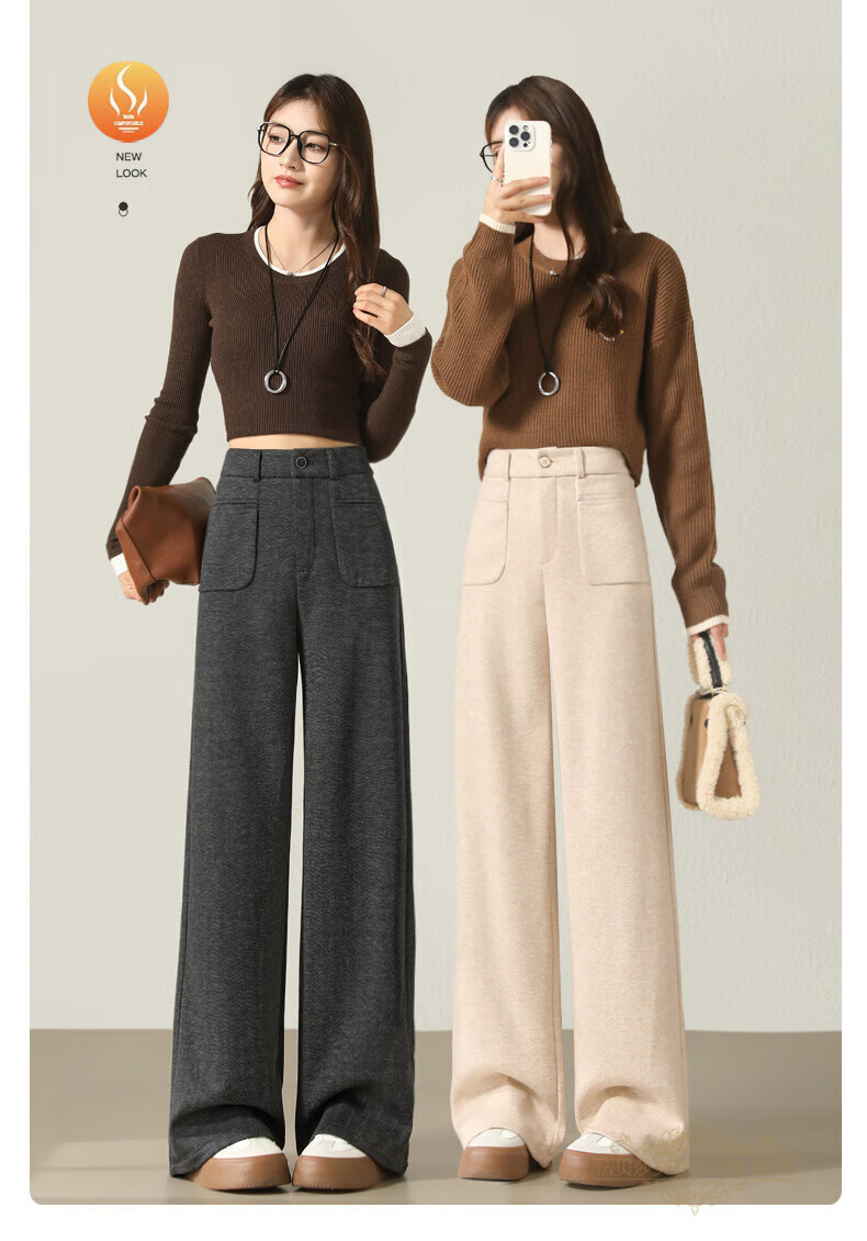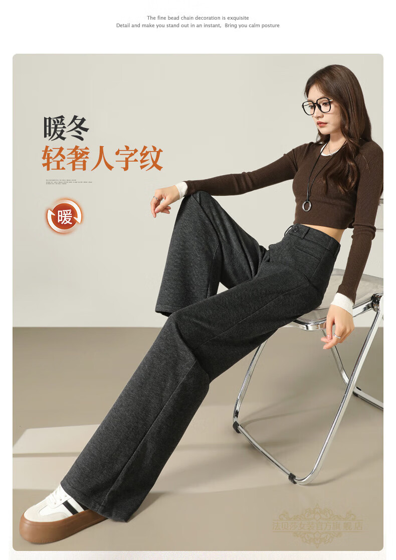 Faberza brand herringbone wool wide-leg pants for women in autumn and winter high-waisted loose gray suit plus velvet straight pants oatmeal color plus velvet 2XL 126-135Jin Jin is equal to 0.5 kg