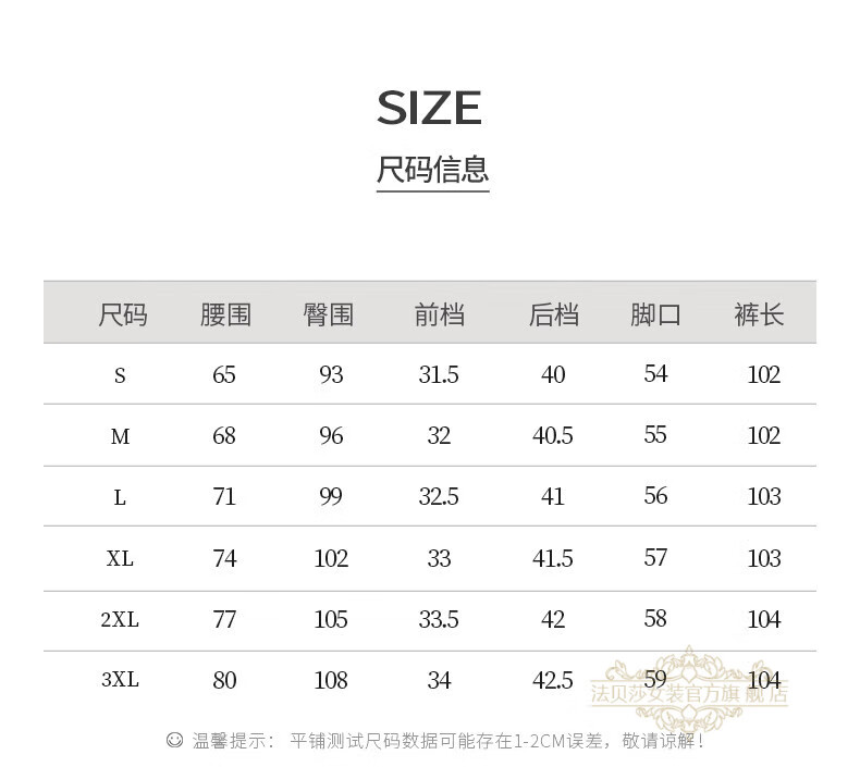 Outseam (cm) 99 cm 101.5 cm 104 cm 106.5 cm 109 cm