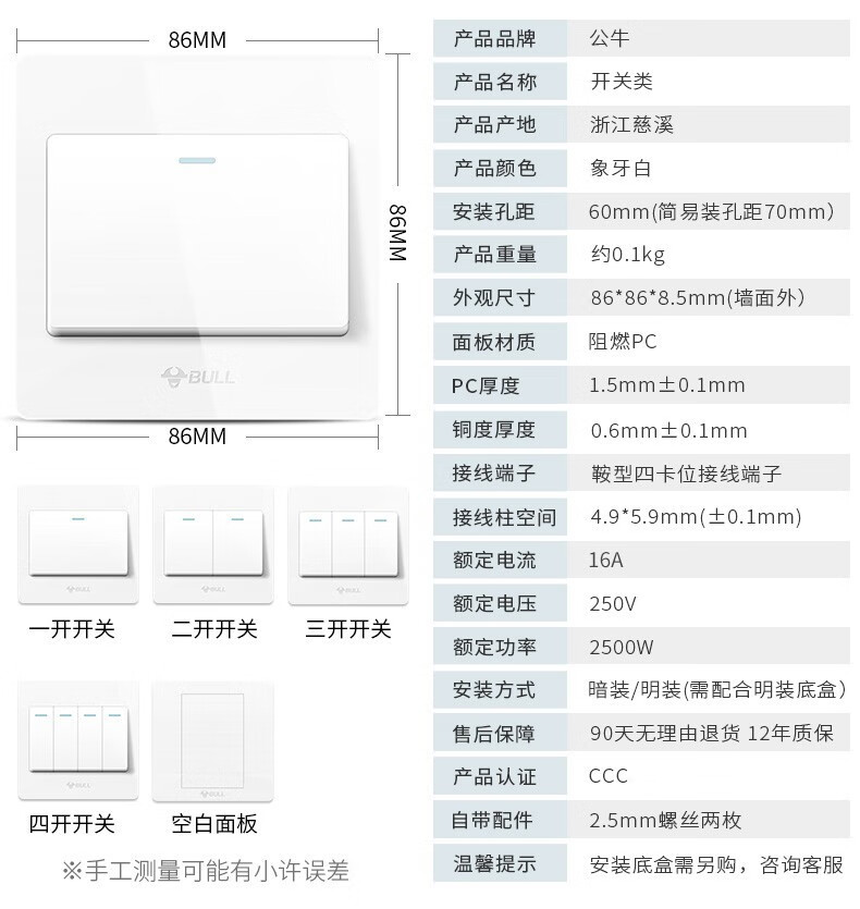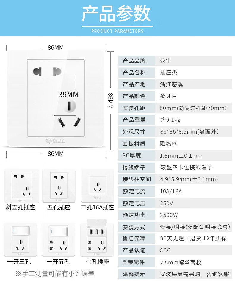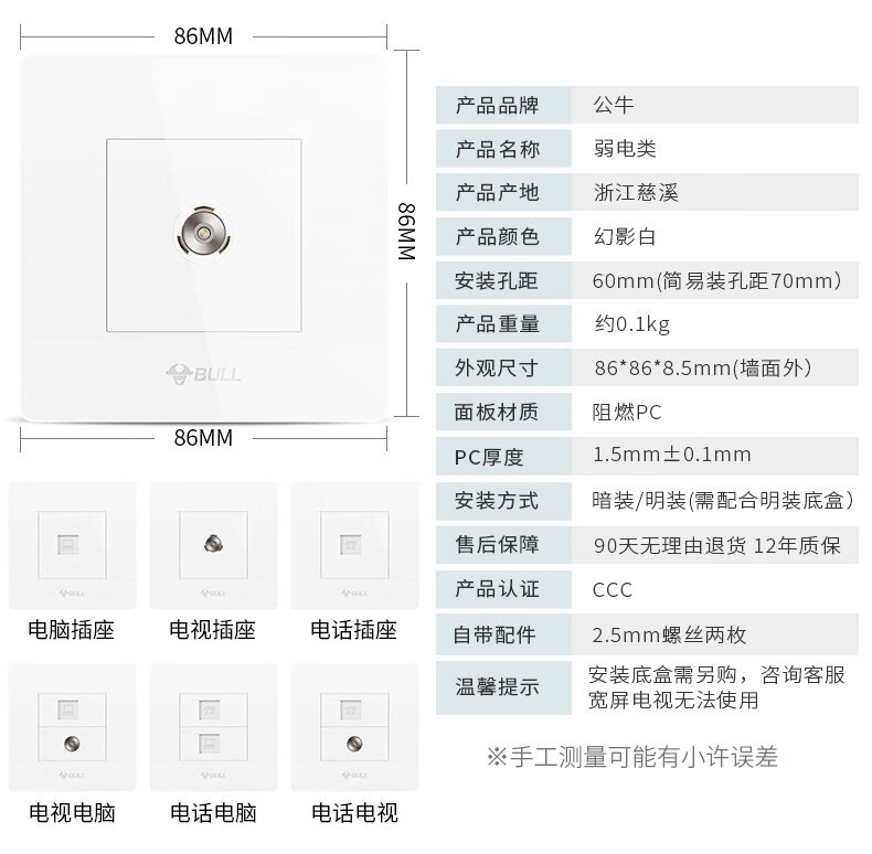 Shantou Lincun Bull switch socket mesh panel five-hole concealed with USB wall wall plug-in board type 86 seven holes