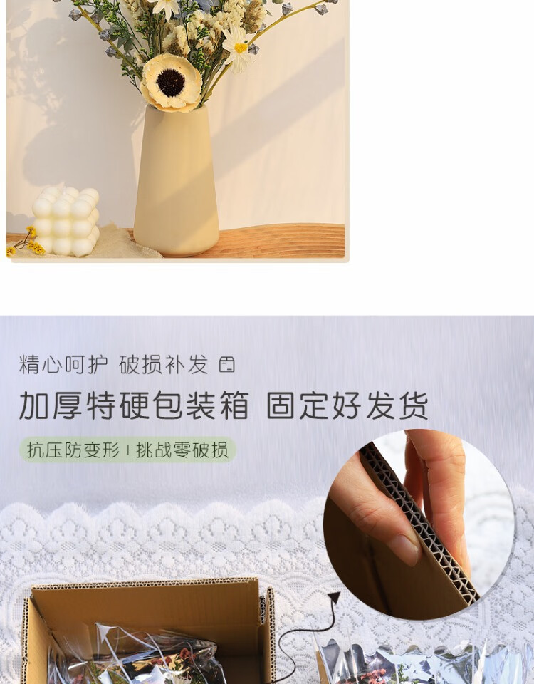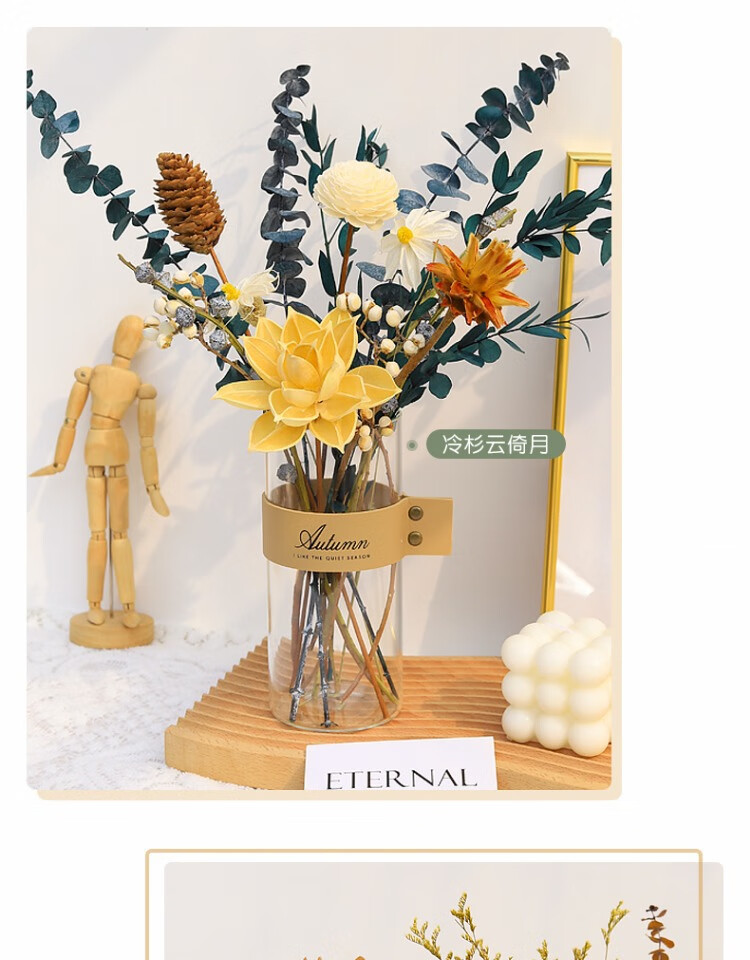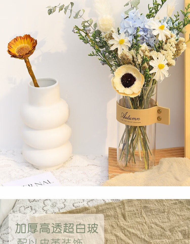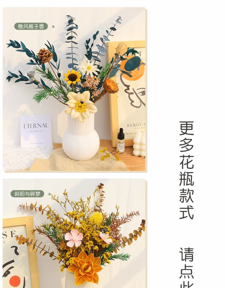 High-end dried flower bouquet, real flowers, immortal flowers, living room decorations, coffee table, entrance hall, bedroom, light luxury decoration, simple setting sun, broken dreams + leather vase