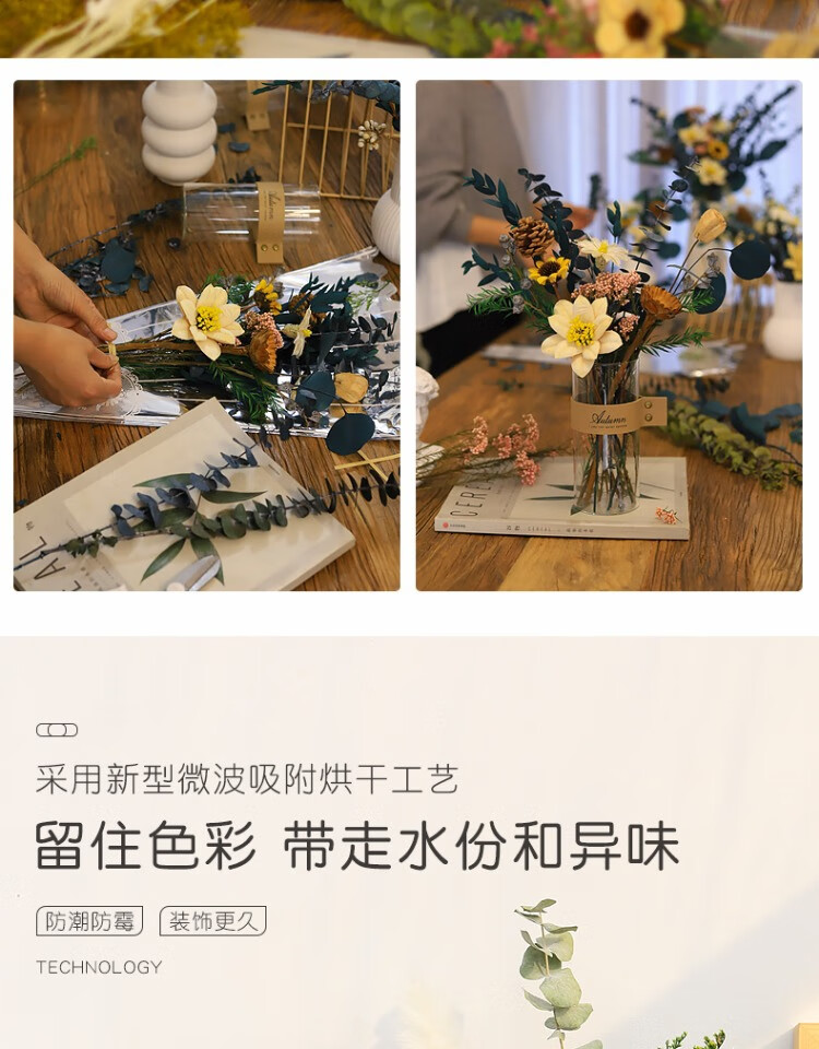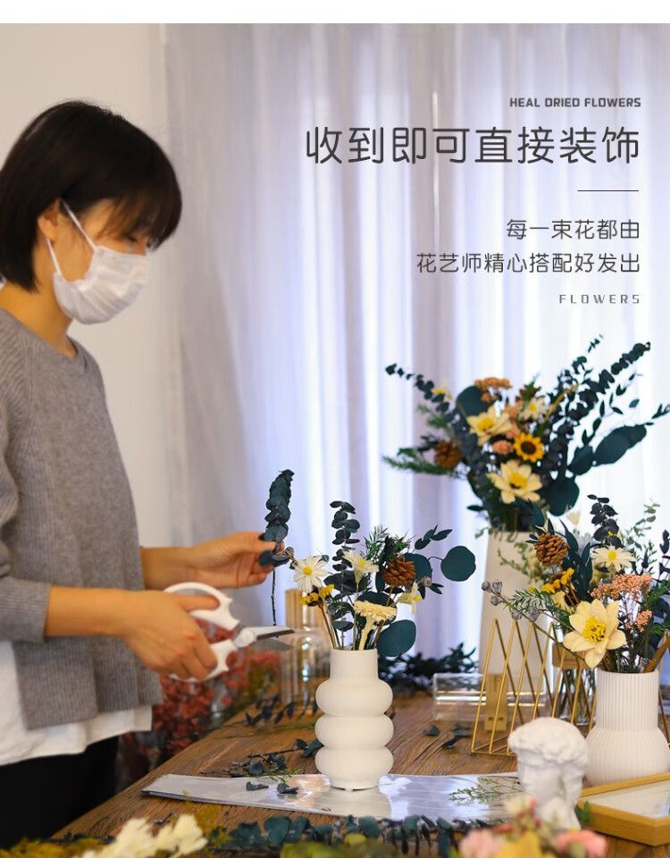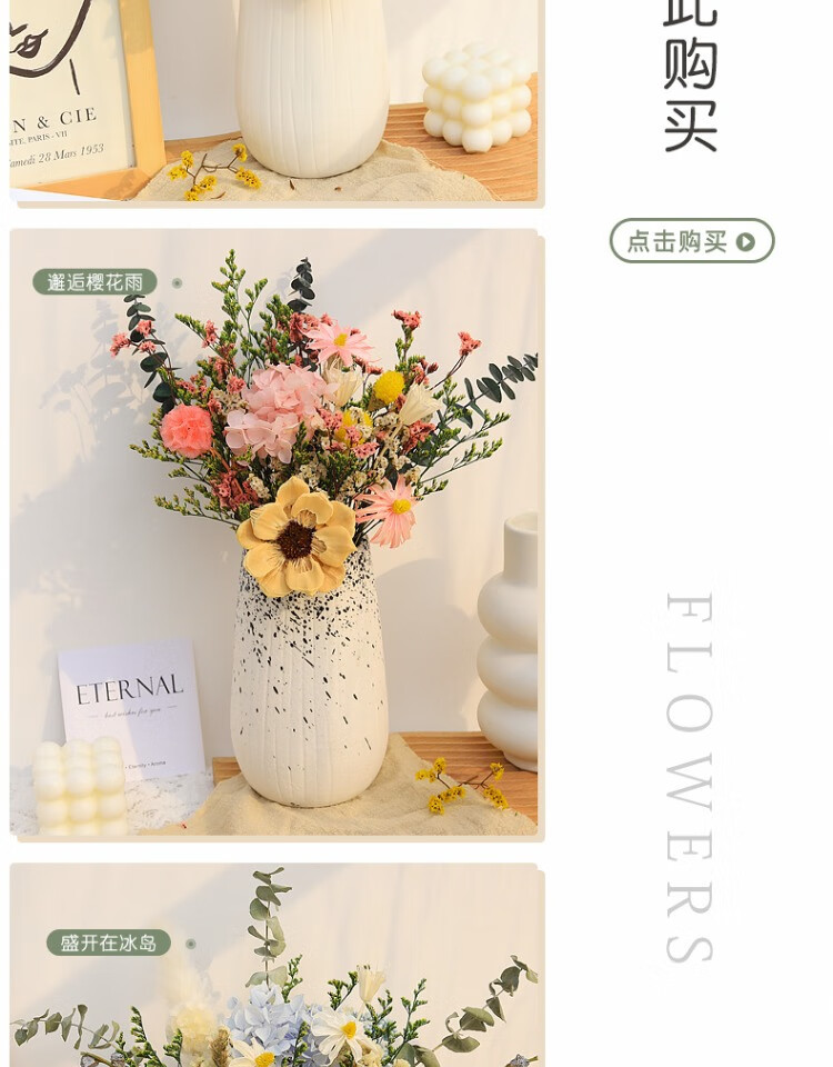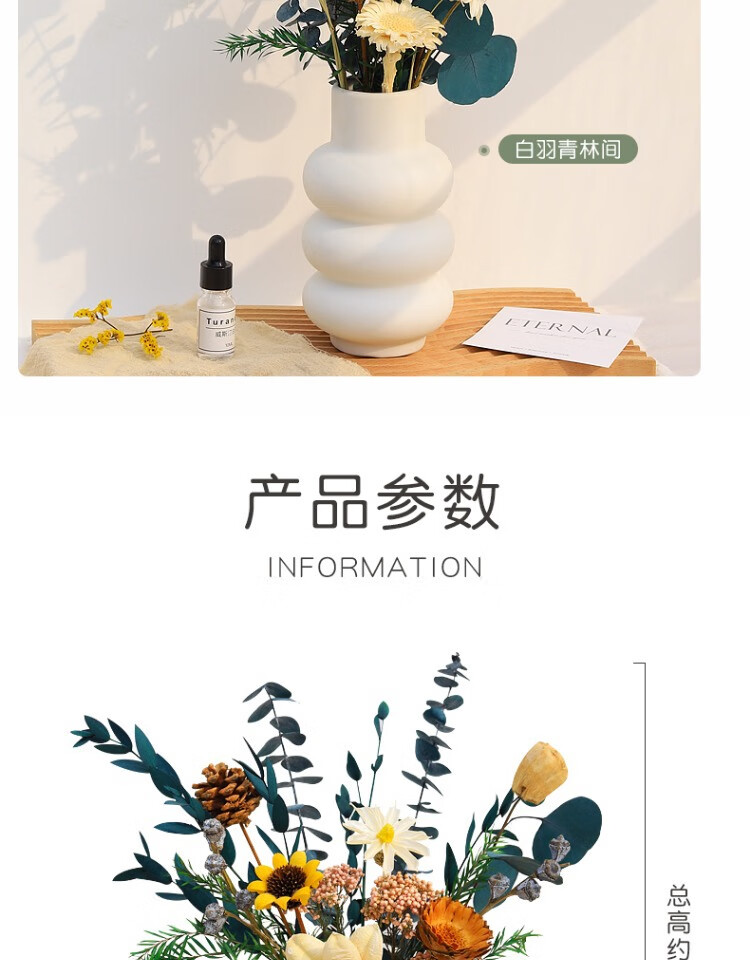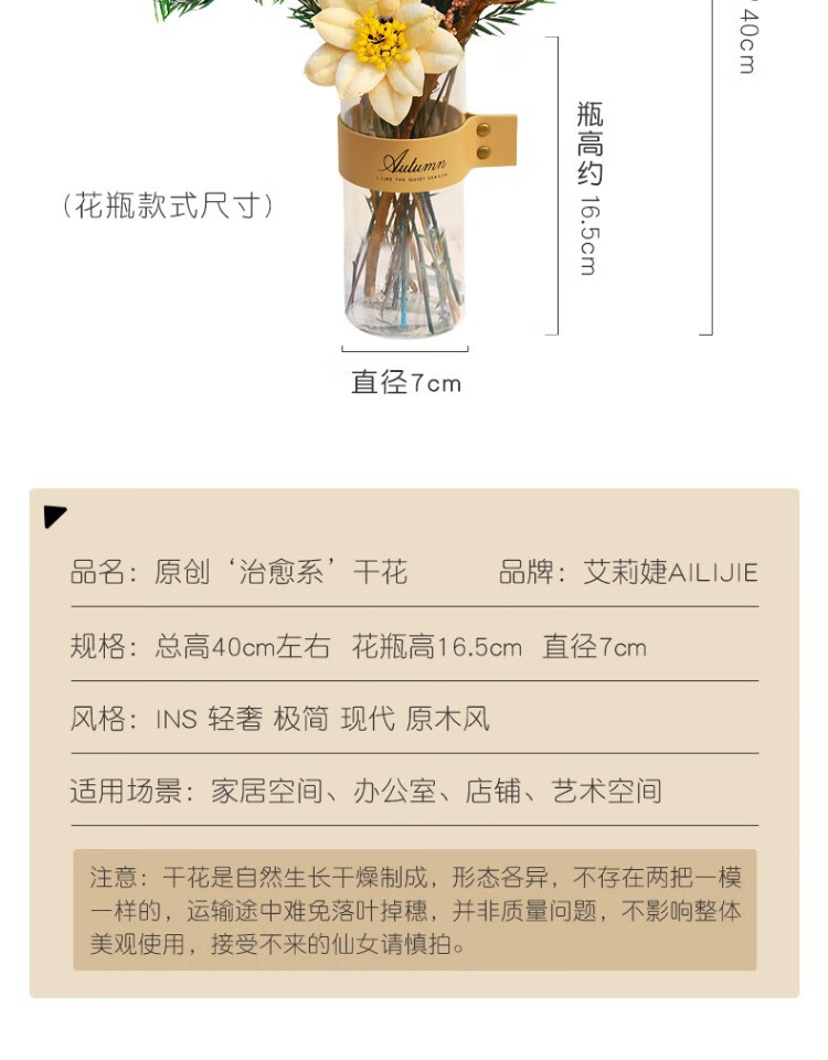 High-end dried flower bouquet, real flowers, immortal flowers, living room decorations, coffee table, entrance hall, bedroom, light luxury decoration, simple setting sun, broken dreams + leather vase
