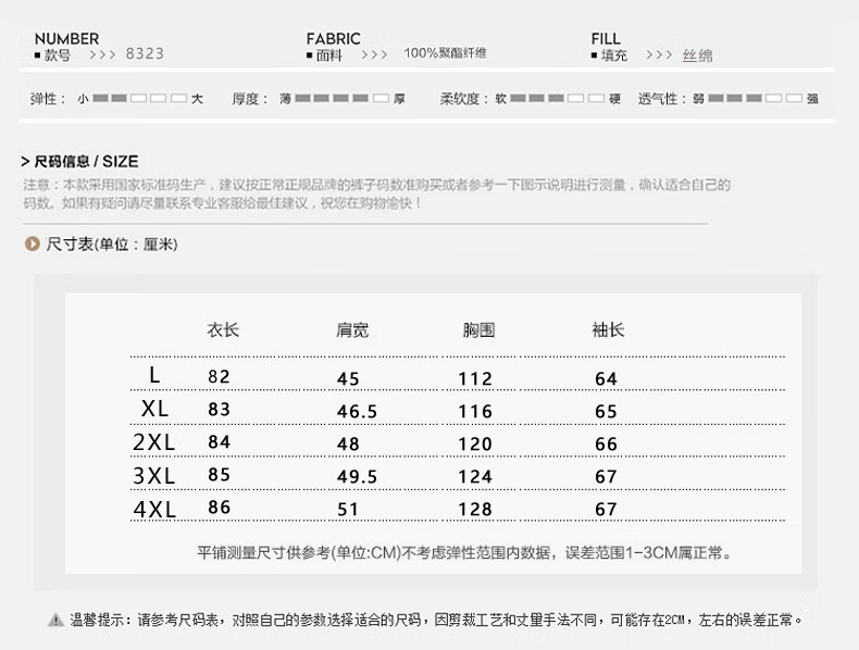 China (cm) 165 / 88-90 170 / 96-98 175 / 108-110 180 / 118-122 185 / 126-130