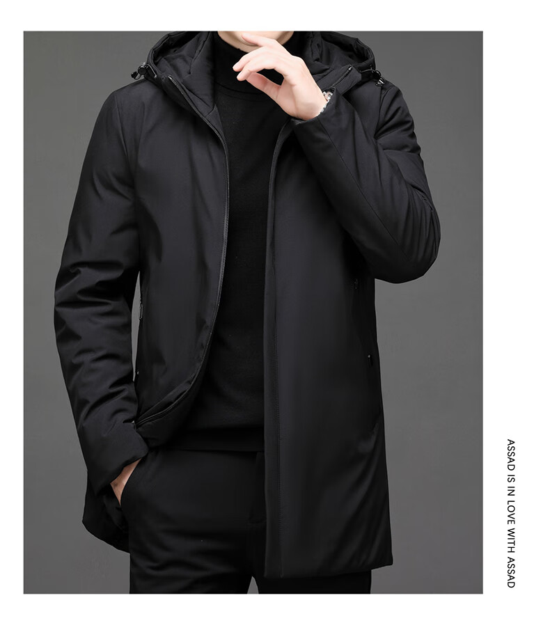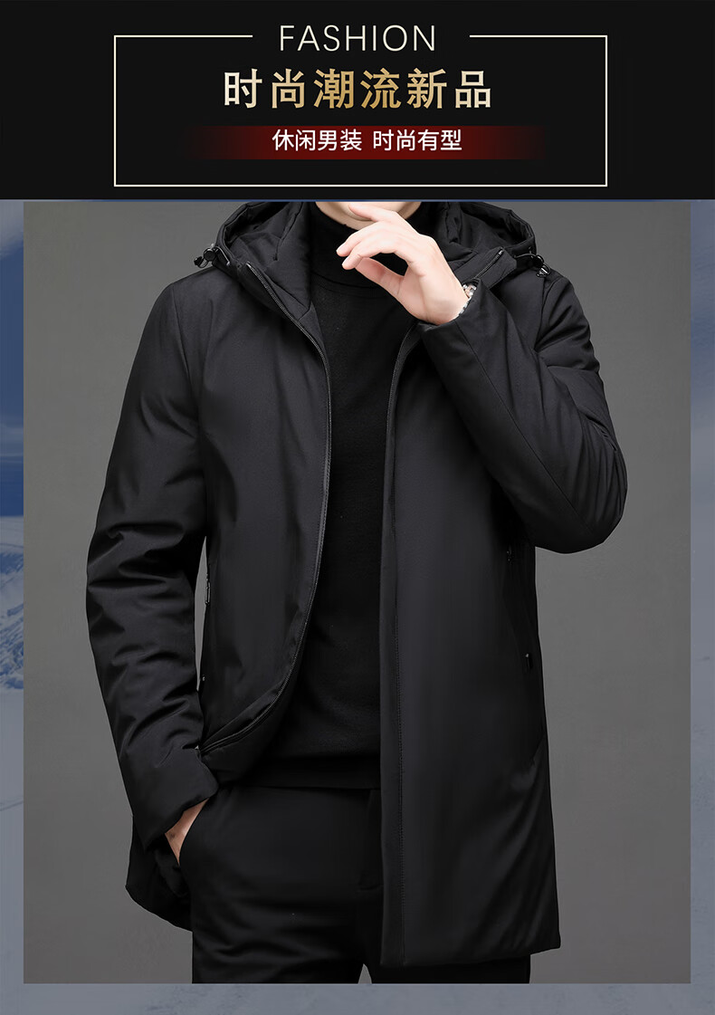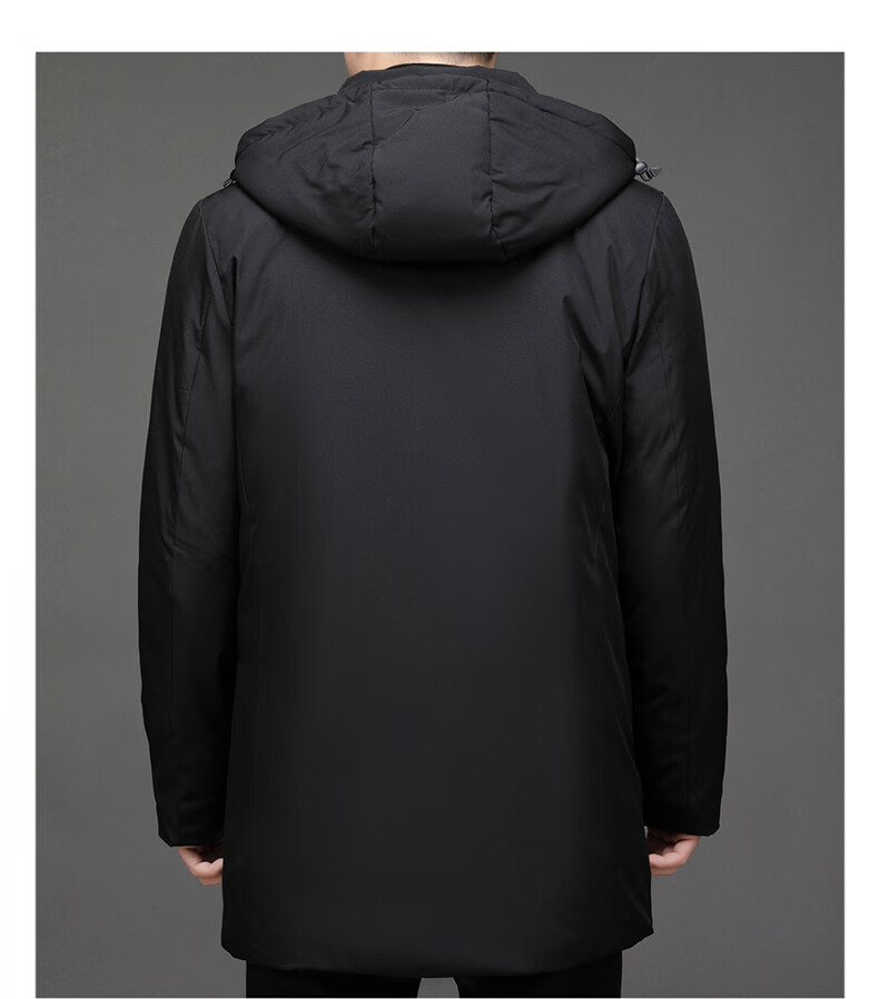 Pierre Cardin mid-length cotton coat men's winter hooded casual thickened warm cotton coat young and middle-aged men's winter cotton-padded jacket trendy black 2XL 185