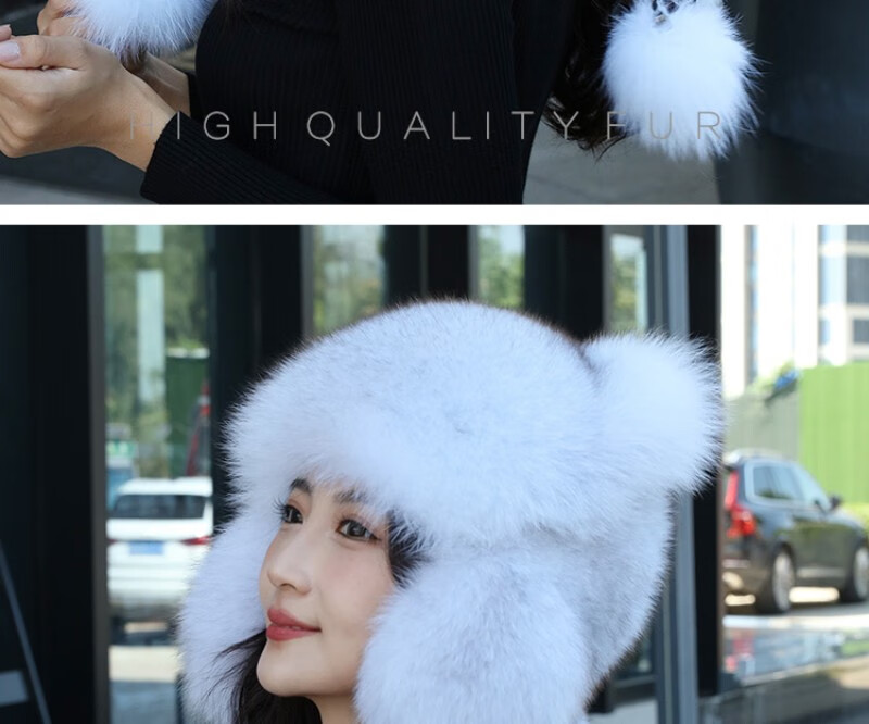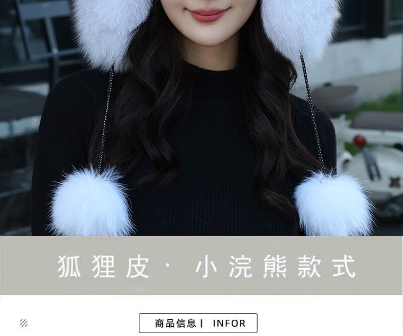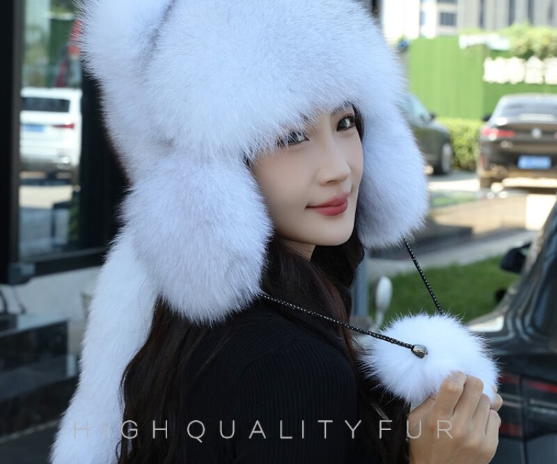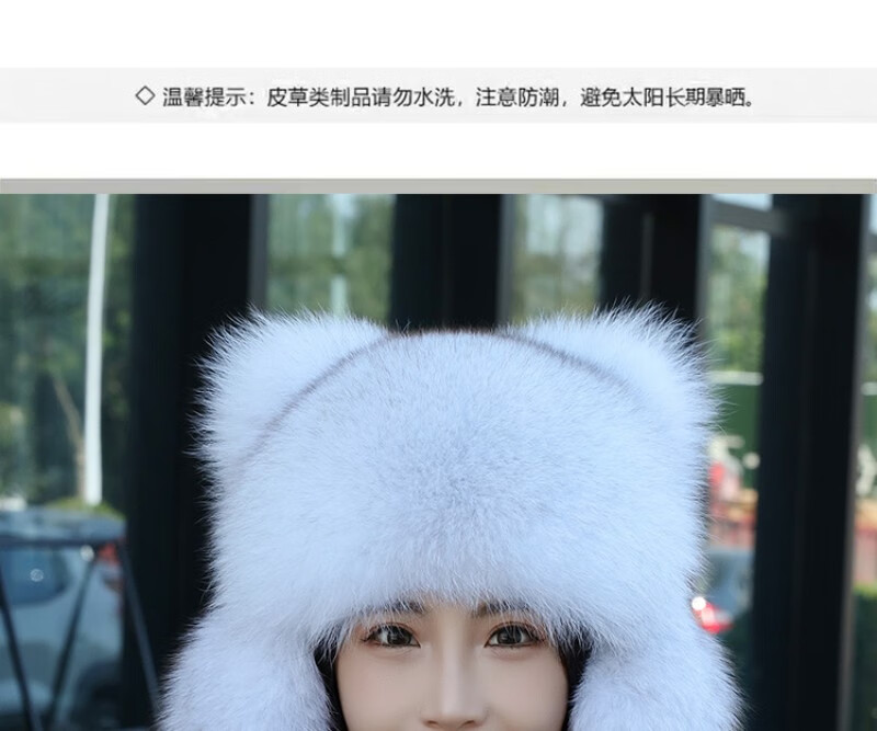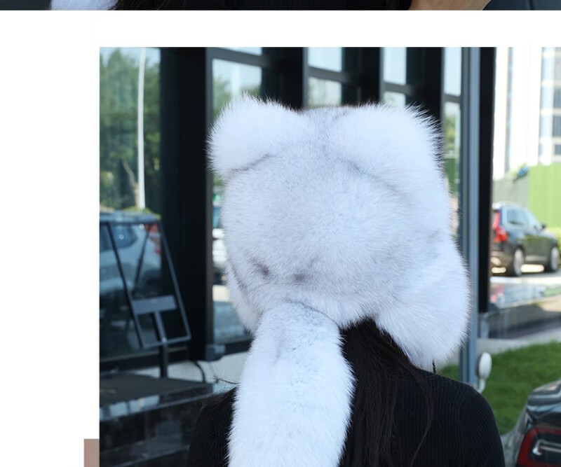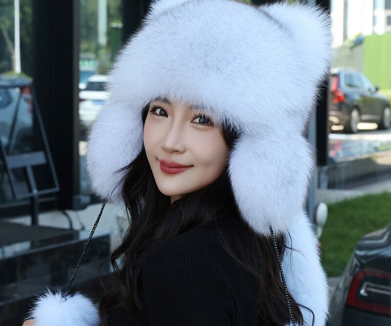 Gorro de mapache pequeño de piel de zorro real de visón de princesa, gorro de Overlord Lei Feng, gorro de piel cálido para invierno para niños y niñas, adultos, protección para los oídos, zorro azul, color verdadero S (54-56cm)