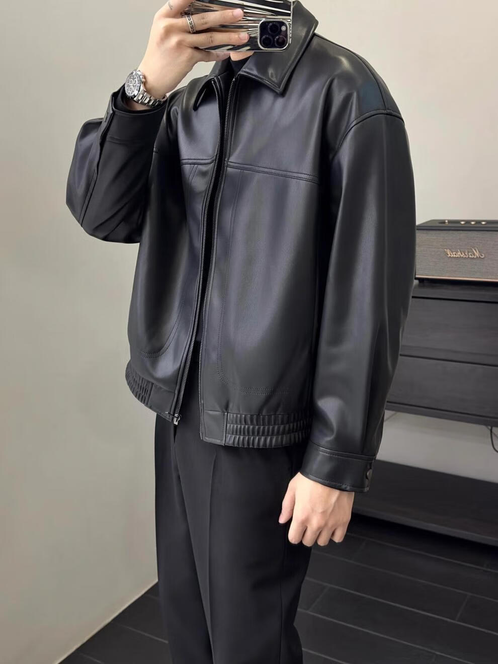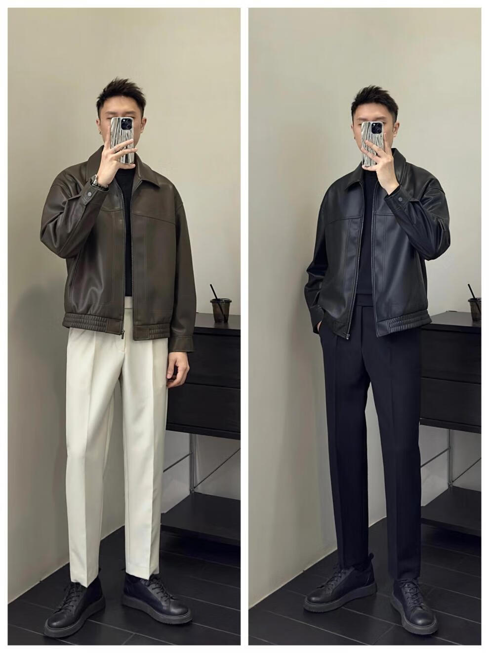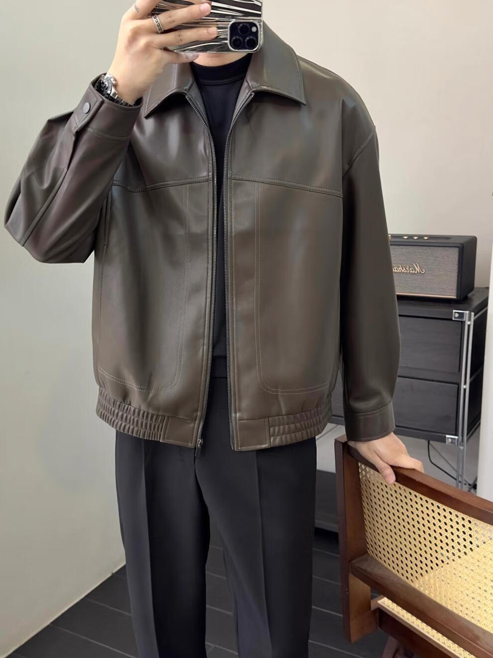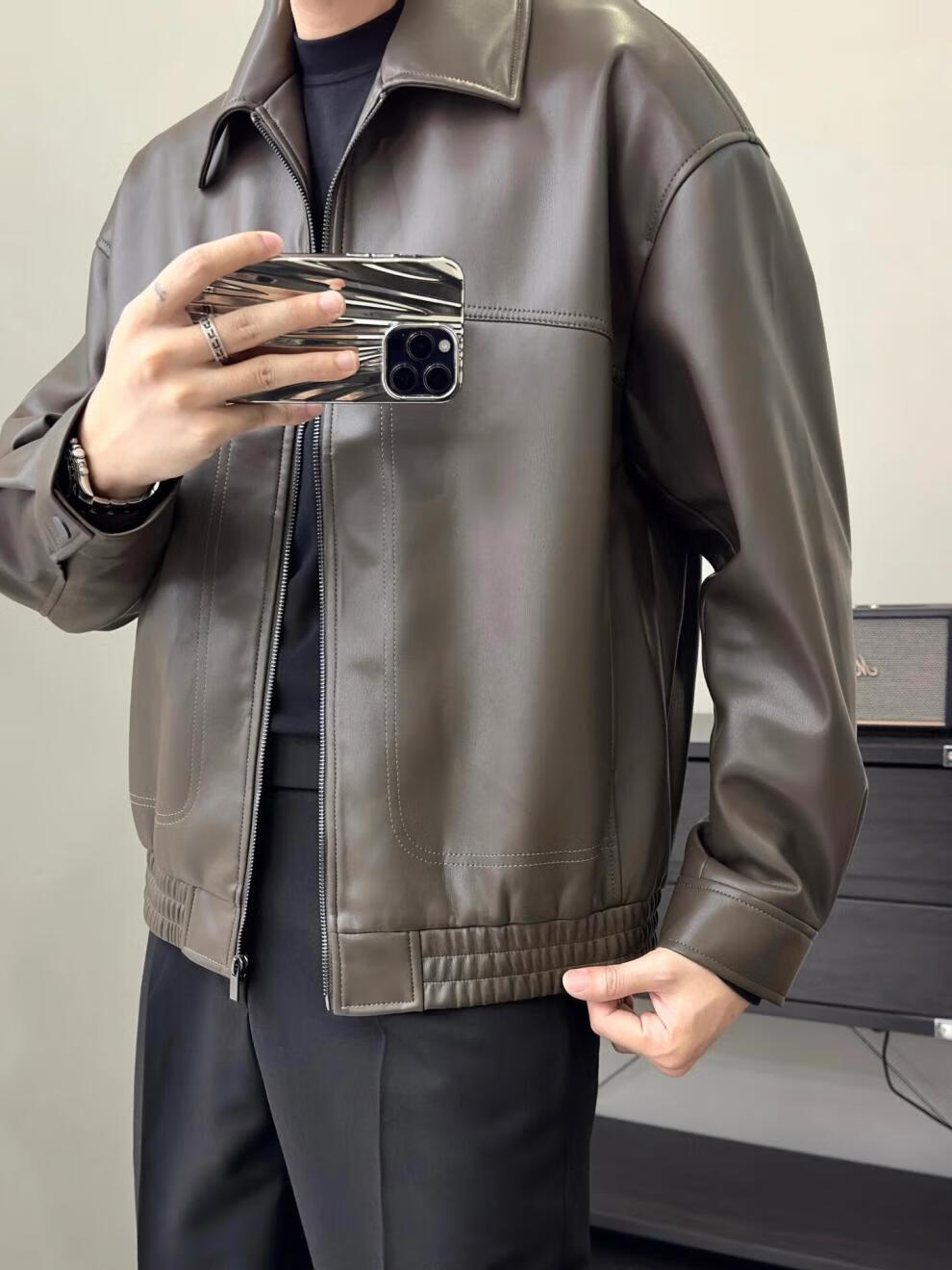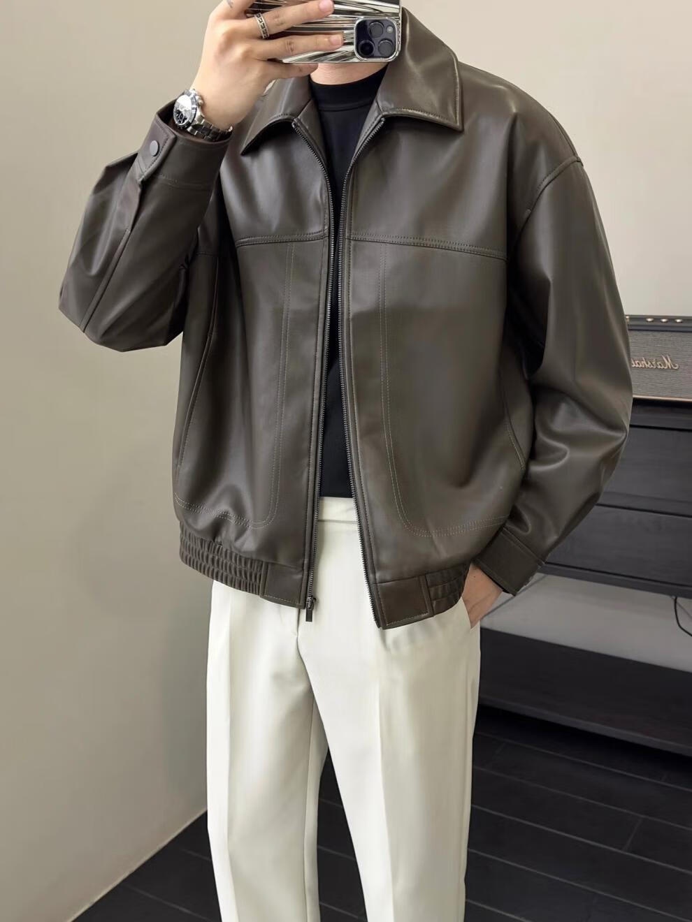 Retro brown soft leather jacket, men's light and mature style, fashionable lapel executive jacket, autumn top, coffee color 3XL (recommended 165-180Jin Jin equals 0.5kg)