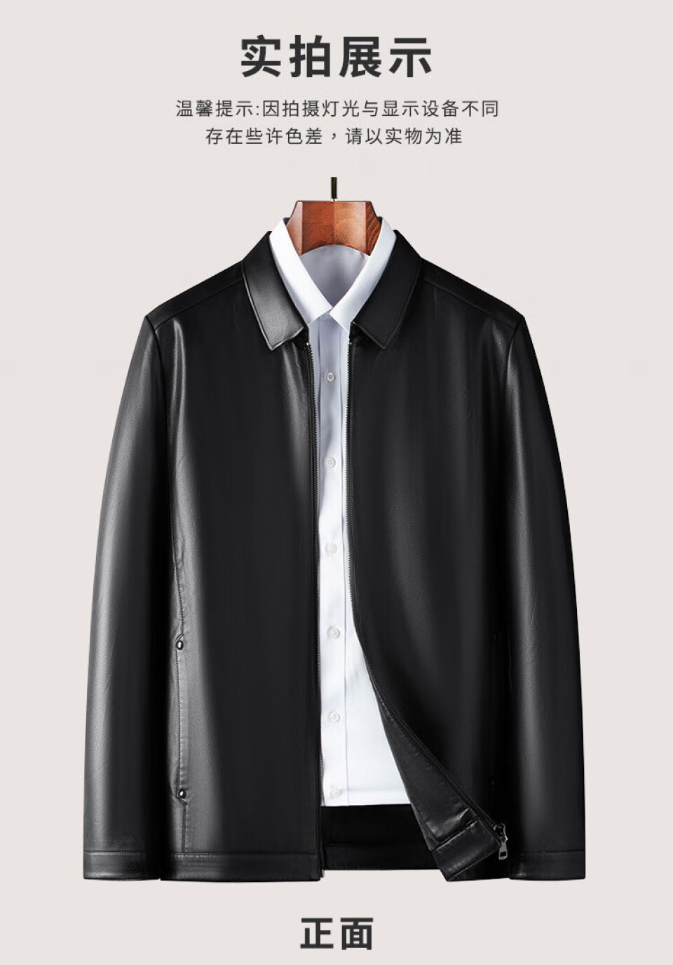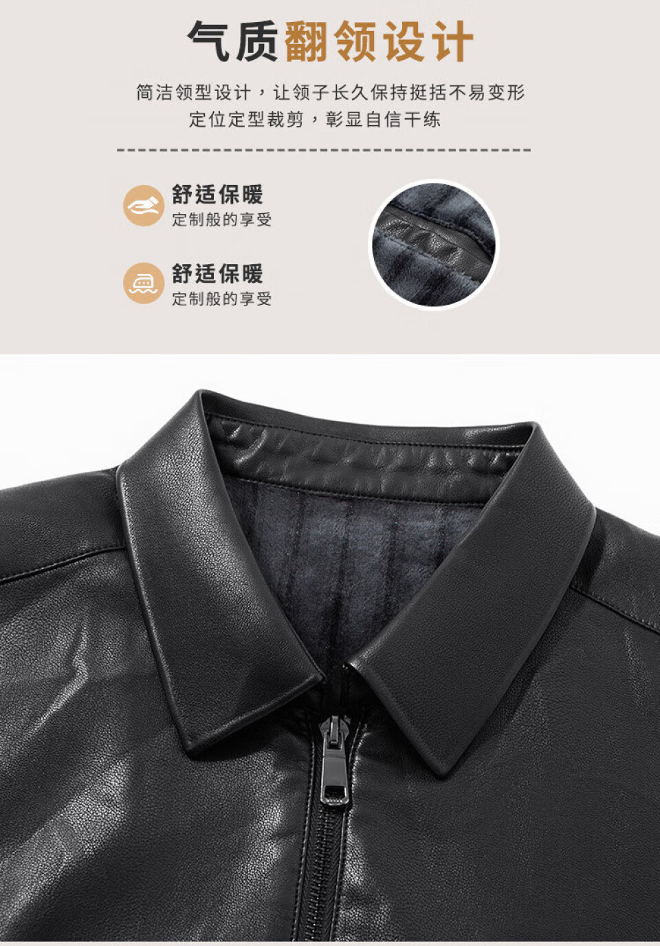 Montagut gift box, plus velvet to keep out the cold & striped velvet lining, leather jacket, business casual lapel PU leather jacket for men, black XL/52