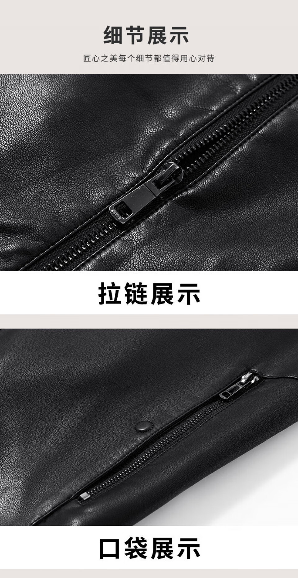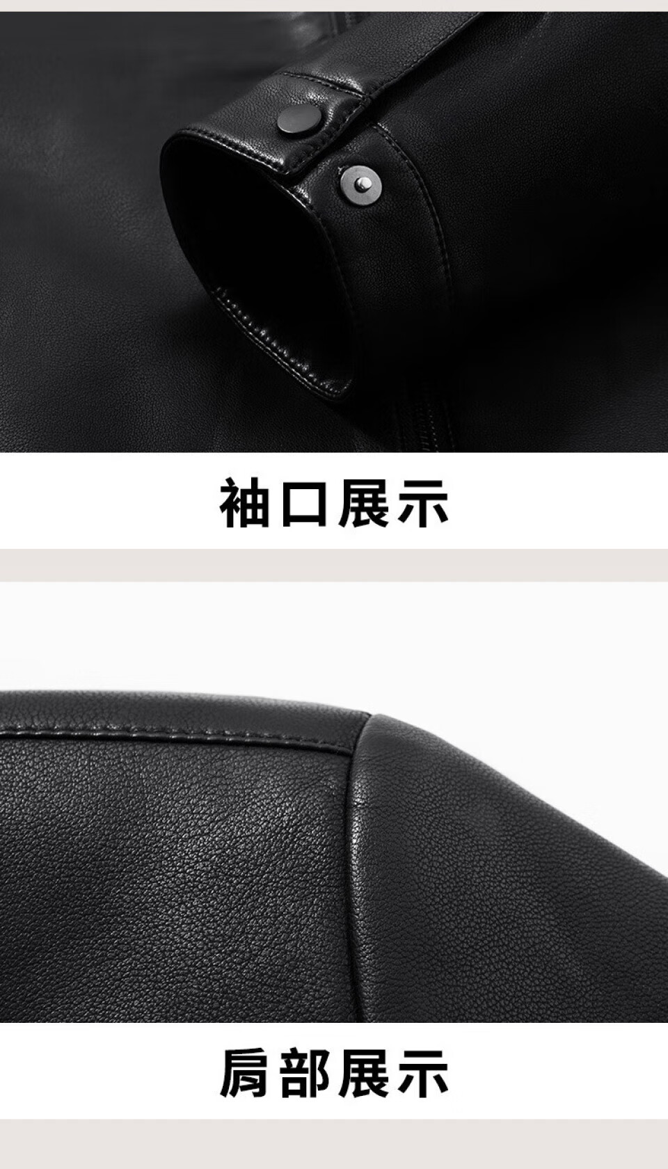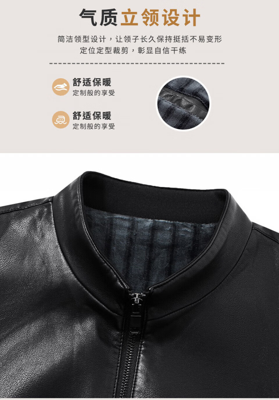 Montagut warm velvet & striped velvet lining, autumn and winter leather jacket, men's stand-up collar, comfortable, durable and versatile, black M /48