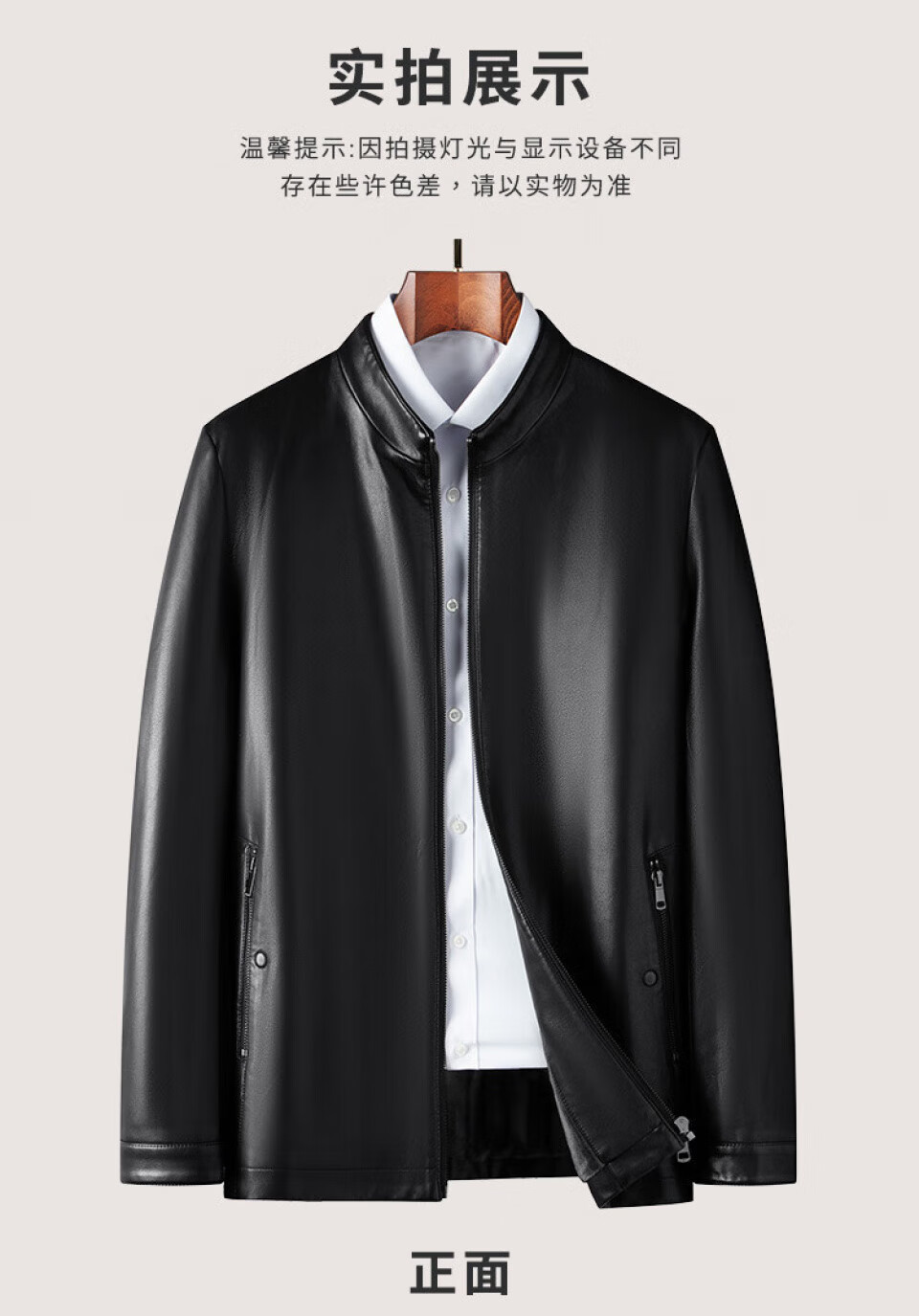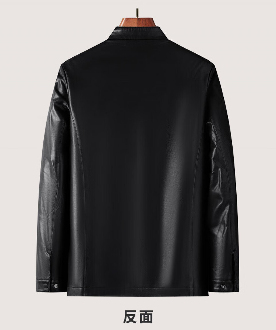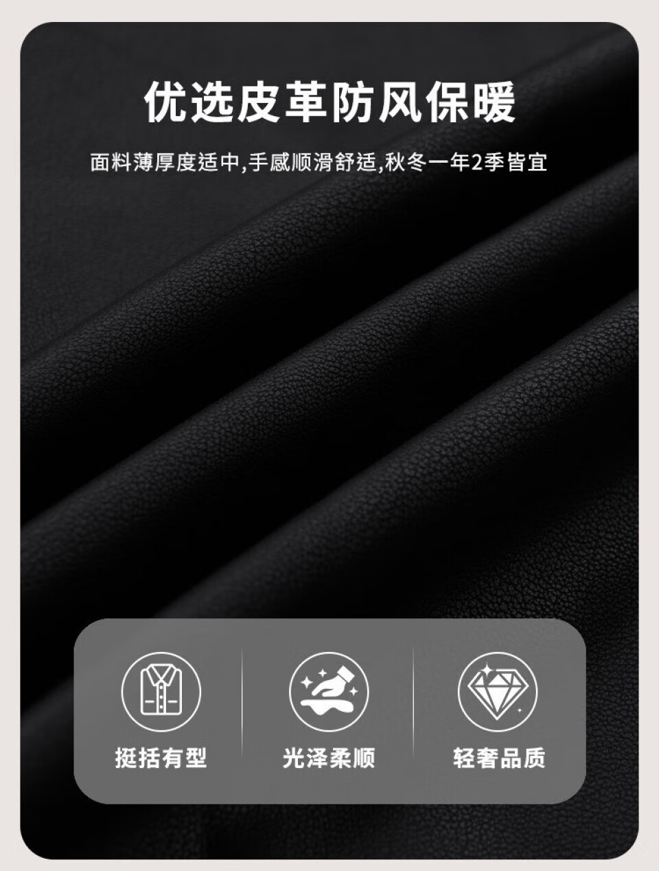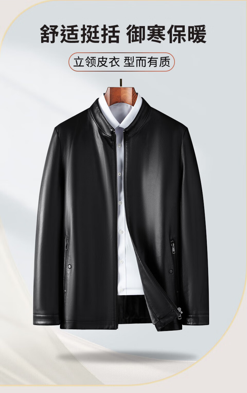 Montagut warm velvet & striped velvet lining, autumn and winter leather jacket, men's stand-up collar, comfortable, durable and versatile, black M /48