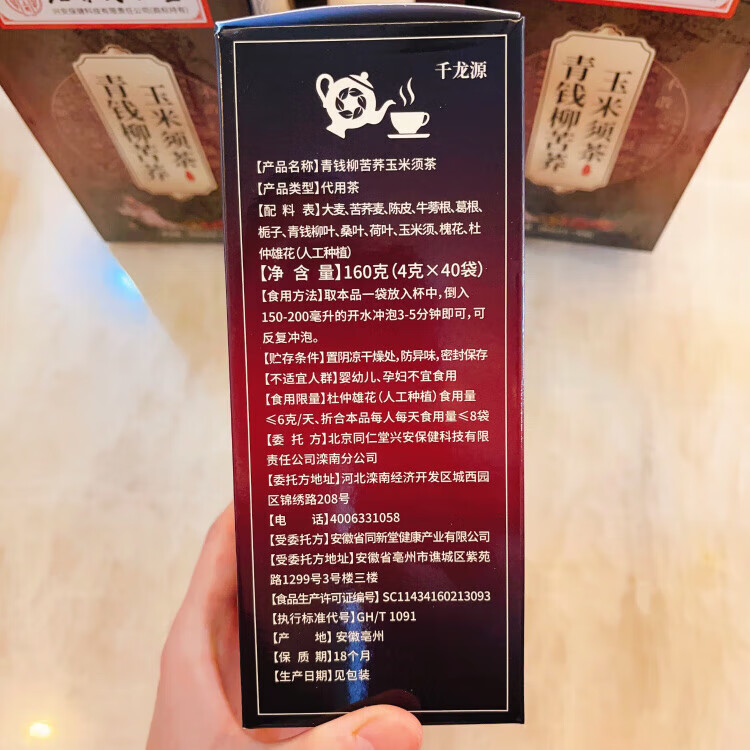 Tong Ren Tang Green Qian Liu Tea Green Qian Liu Tartary Buckwheat Corn Silk Tea Green Qian Liu Mulberry Leaf Corn Silk Tea Corn Silk Mulberry Leaf Tea 40 sachets*1 box