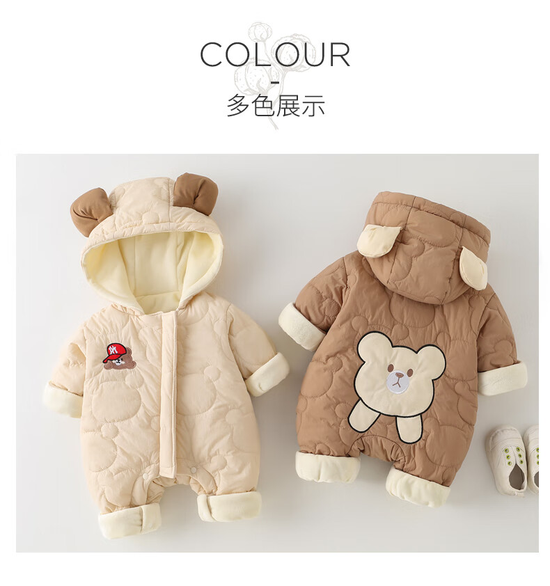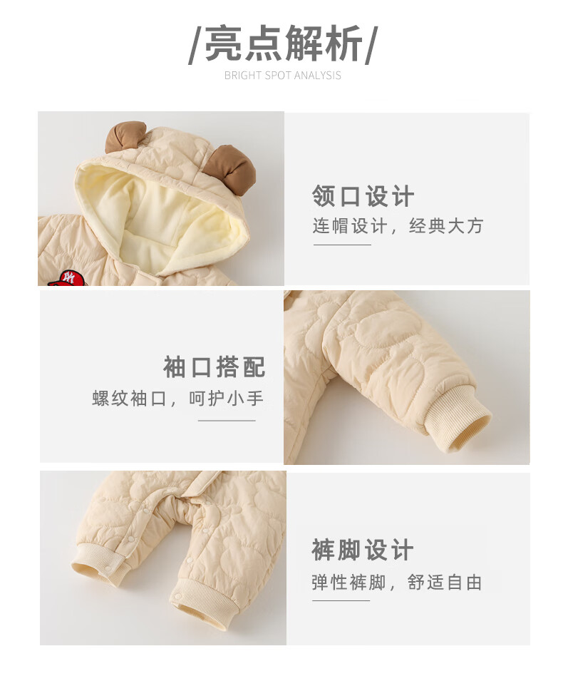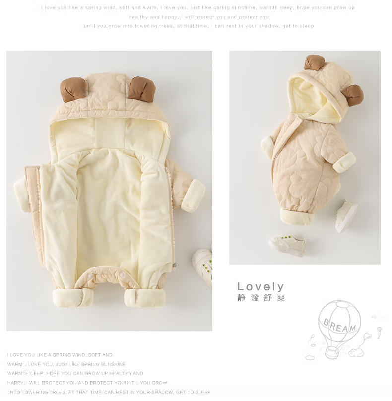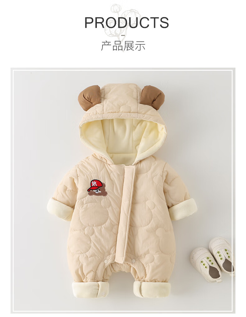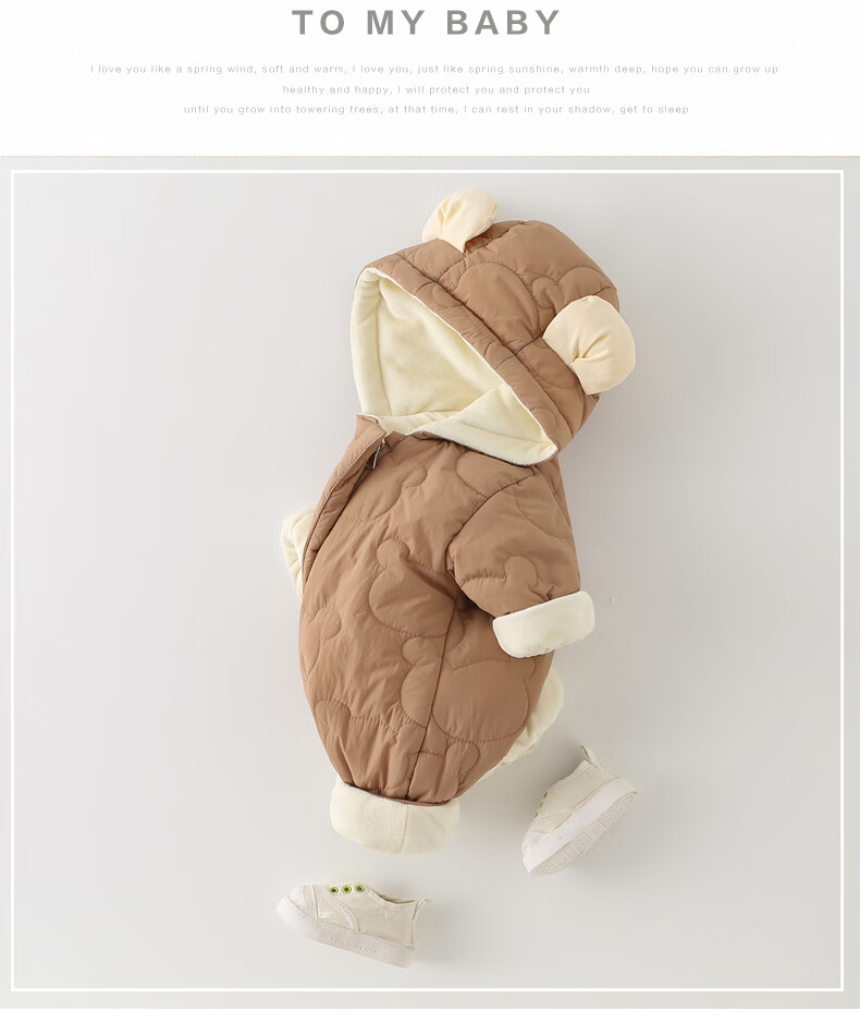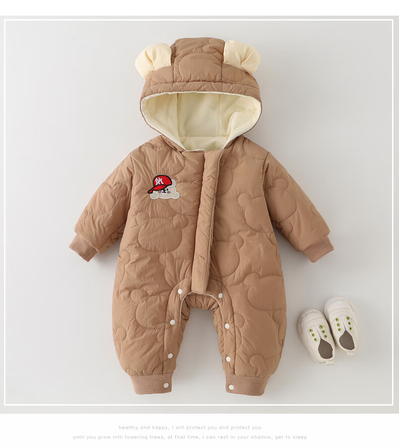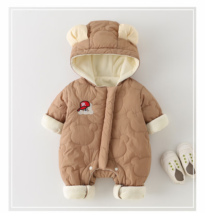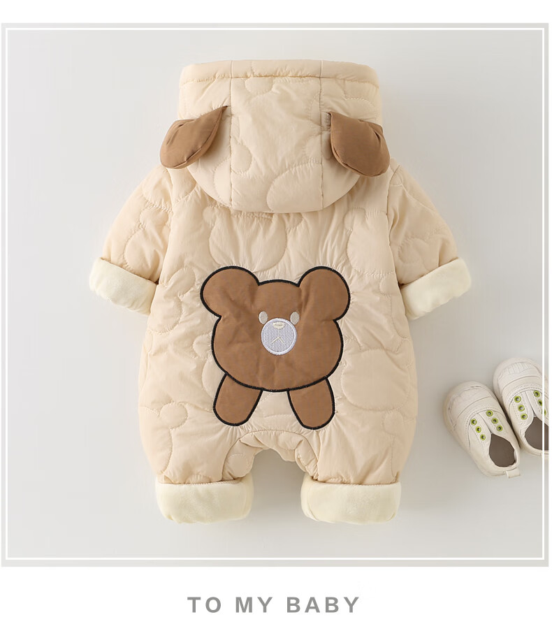 G.duck little yellow duck baby winter quilted and velvet onesie baby hugger super cute hooded coat fashionable western cotton coat apricot 80cm