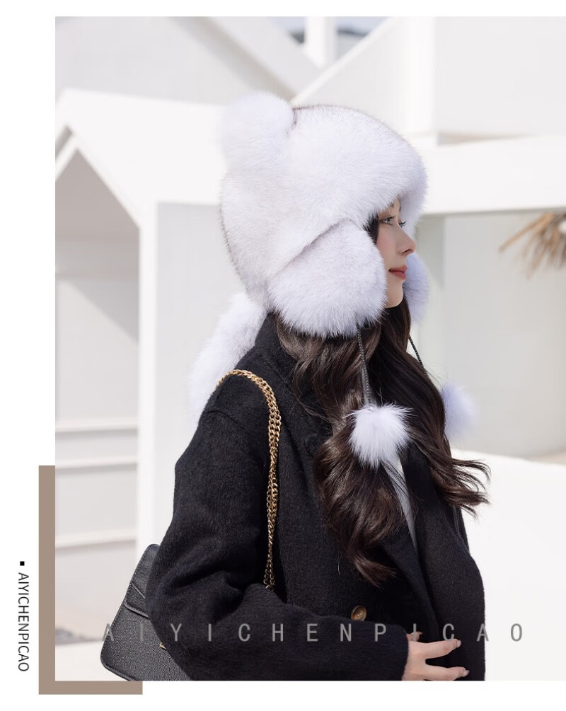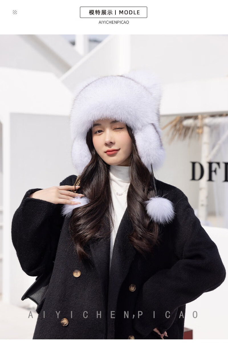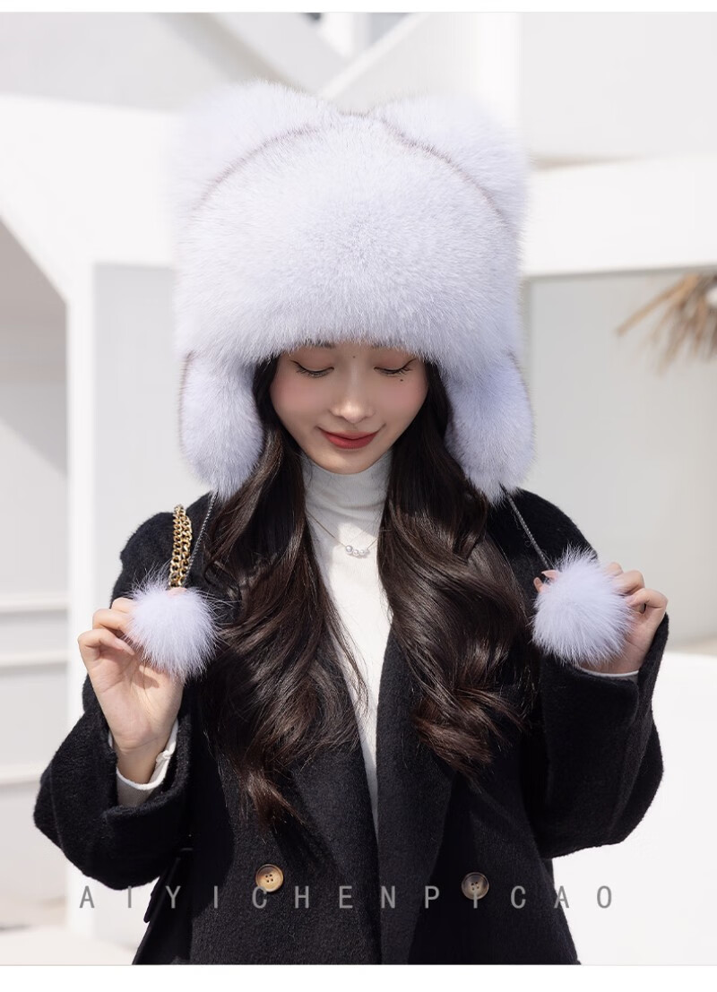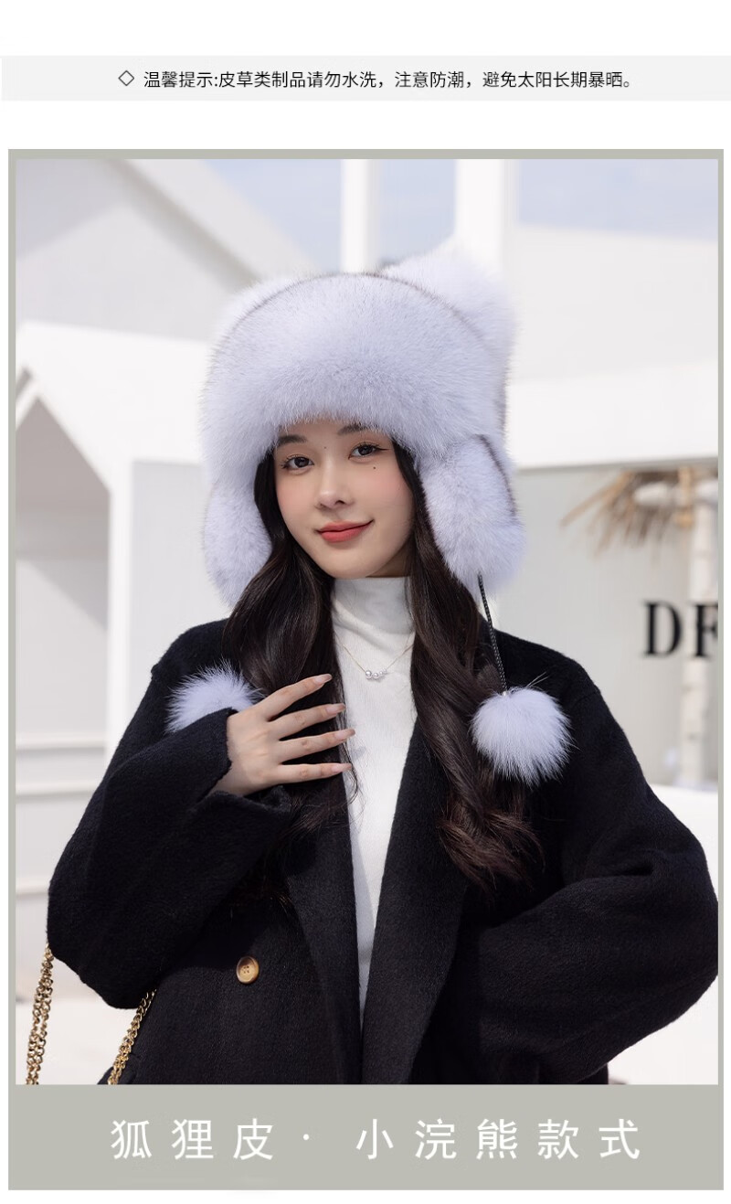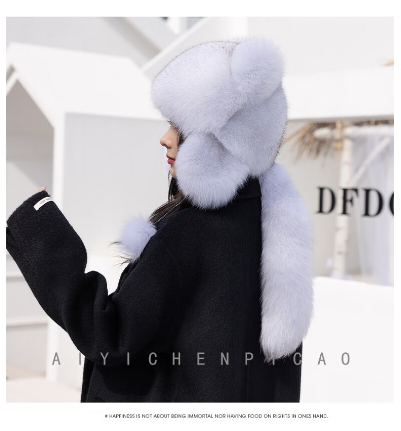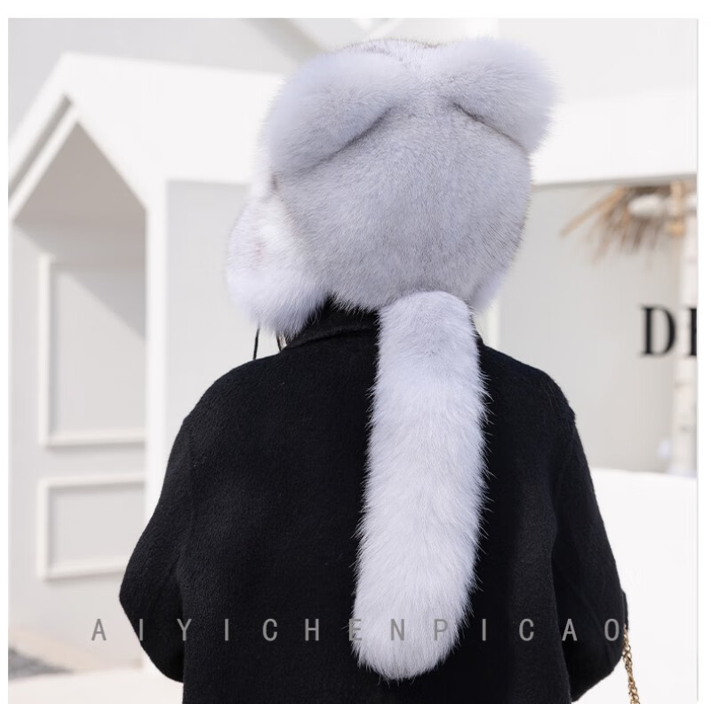 Princess Mink Fox Fur Hat Women's Ear Protection Little Raccoon King Hat Tail Winter Warm Children's Fur Hat Blue Fox True Color S(54-56cm)