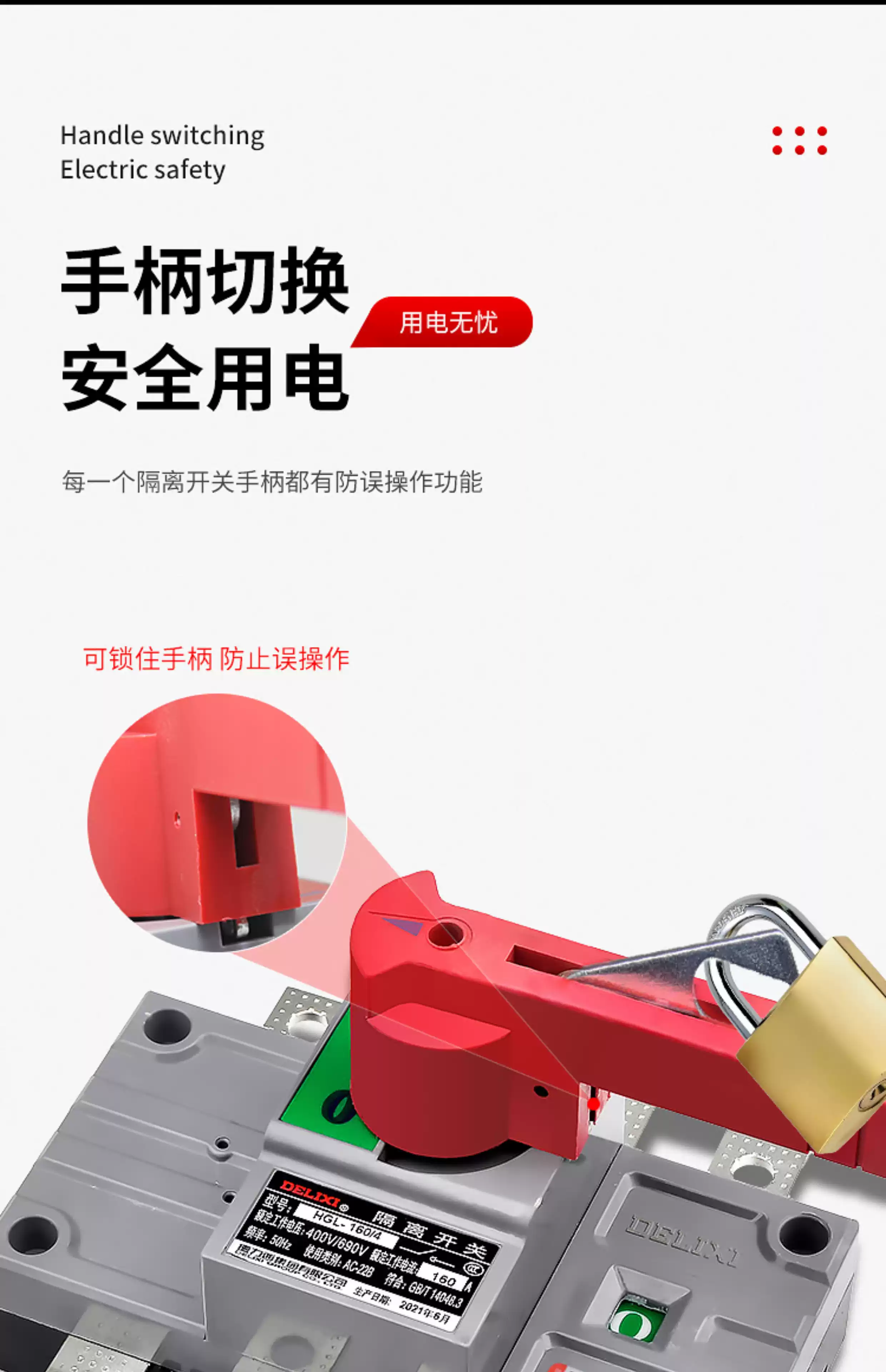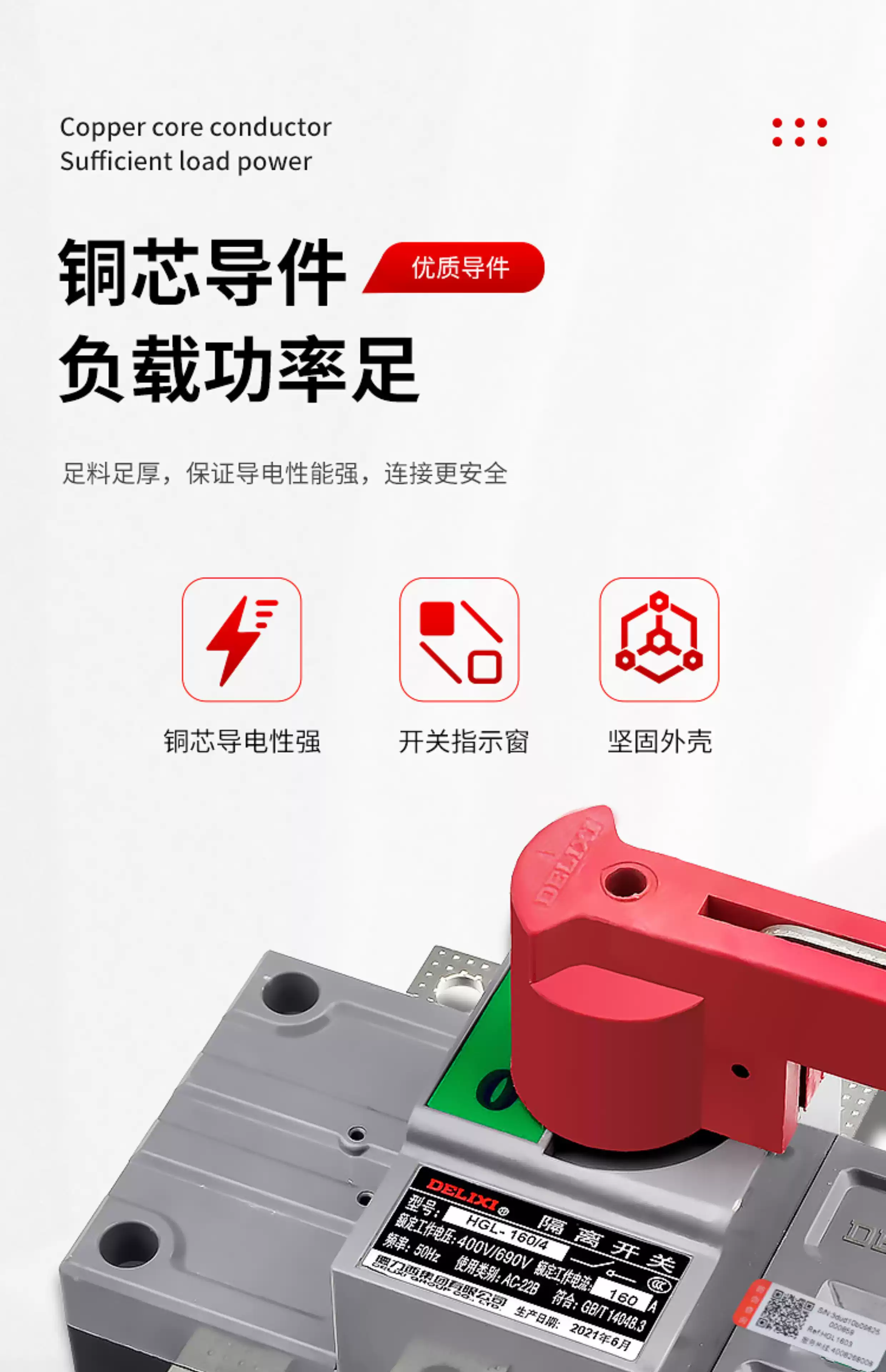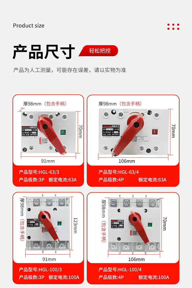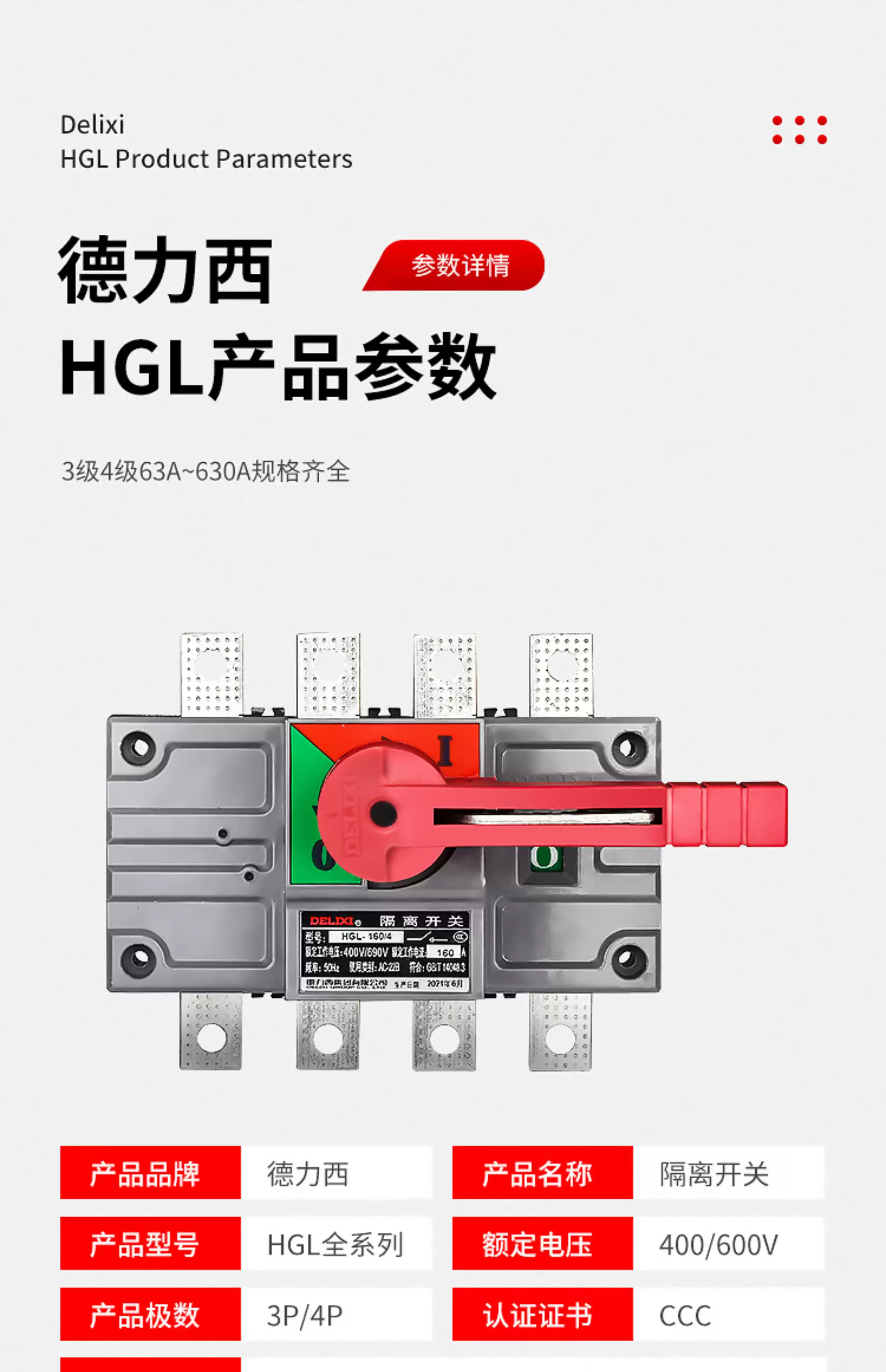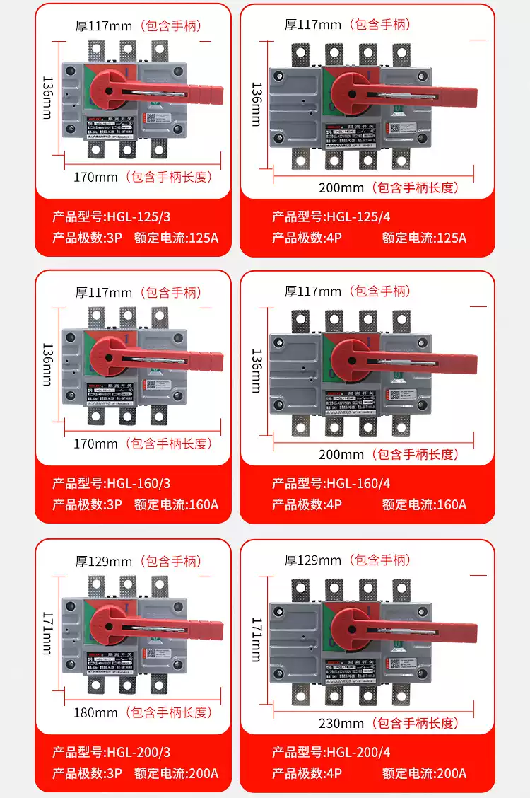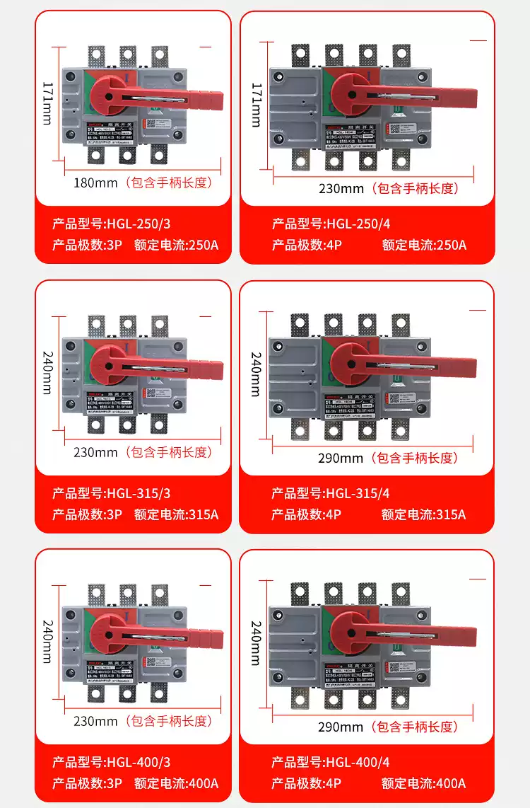 Delixi HGL isolation switch 100A three-phase 200A knife gate 3P load switch 4P single head 63A250A HGL-63A HGL-63A