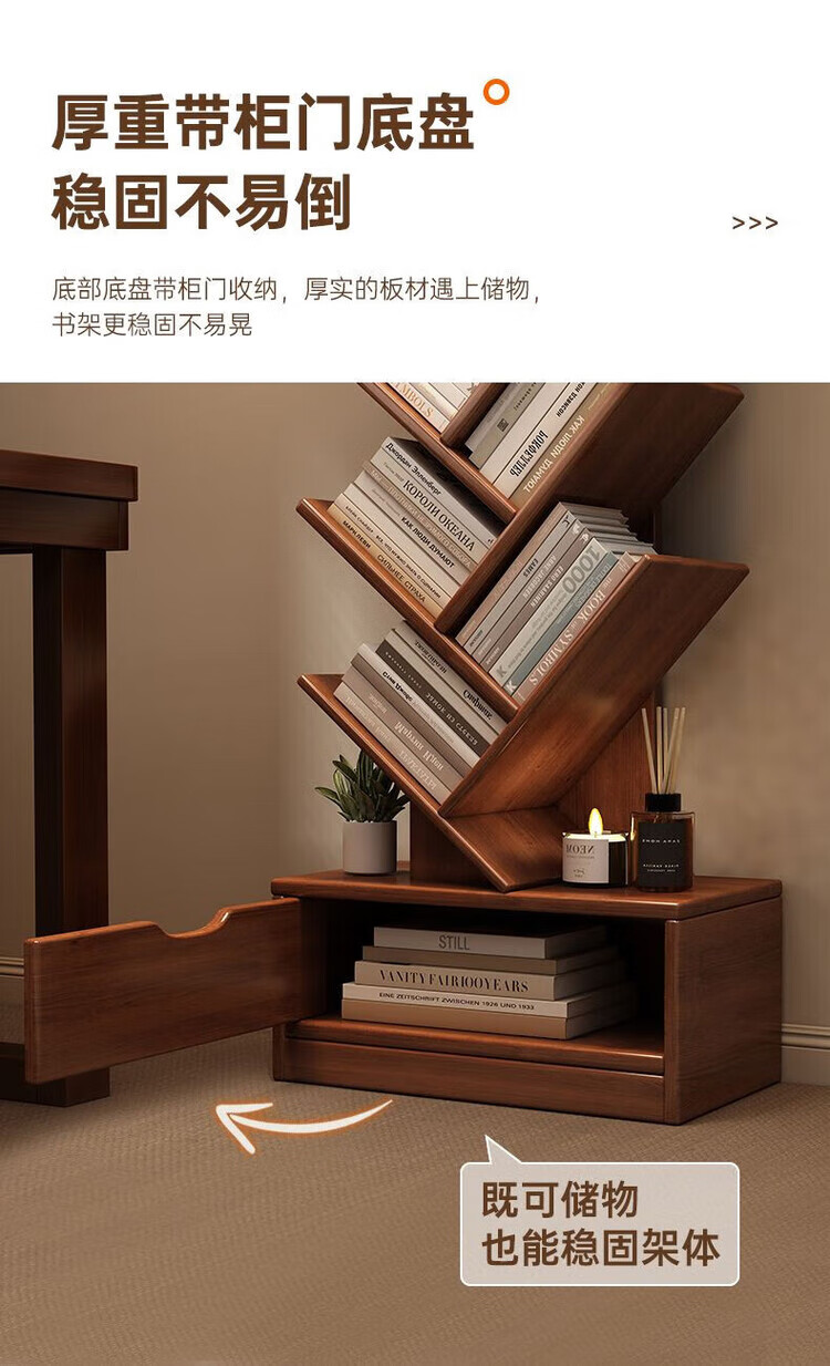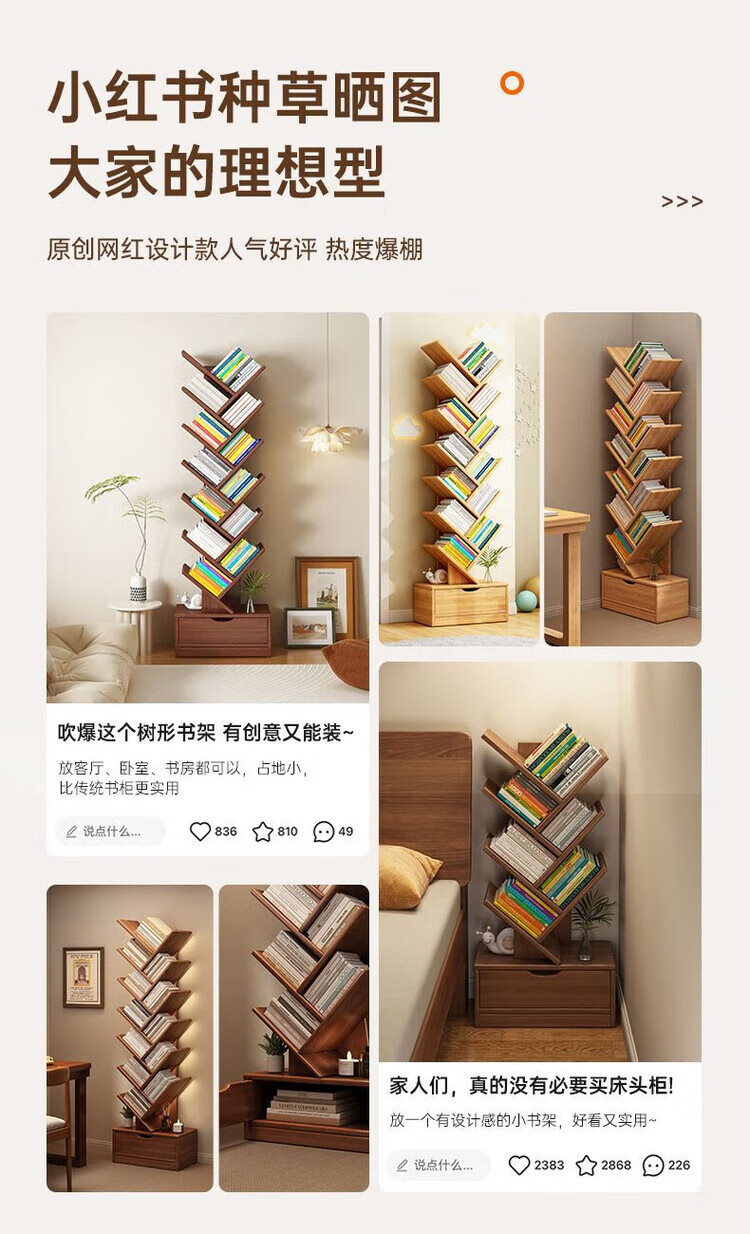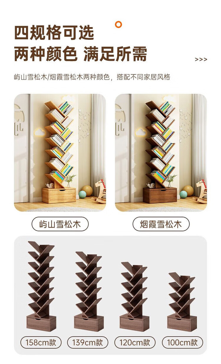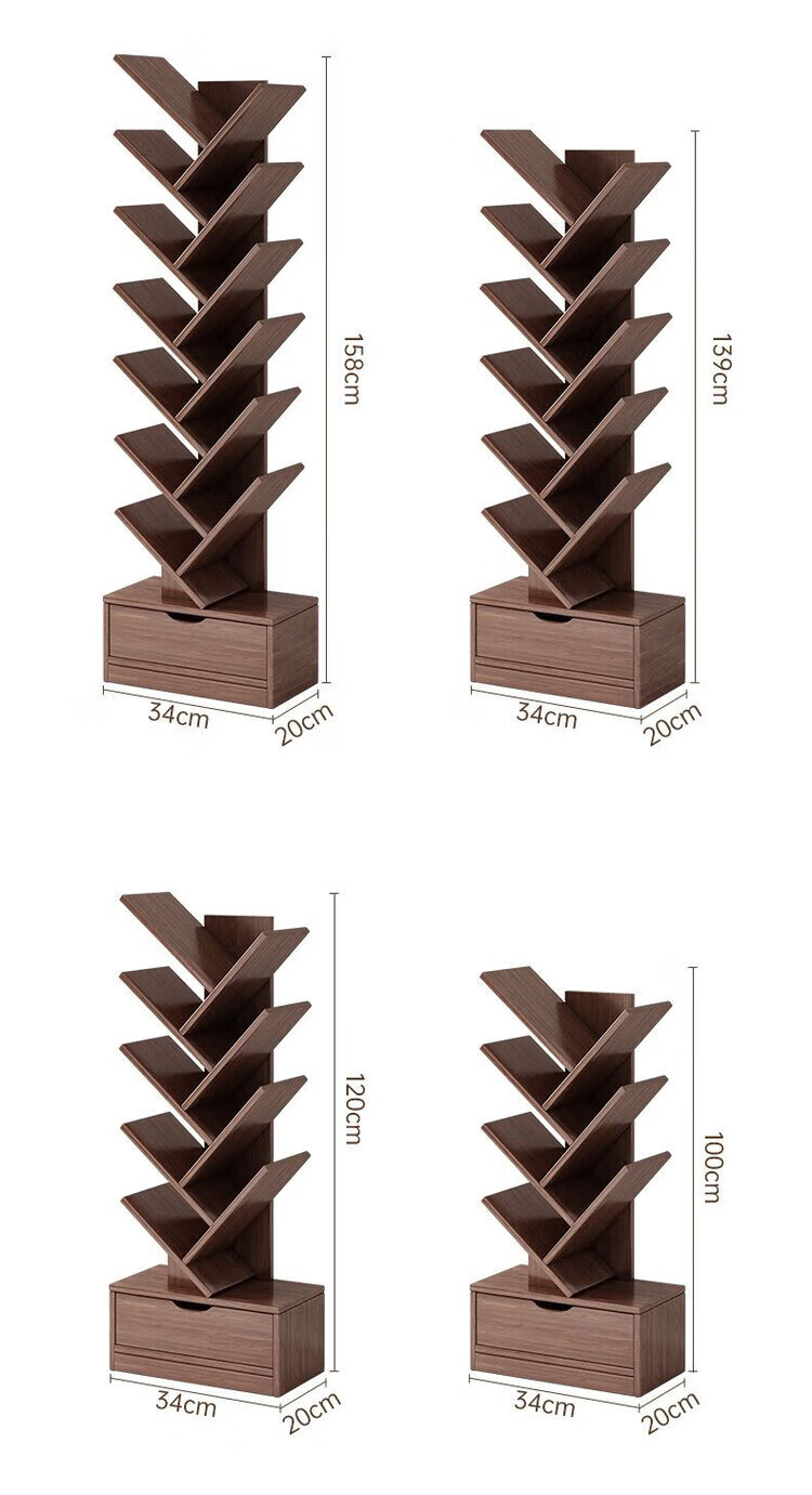 Solid wood bookshelf floor-standing wall storage shelf living room home simple creative tree-shaped student bedroom layered shelf main picture 8-layer pastoral oak color high 100cm