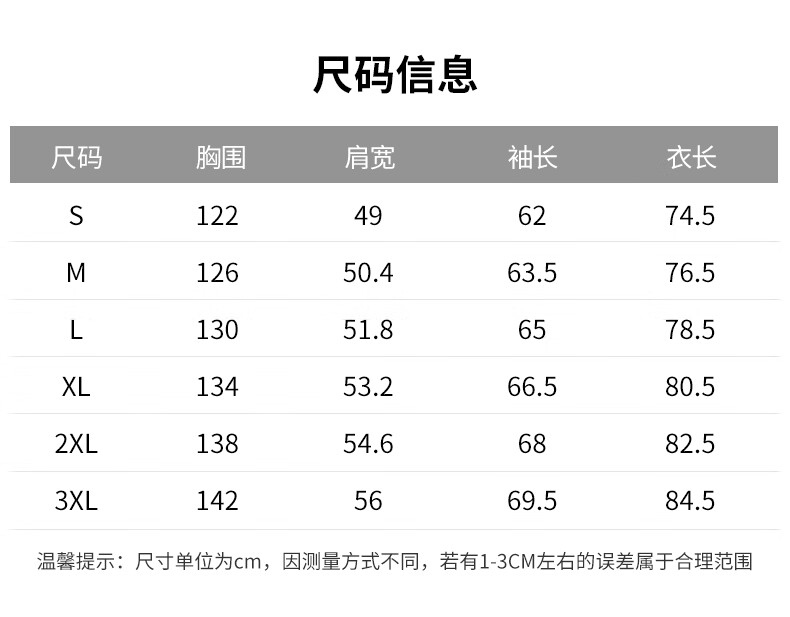 Size (cm) 42 44 46 48 50