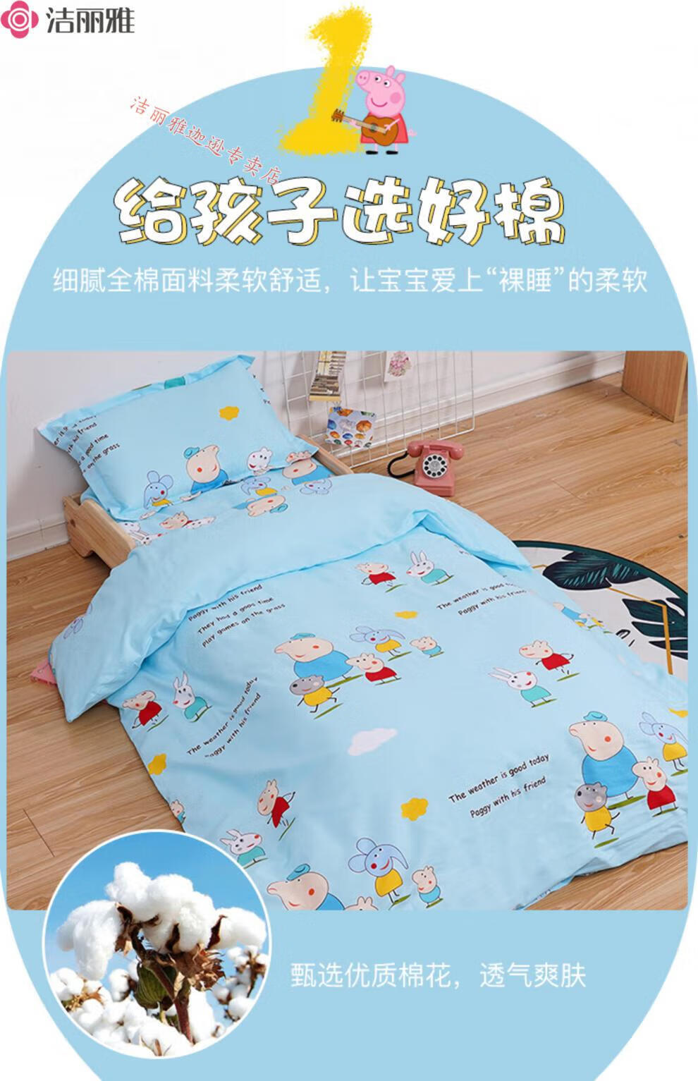 Customized kindergarten quilt cover, cotton children's mattress cover, mattress cover, cartoon baby pad, quilt cover, single quilt, pink Peggy cushion cover 100cm * 56cm