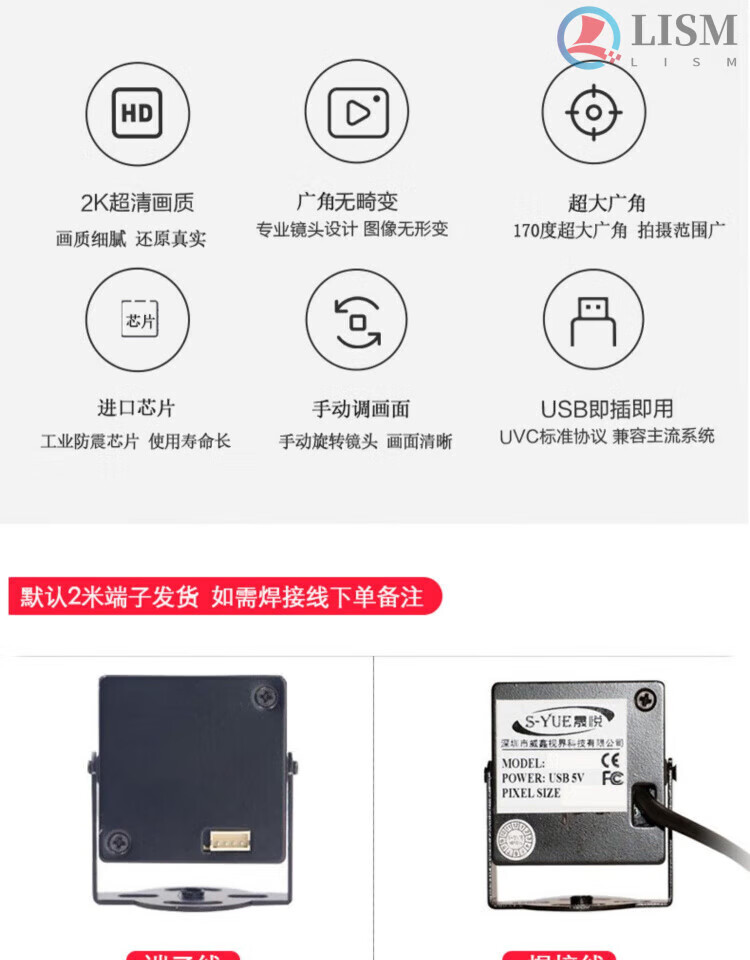 1080P high-definition usb industrial camera module wide-angle camera computer Android Raspberry Pi fisheye driver-free 480P-2.51MM (wide angle 150 degrees) horizontal 91 degrees