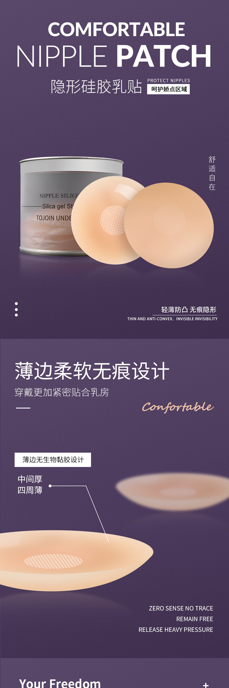 Breast stickers for women's slings, summer thin silicone nipple stickers for wedding dresses, small breasts to prevent bumps and light exposure, invisible nipple stickers, round 8 pairs