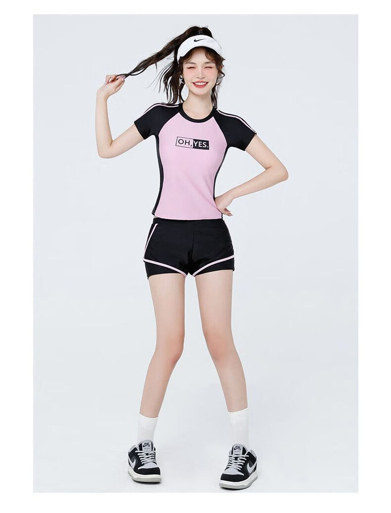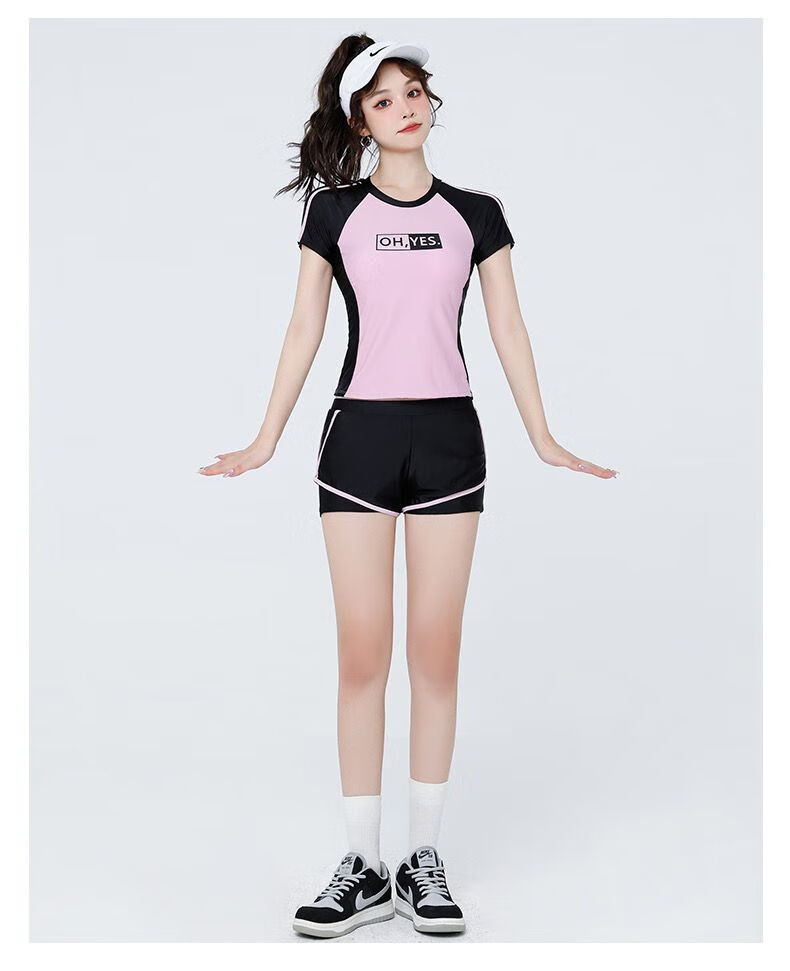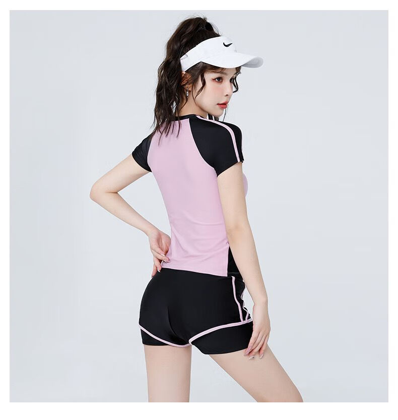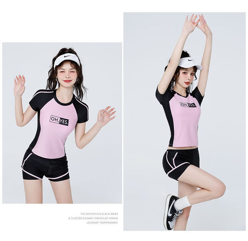 Chaosihui summer student swimwear women's split boxer briefs two-piece set conservative bellyband chest pad anti-exposure small size swimsuit blue + swimming cap swimming goggles mobile phone bag nose clip earplugs XS XS recommended 65-80Jin Jin is equal to 0.5 kg