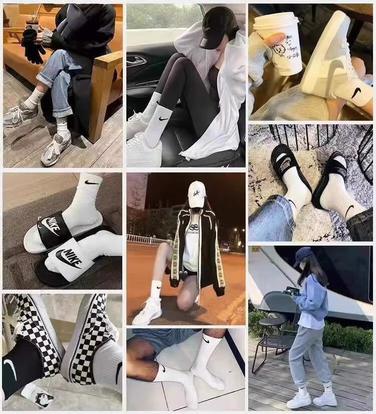 Nike NIKE socks for men and women in autumn and winter ins trend students pure cotton mid-length sports shark pants deodorant basketball 5 white gift box medium tube average size 35-44