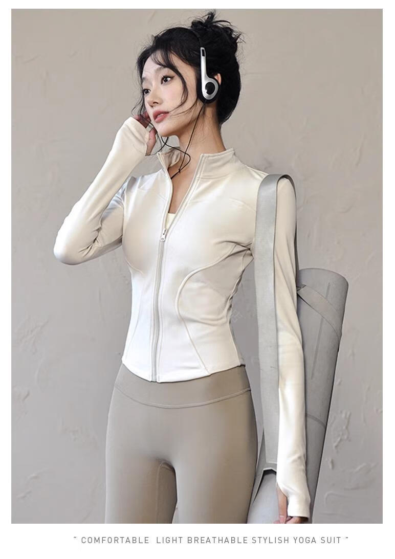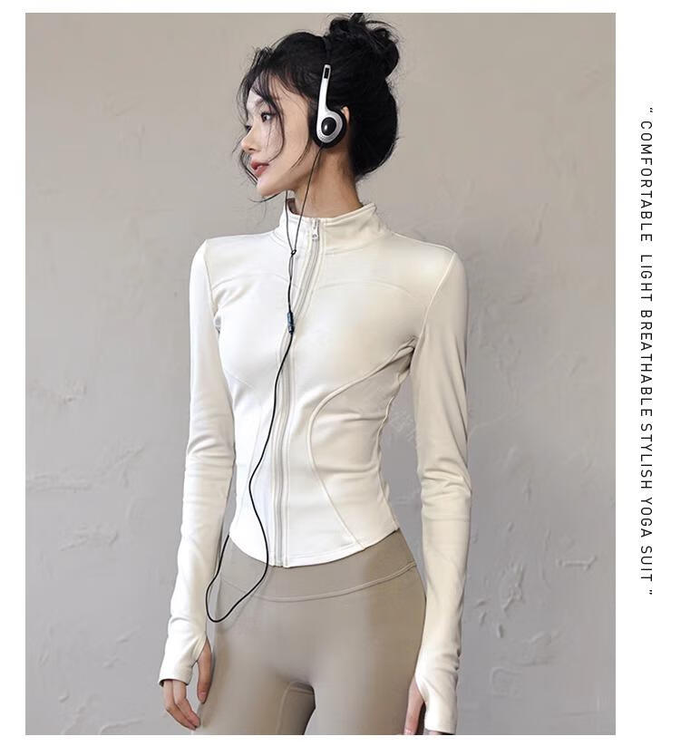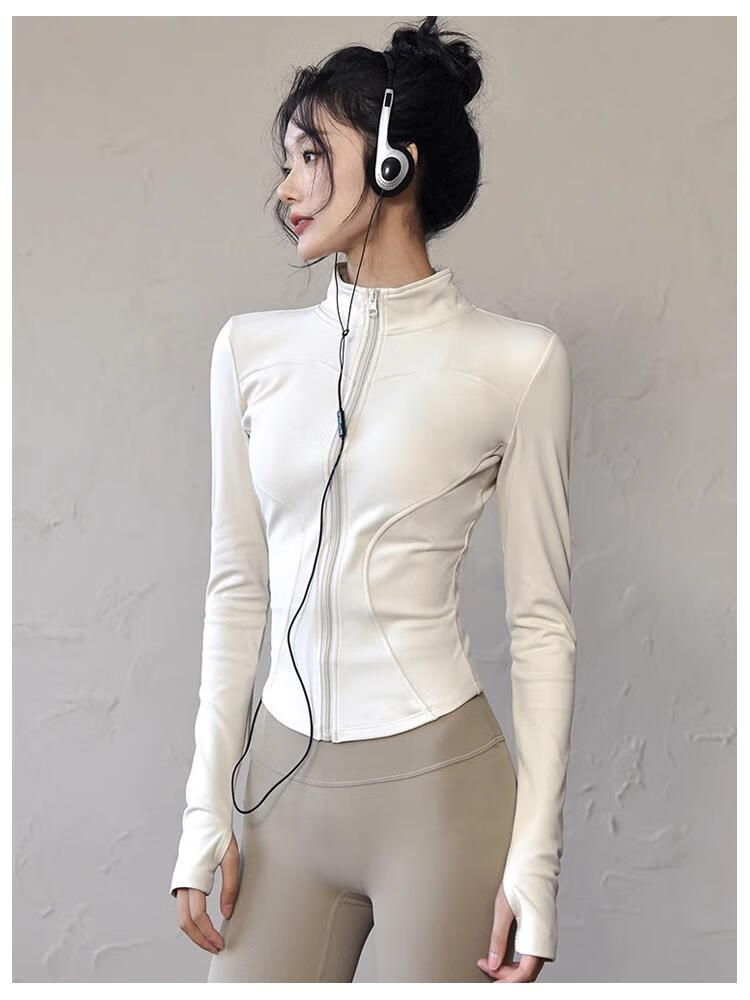 Magic Bean Shenghuo Yoga Wear Women's Long Sleeve Quick-Drying Sunscreen Tight-fitting Running Fitness Cycling Wear Zipper Stand Collar Sports Jacket Autumn Milk Brown S