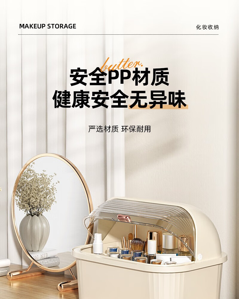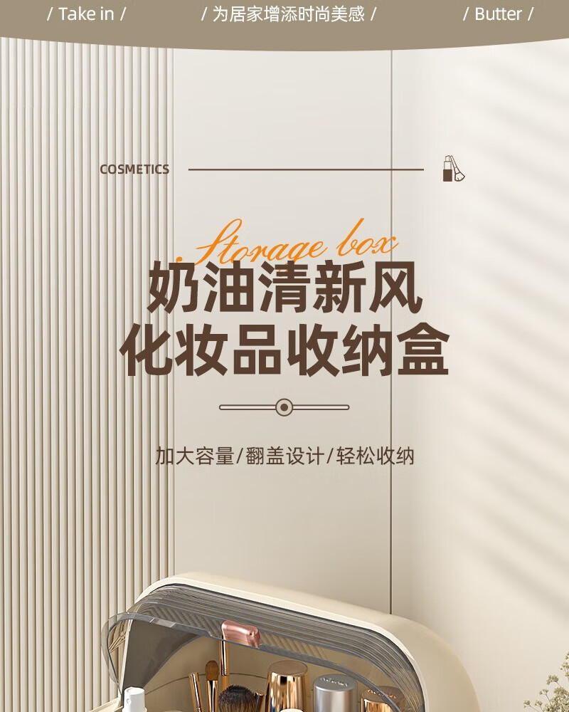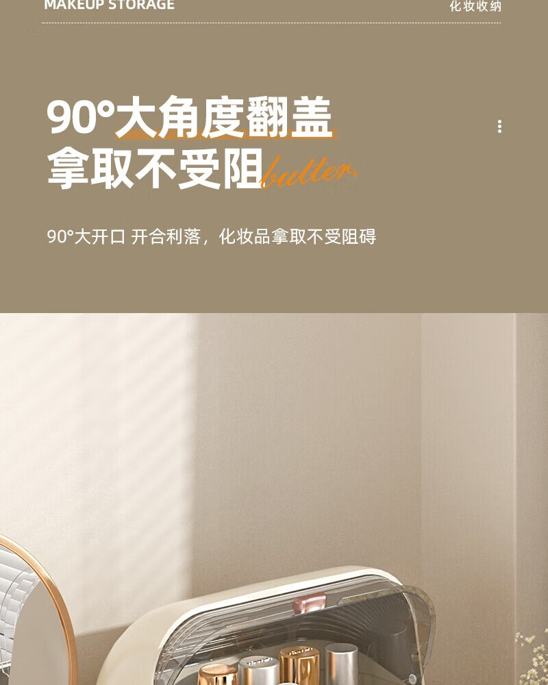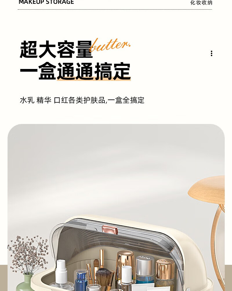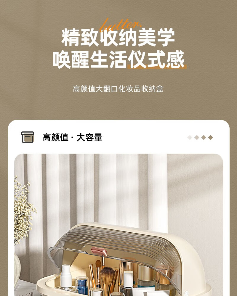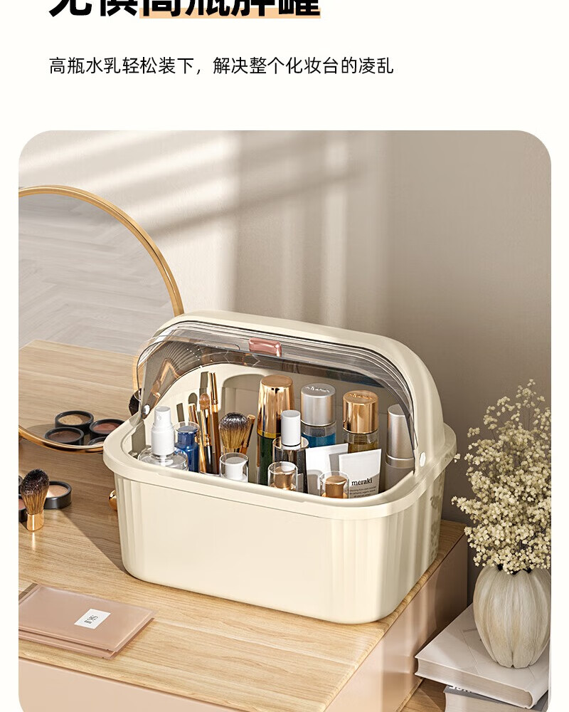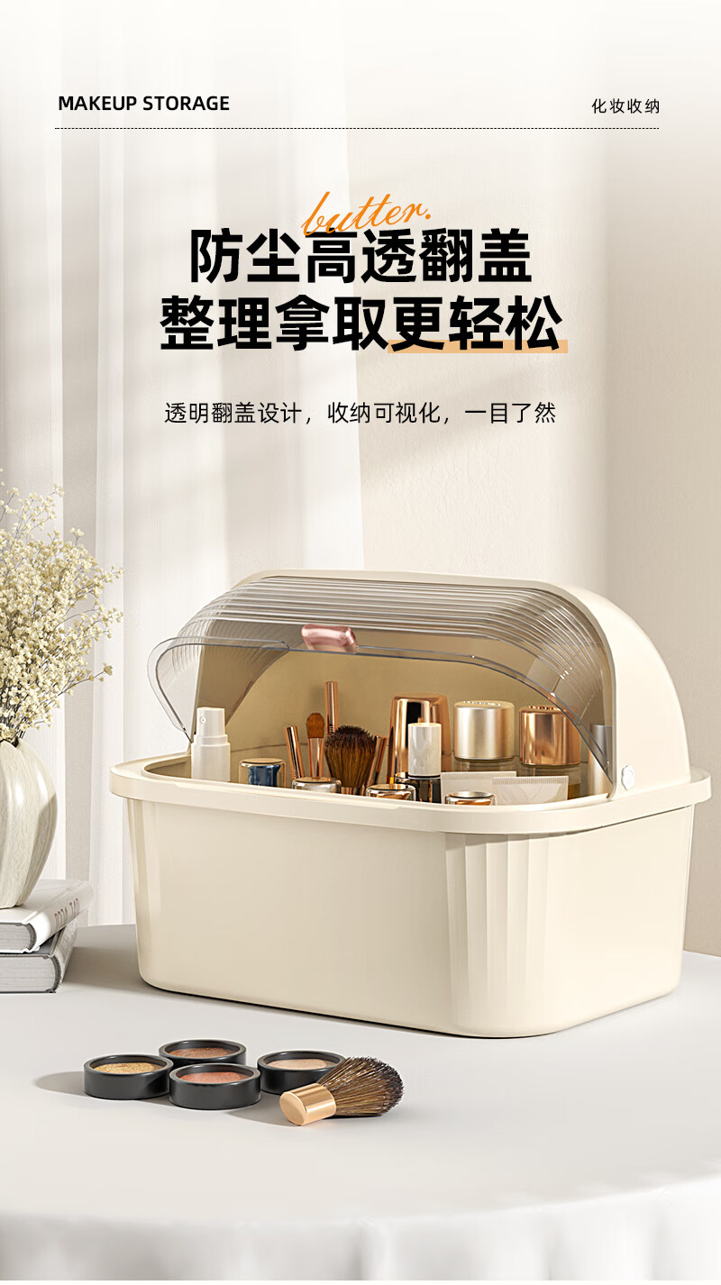 Plastic cosmetic storage box desktop dust-proof skin care product storage box large capacity half-flip makeup brush storage box cream small size 35*26*26cm 1 piece