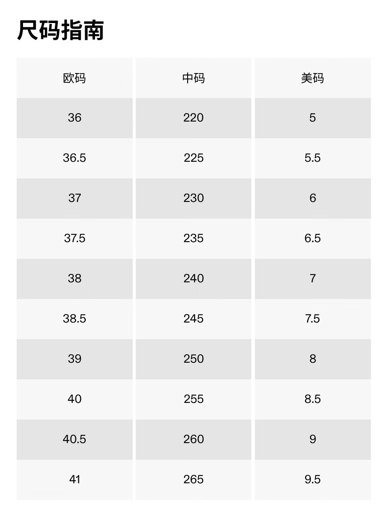 China (cm) 36 - 37 38 - 39 40 - 42 43 - 44 45 - 47